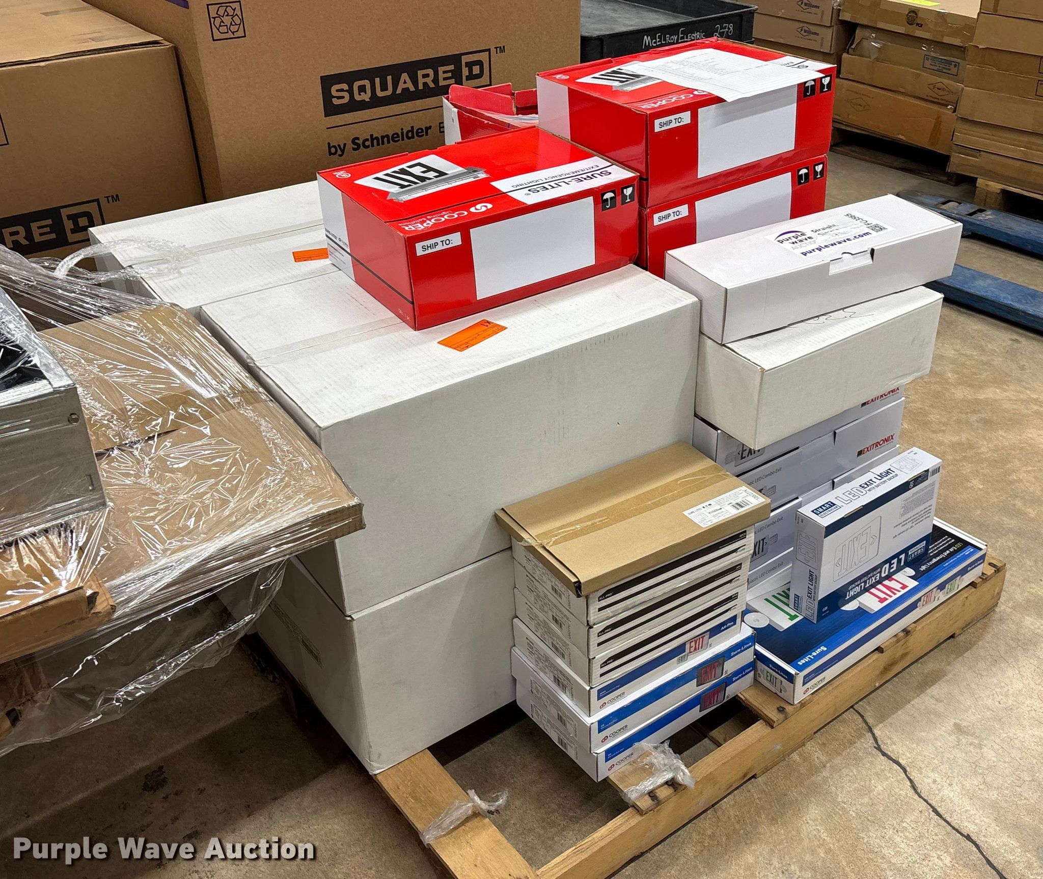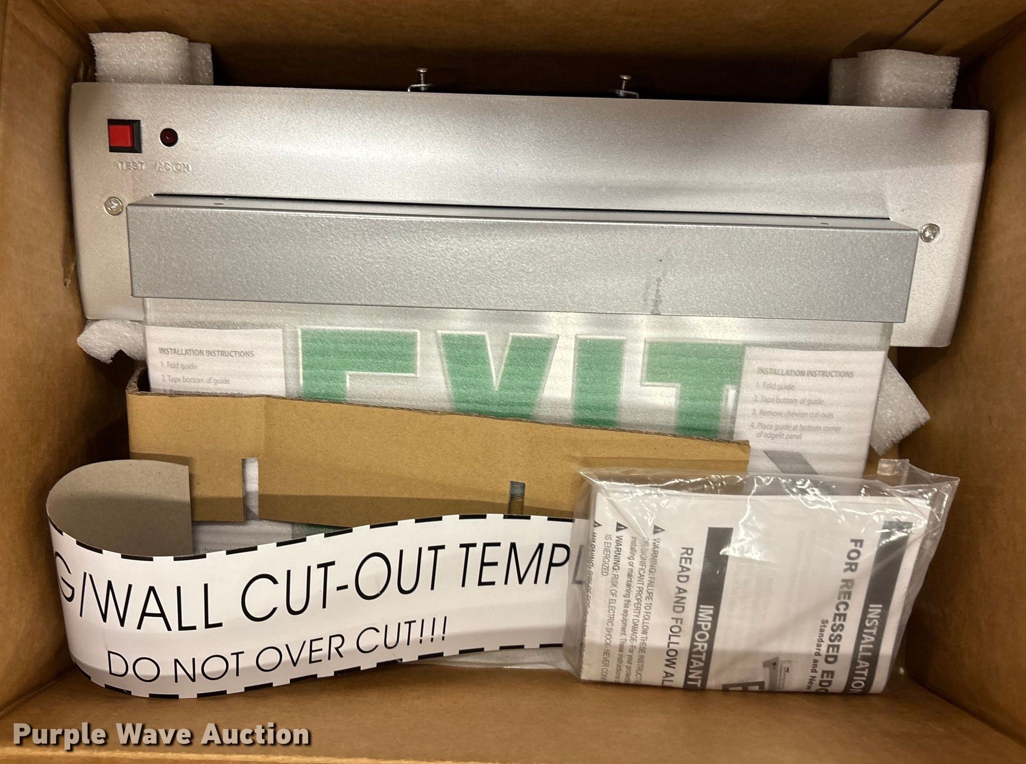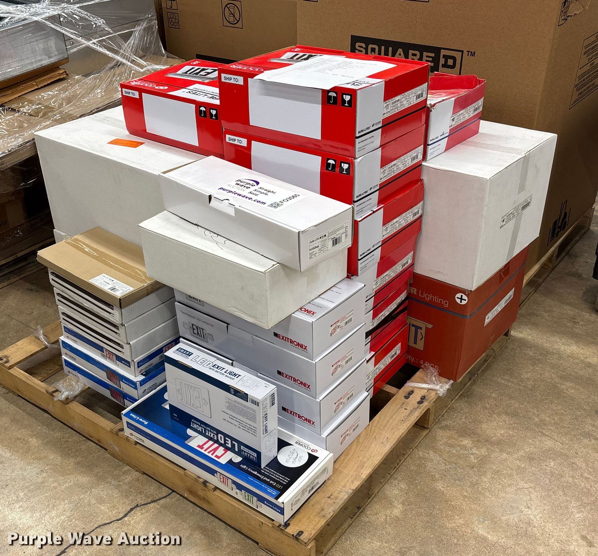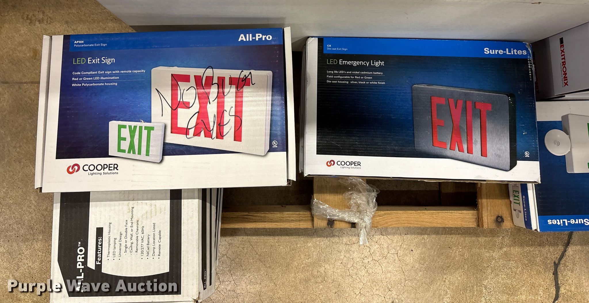 Purple Wave is selling a used Building Materials in Kansas. This item is a Approximately 47 exit and emergency signs with the following: Pallet #3
