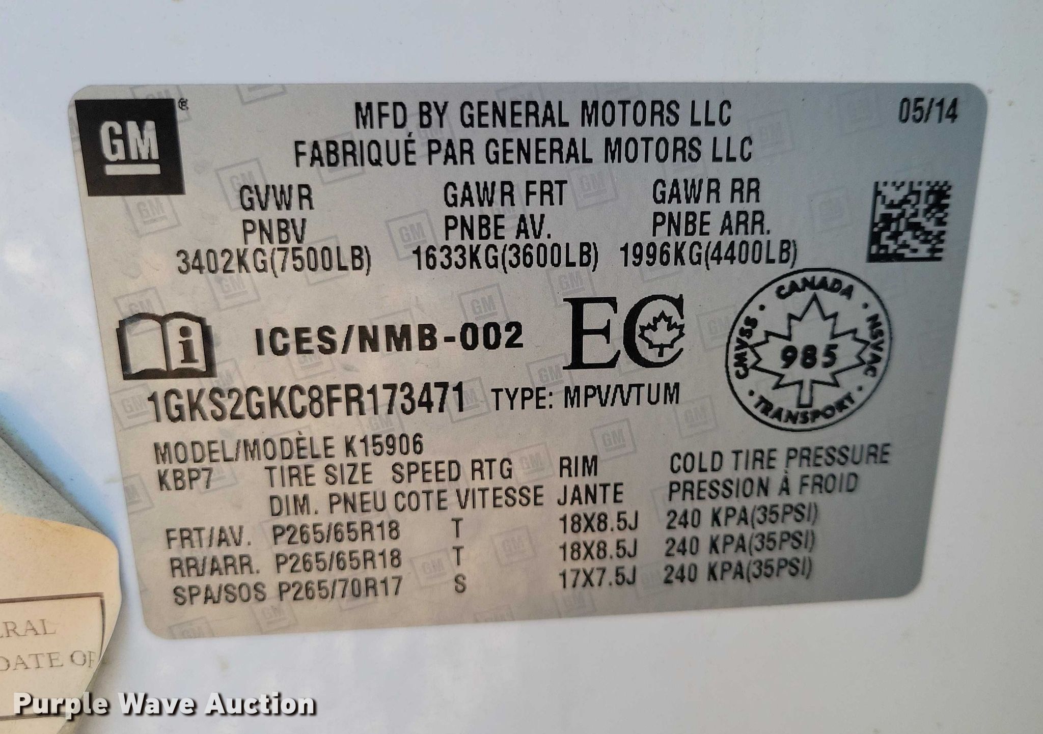 Purple Wave is selling a used Passenger Vehicle in Iowa. This item is a 2015 GMC Yukon SUV with the following: Miles: 95,299 on odometer, VIN: 1GKS2GKC8FR173471