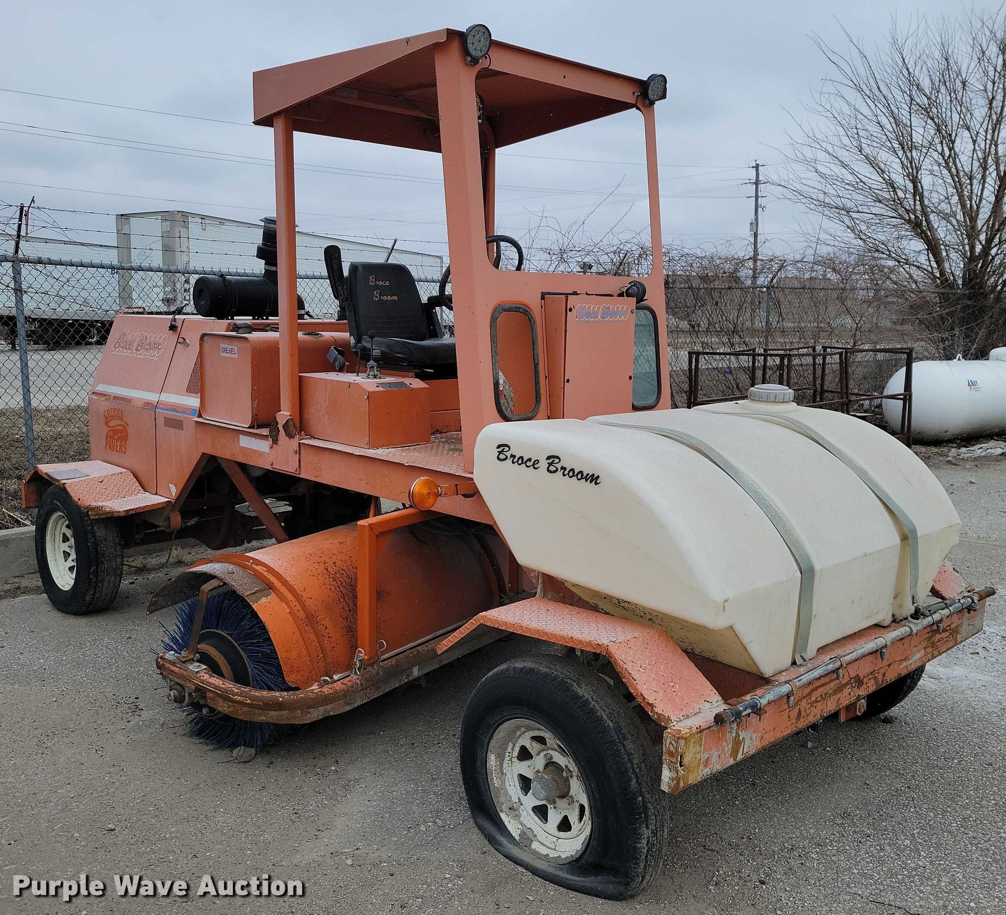 This 2003 Broce RJ350 broom will sell to the highest bidder regardless of price.