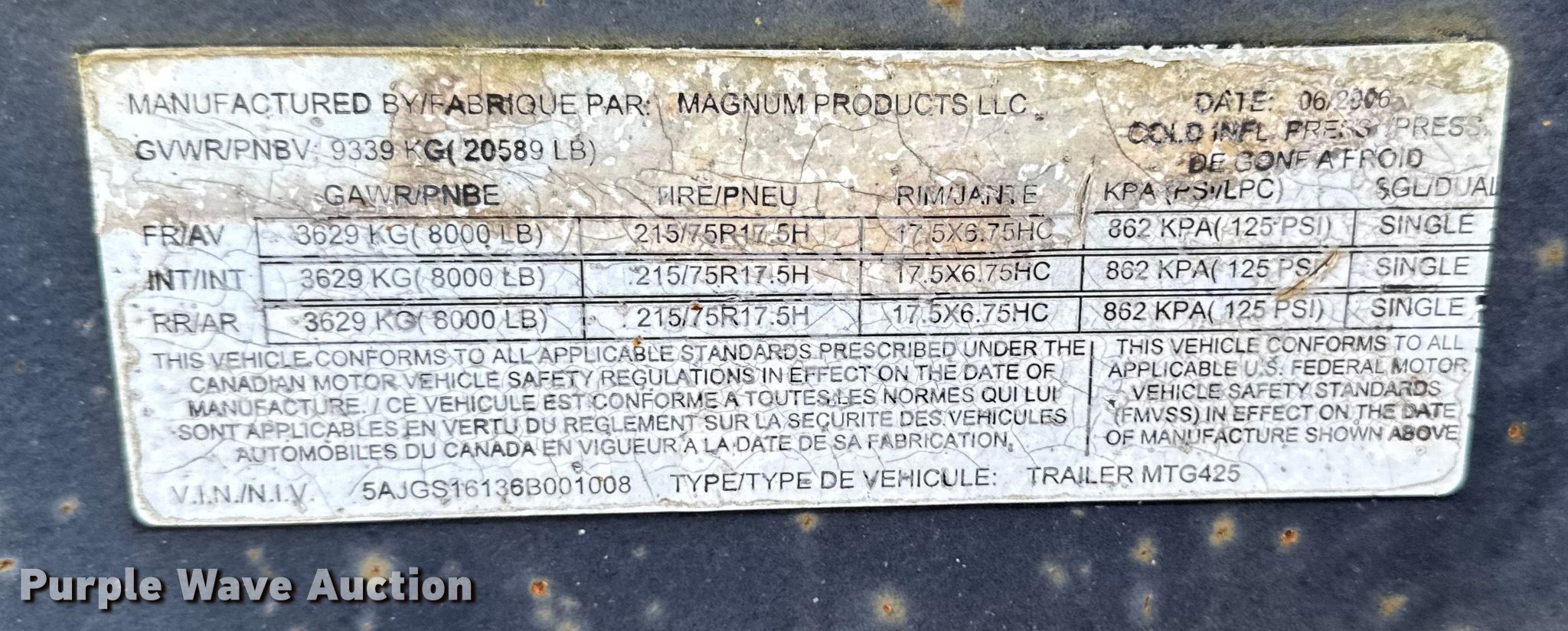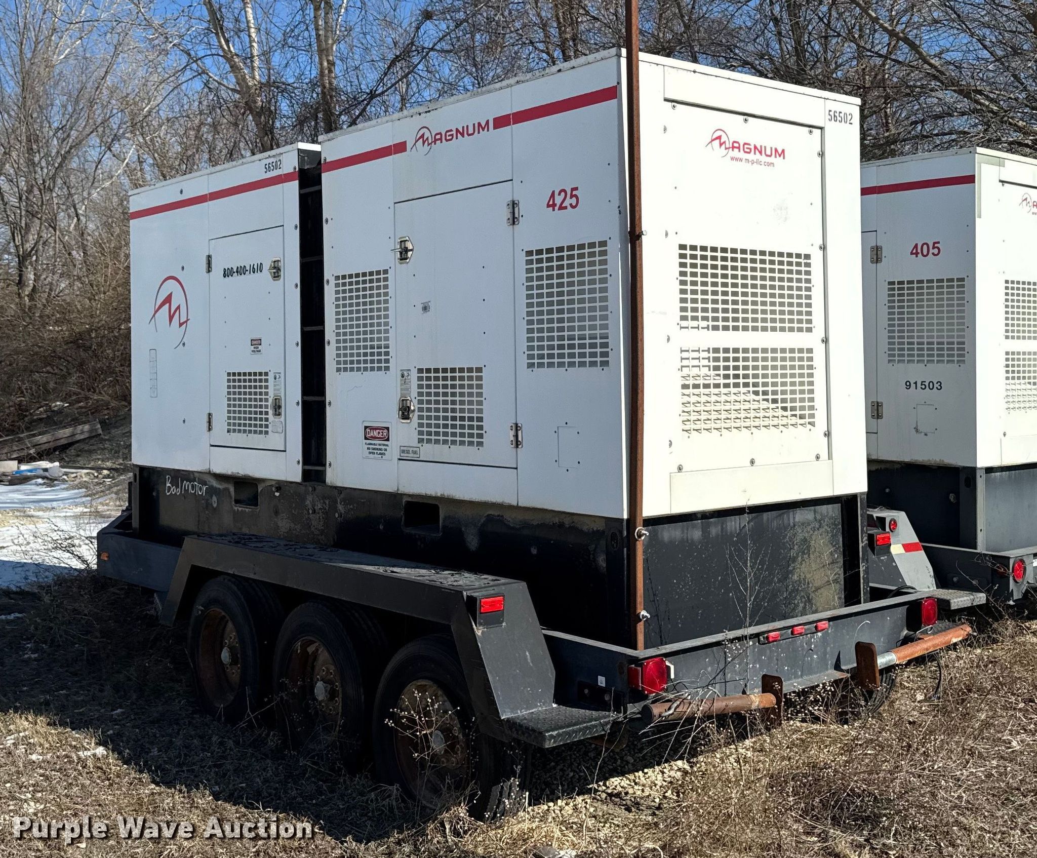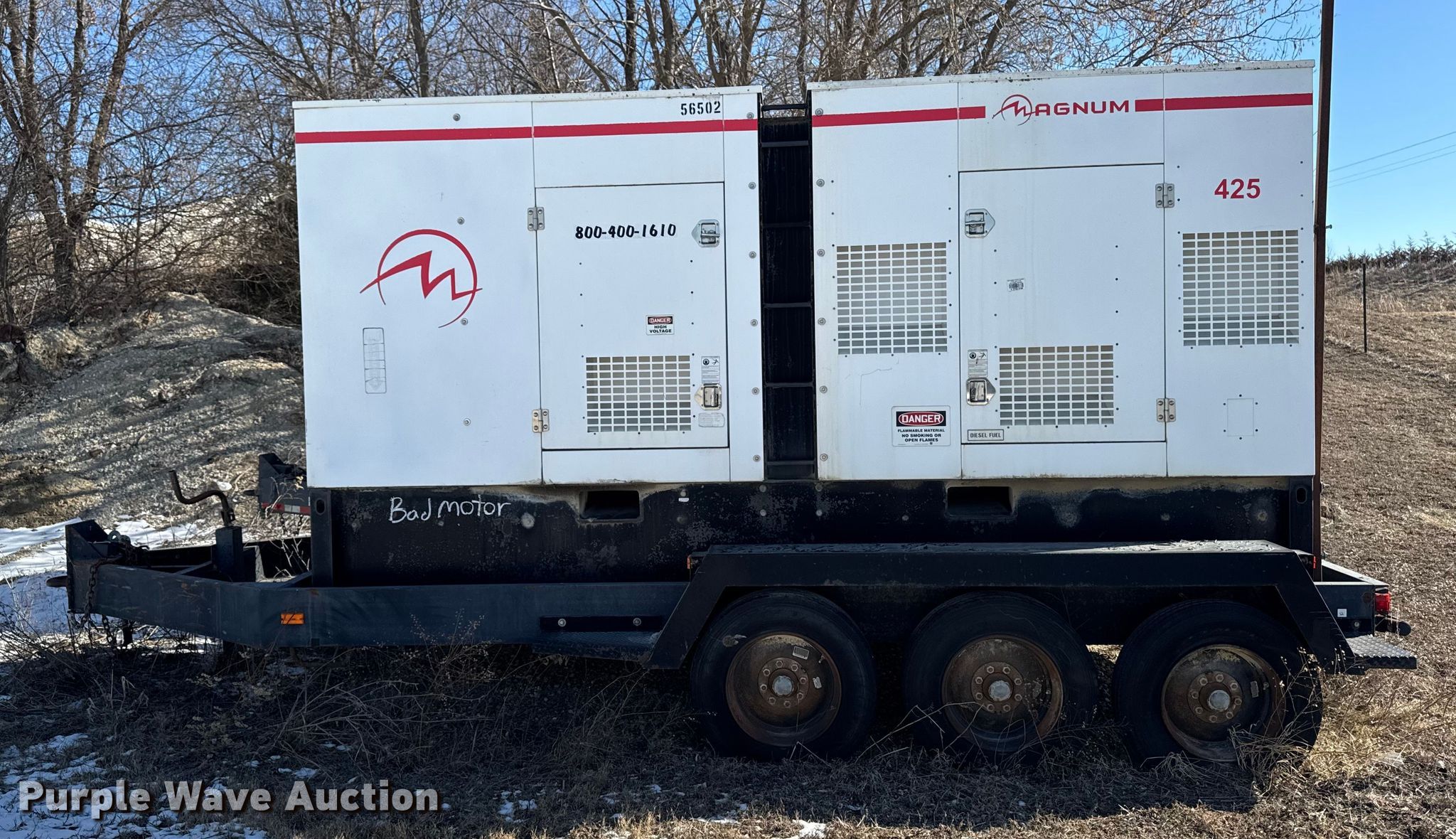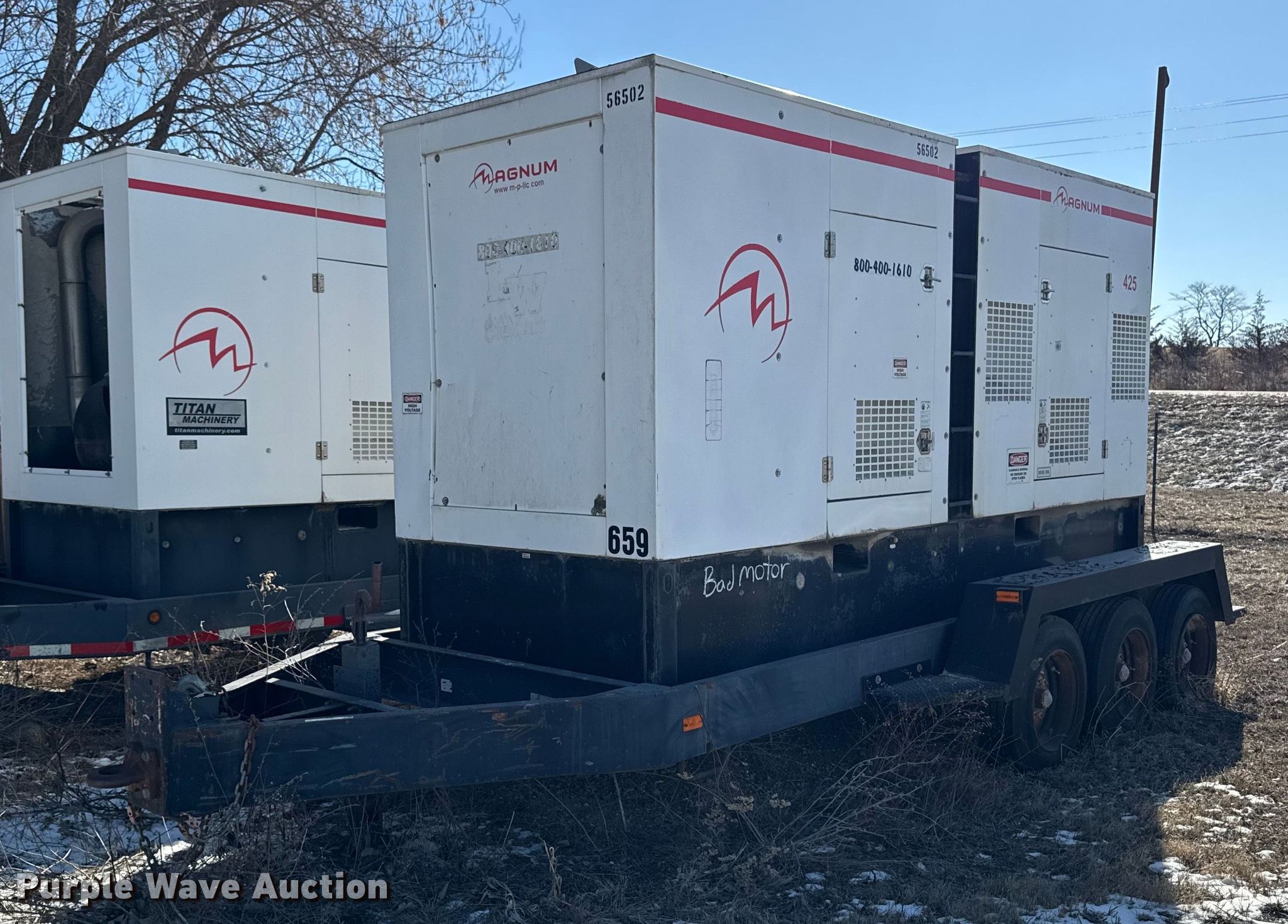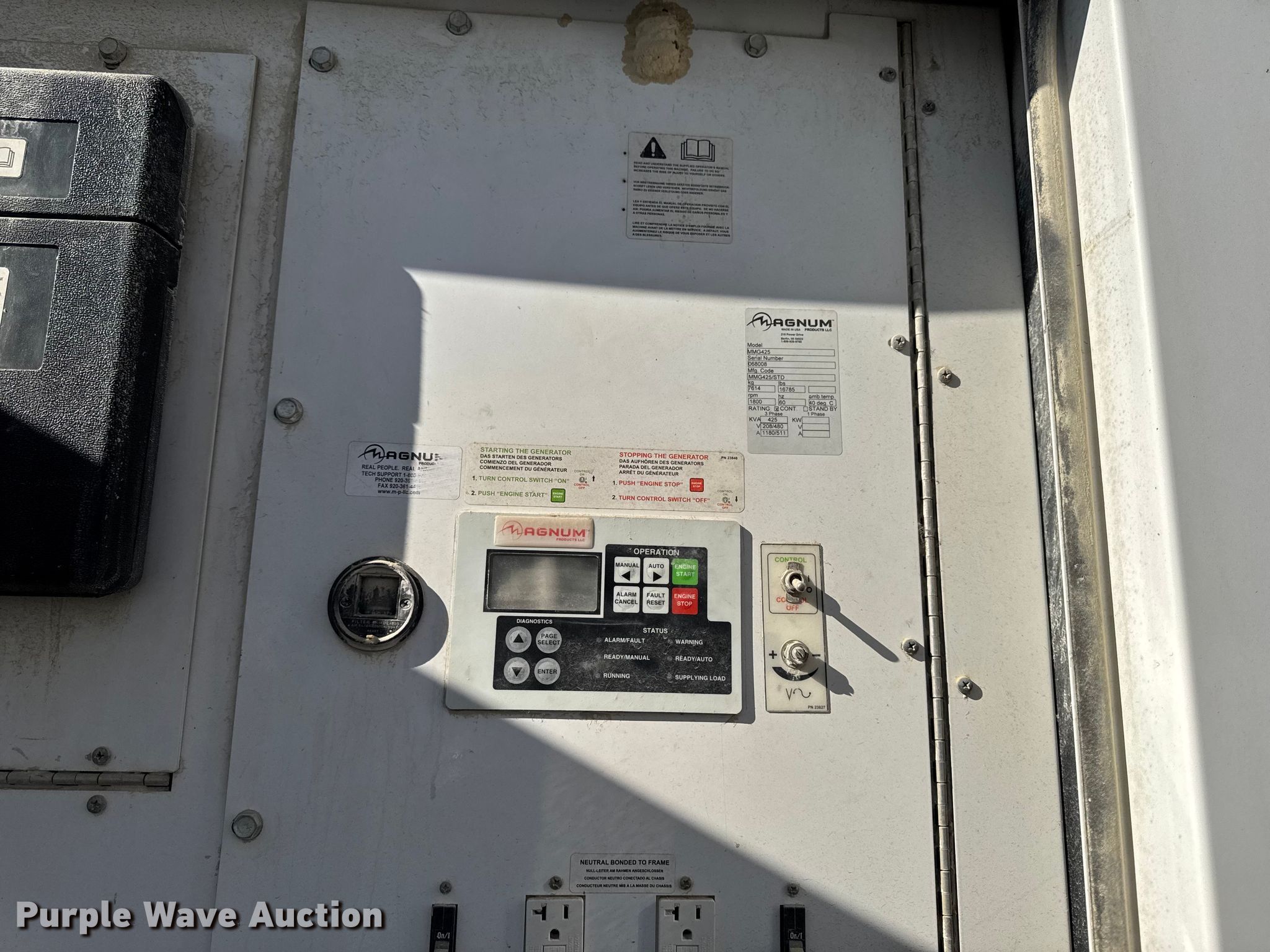 Purple Wave is selling a used Generator Set in Iowa. This item is a Magnum Products MMG425 generator with the following: Hours: Unknown, VIN: 5AJGS16136B001008, Serial: 068008, Unit #: 659