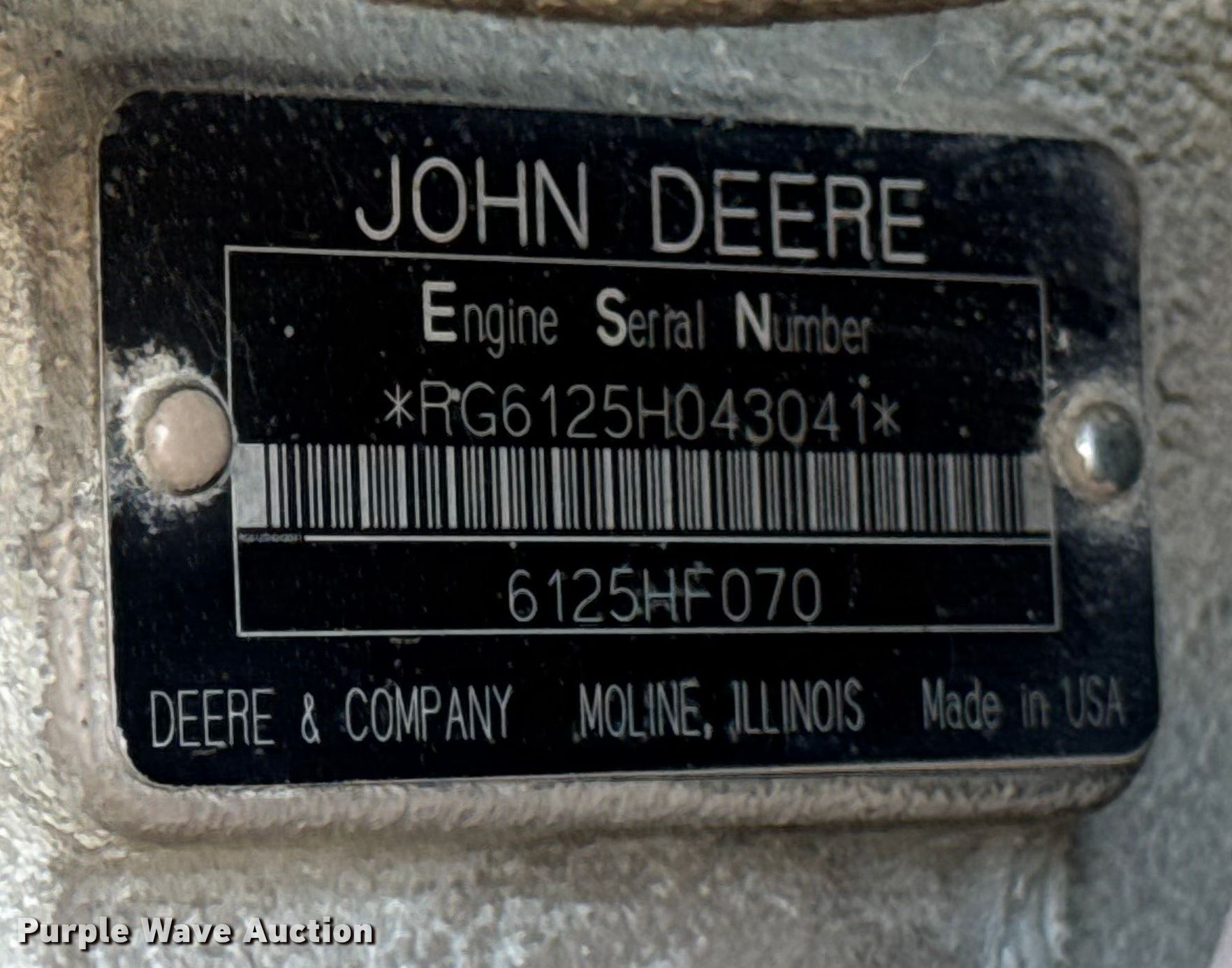 Magnum Products MMG425 generator. Hours: Unknown, VIN: 5AJGS16136B001008, Serial: 068008, Unit #: 659. Engine John Deere 6125HF070, Serial: RG6125H043041, Displacement: 12.5L, Cylinders: 6, Fuel type: Diesel. Features Generator kVA: 425, Phase: Three, Electric start, Fuel tank. Trailer 2006 Magnum Products, 22' L x 102" W, Hitch: Pintle, Suspension: Torsion, Brakes: Electric, Axles: Triple, Tire size: 215/75R17.5. Notes Engine issues , Non-operational display screen, Non-operational unit. This is worksite support equipment and will not come with a title. Transfer of ownership documentation will be a bill of sale. Rasmussen Group. Yarmouth, IA 52660