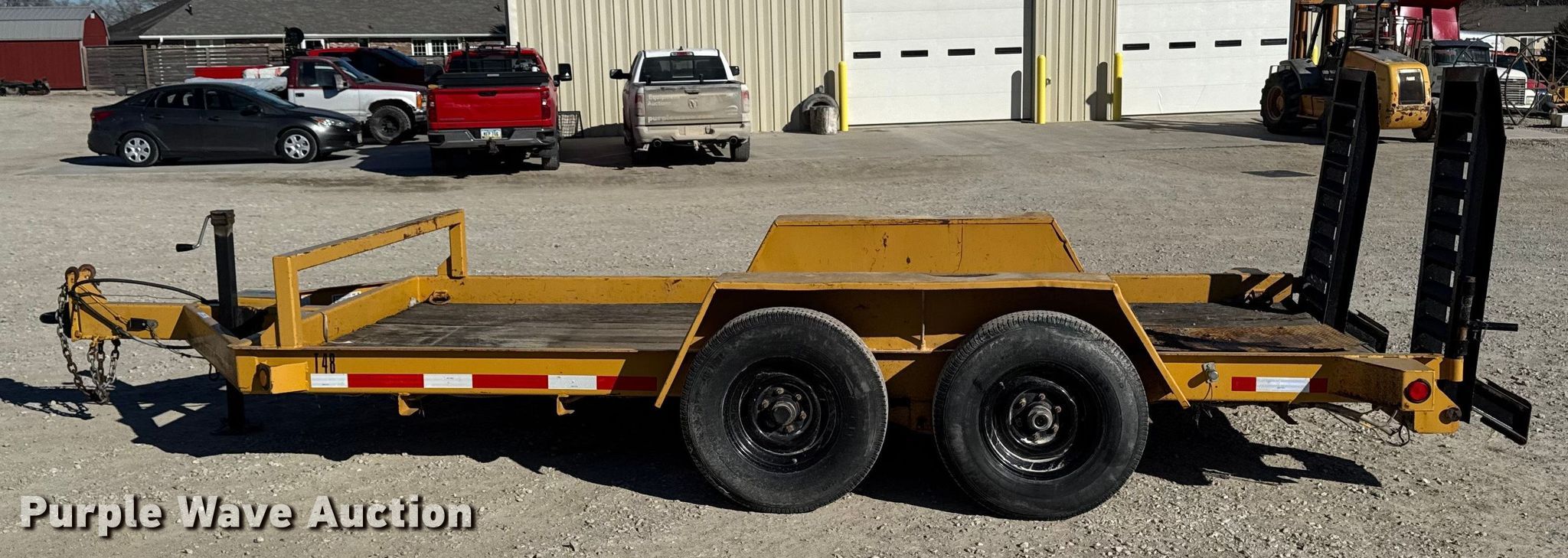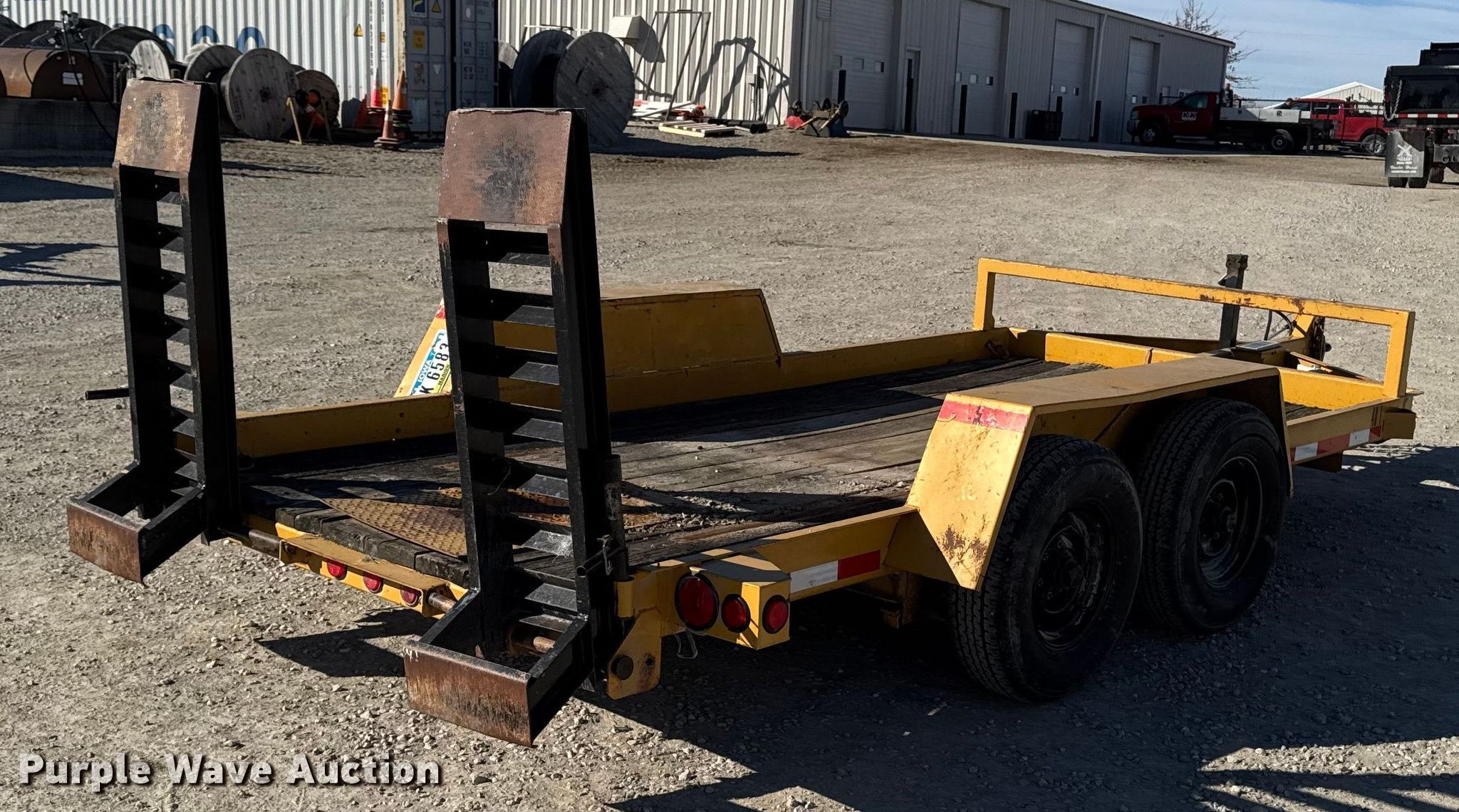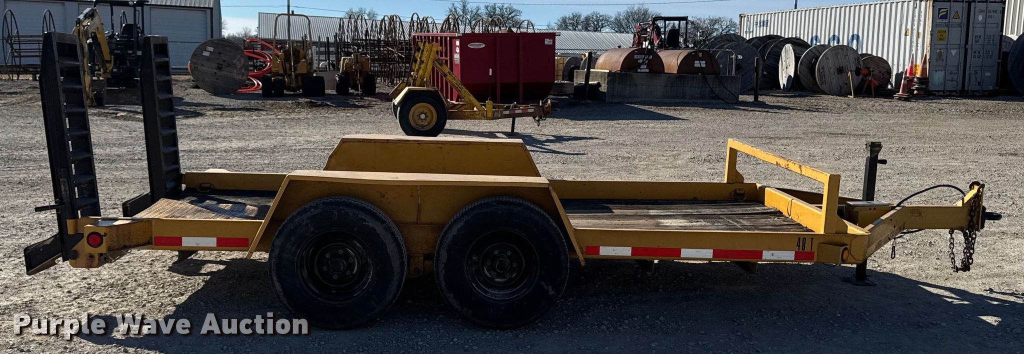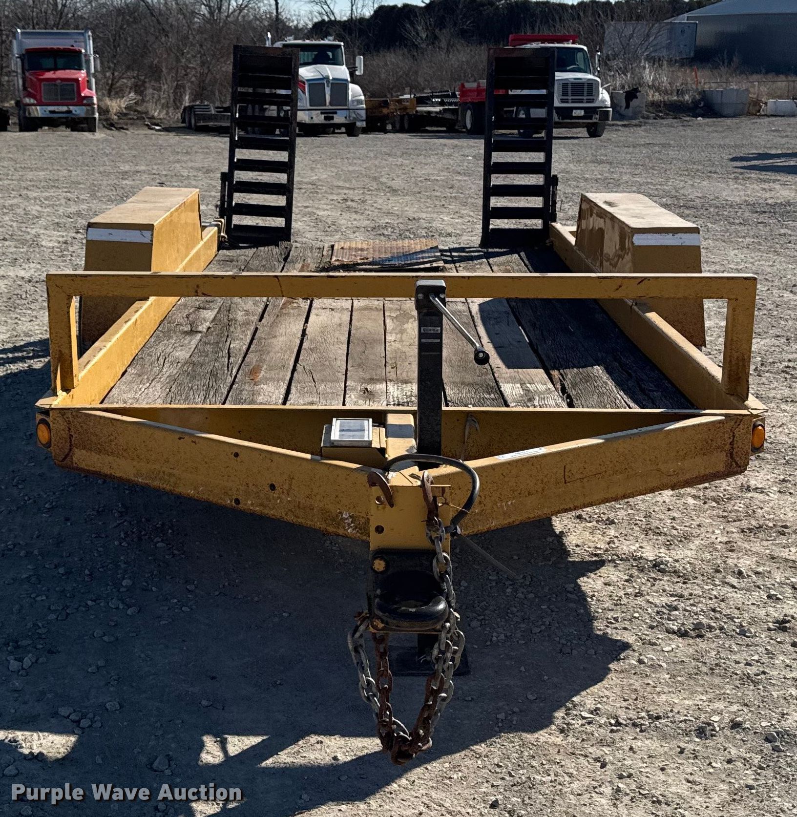 1999 Redi-Haul equipment trailer. VIN: 47SS142T9X1015852. Dimensions Overall Length: 19', Width: 96", Deck Length: 14', Width: 73", Ramps: Manual Length: 45". Features Deck type: Steel, Wood. Chassis Hitch: Pintle, Landing gear: Single, Suspension: Spring, Brakes: Electric, Axles: Tandem. Tires Steel wheels, Size: 225/75R15. Iowa title. Title distribution may be delayed up to 14 days from verification of funds. KLK Construction. Pella, IA 50219