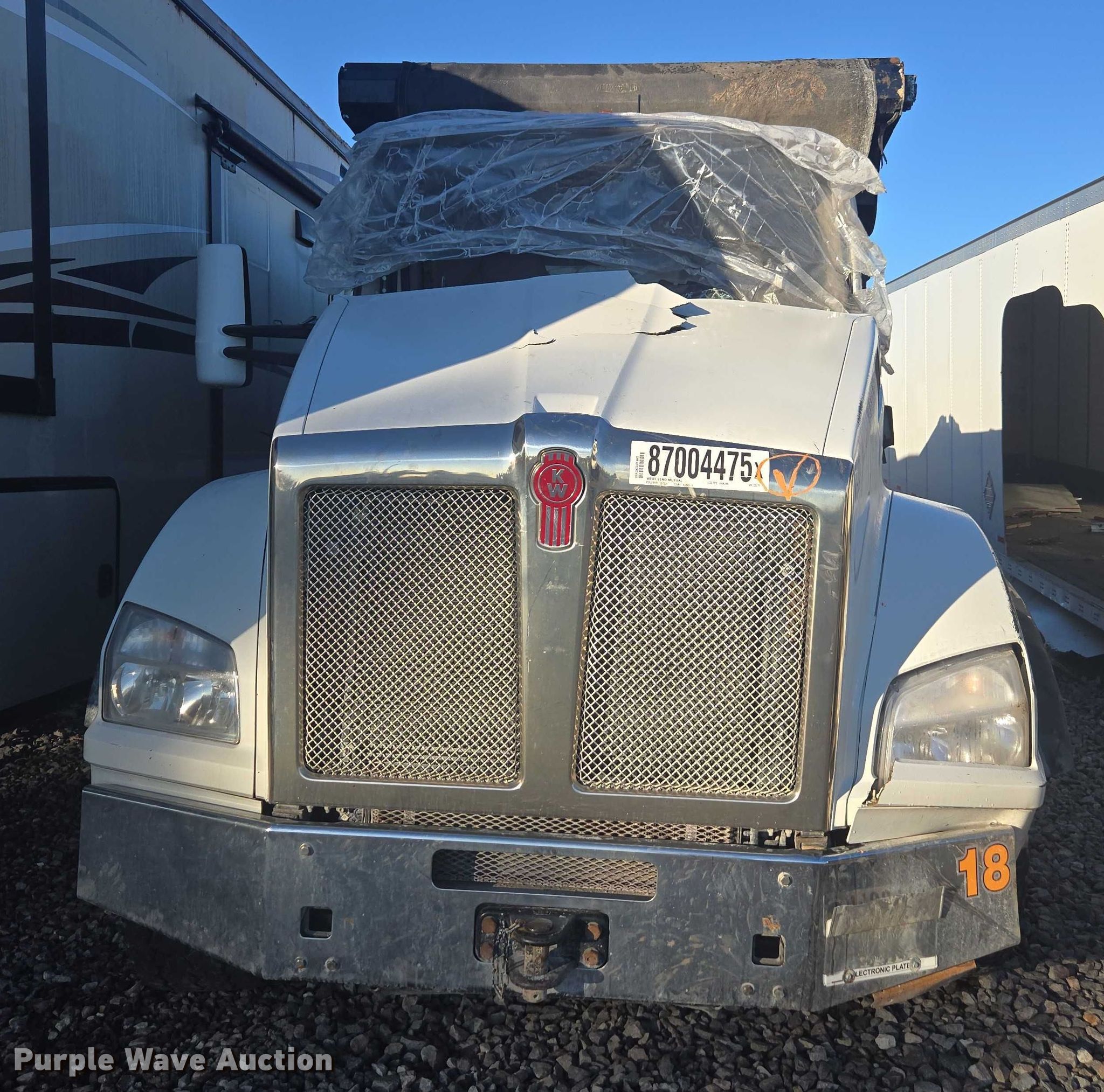 Purple Wave is selling a used Construction Dump Truck in Indiana. This item is a 2018 Kenworth T880 dump truck with the following: Miles: 304,977 on odometer, VIN: 1NKZLK0X4JJ229279, Unit #: 87004475