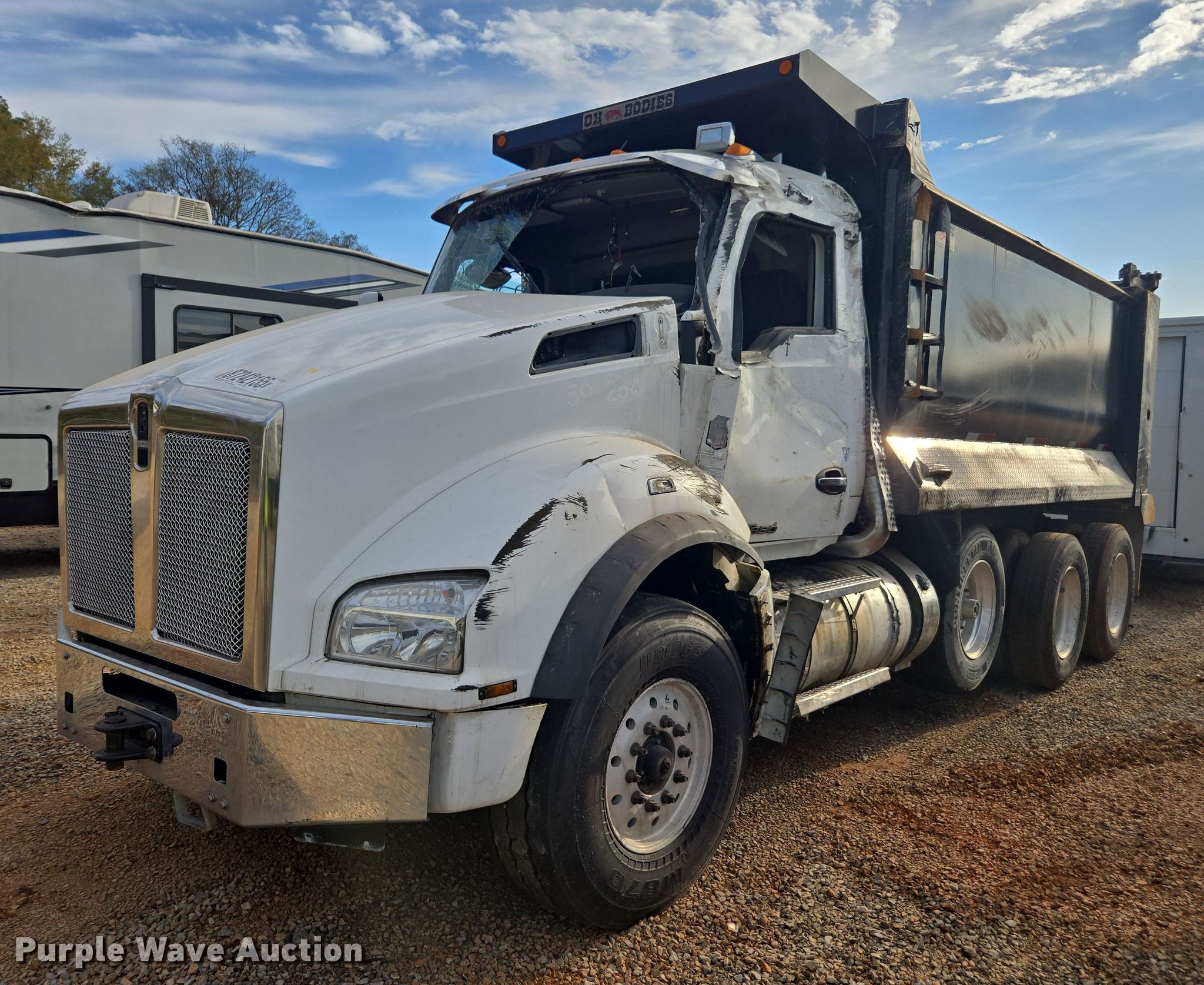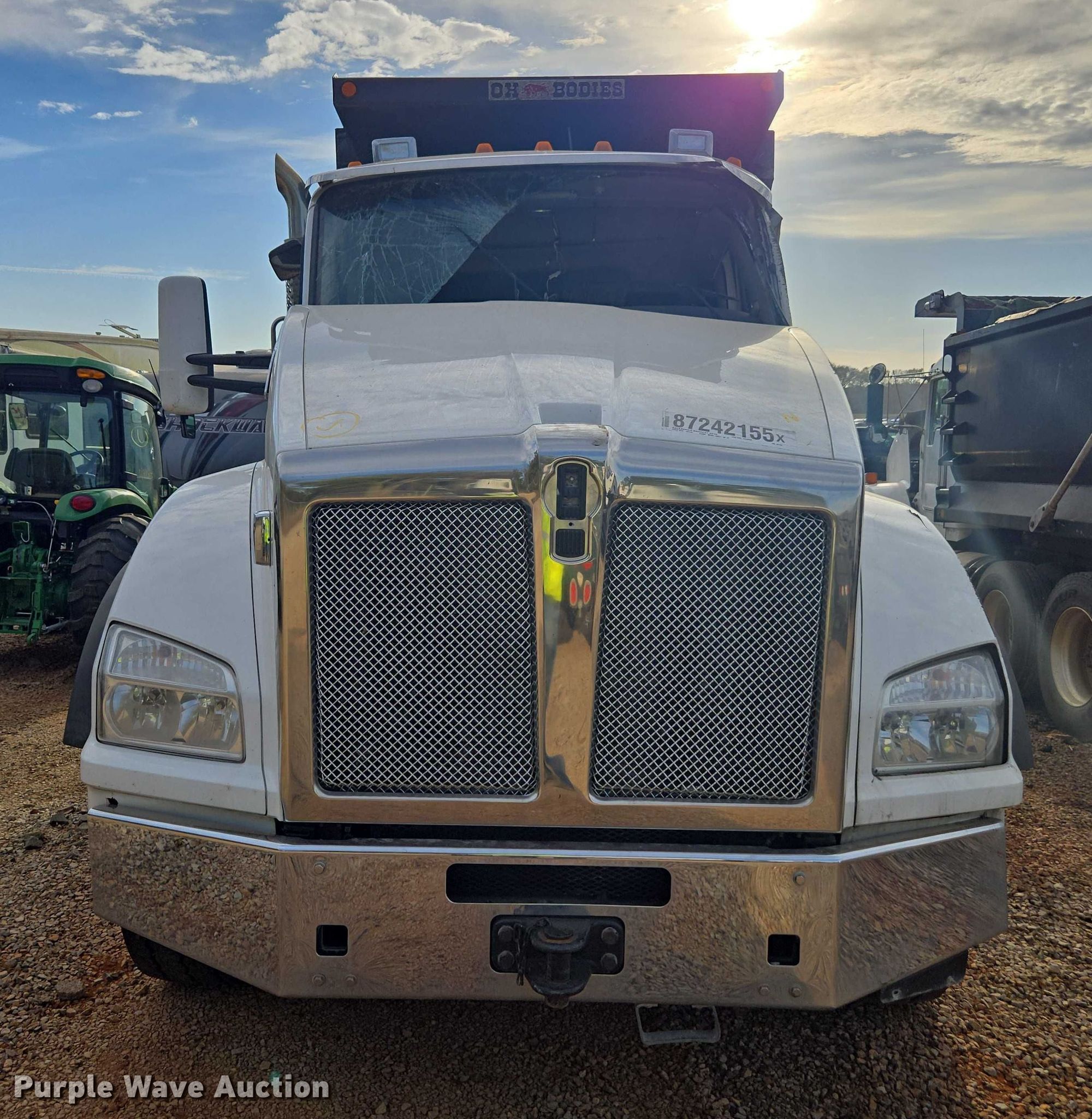 2021 Kenworth T880 dump truck. Miles: 243,141 on odometer, Hours: 213 on meter, VIN: 1NKZX4TX5MJ437266, Unit #: 87242155. Engine Cummins X15, Displacement: 15.0L, Cylinders: 6, Fuel type: Diesel, HP: 500, Engine brake. Transmission Automatic. Chassis Double frame, Axles: Triple, Pusher axle, Differential lock: Full, Suspension: Spring over walking beam, Brakes: Air, PTO, GVWR: 88,500 lbs FAWR: 20,000 lbs, IAWR: 22,500 lbs, RAWR: 23,000 lbs. Interior AC, Heat, Heated mirrors, Power windows, Cruise control. Features Bed Dump bed, Ox Bodies, Length: 16', Width: 96", Side height: 60", Bed type: Steel, Ram: Single, End gate: Air operated. Tires Front: 425/65R22.5, Rear: 11R24.5, Lift axle: 385/65R22.5. Notes Dash warning indicator: Brake system warning, Dead battery, Key not included, Glass missing, Dash partially disassembled, Rollover damage, Driveshaft disconnected Unit must be towed or hauled, Unknown operating condition. Insurance salvage, stored at a secured facility. Please review REQUIRED REMOVAL INSTRUCTIONS. Titles will be distributed after confirmation of payment and removal. Alabama salvage title. Mileage has not been verified. Exempt will be written in the odometer disclosure on the title. Title distribution may be delayed up to 30 days from verification of funds. Insurance Salvage. Tanner, AL 35671