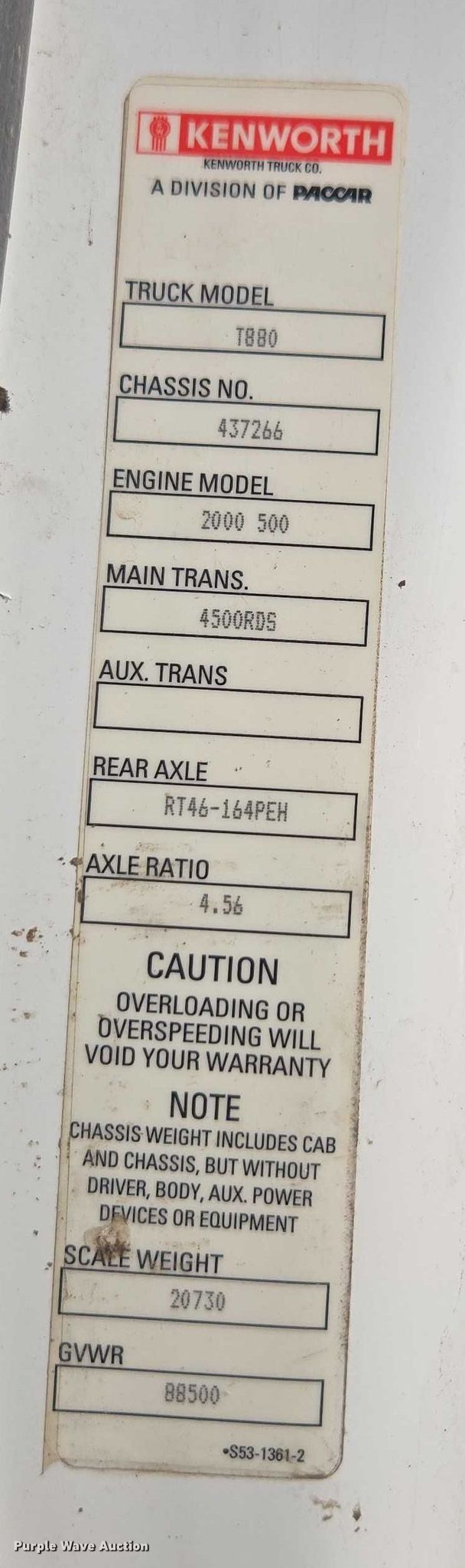 - GVWR: 88,500 lbs