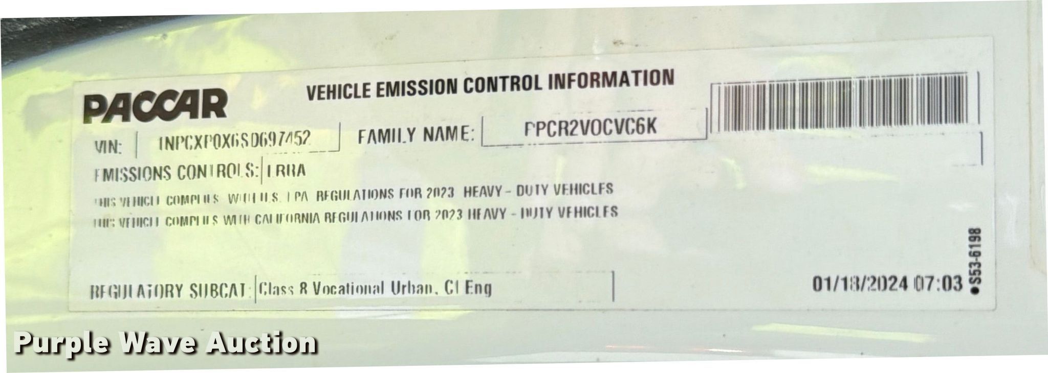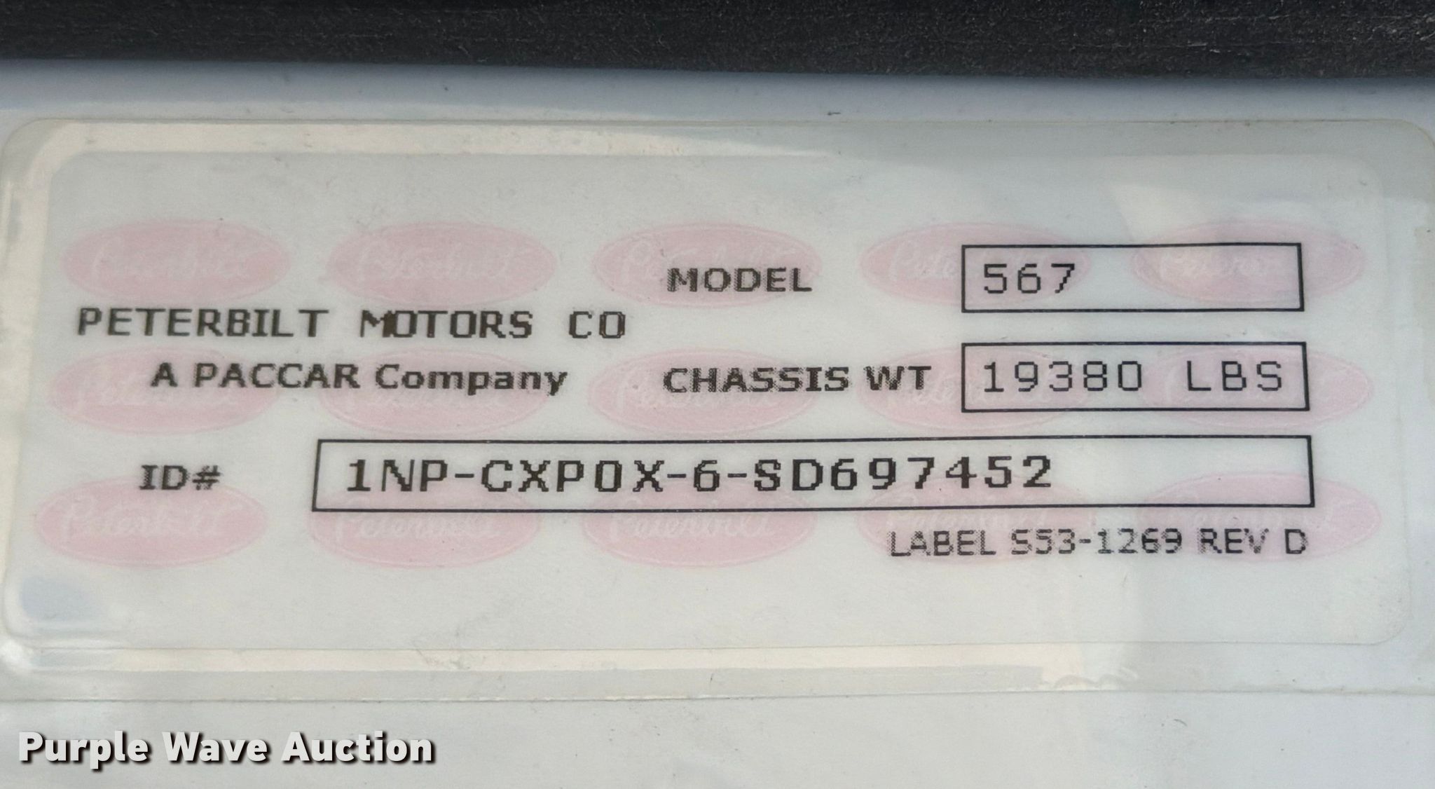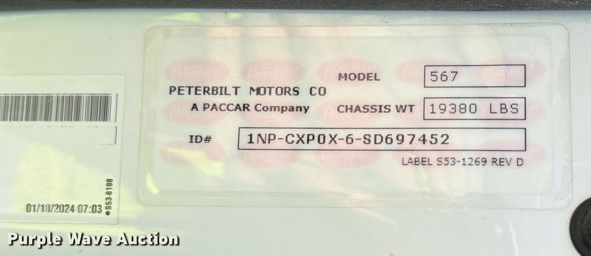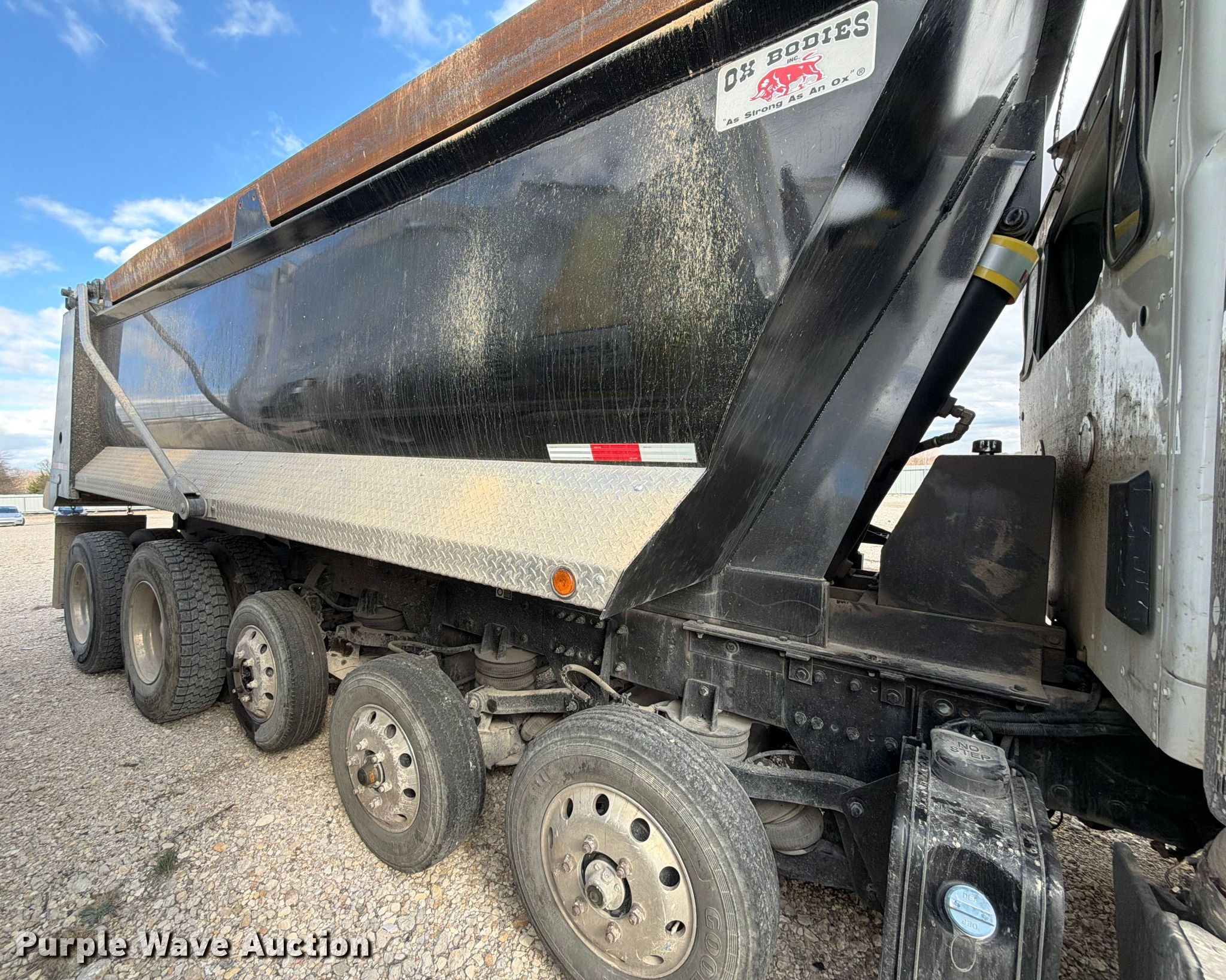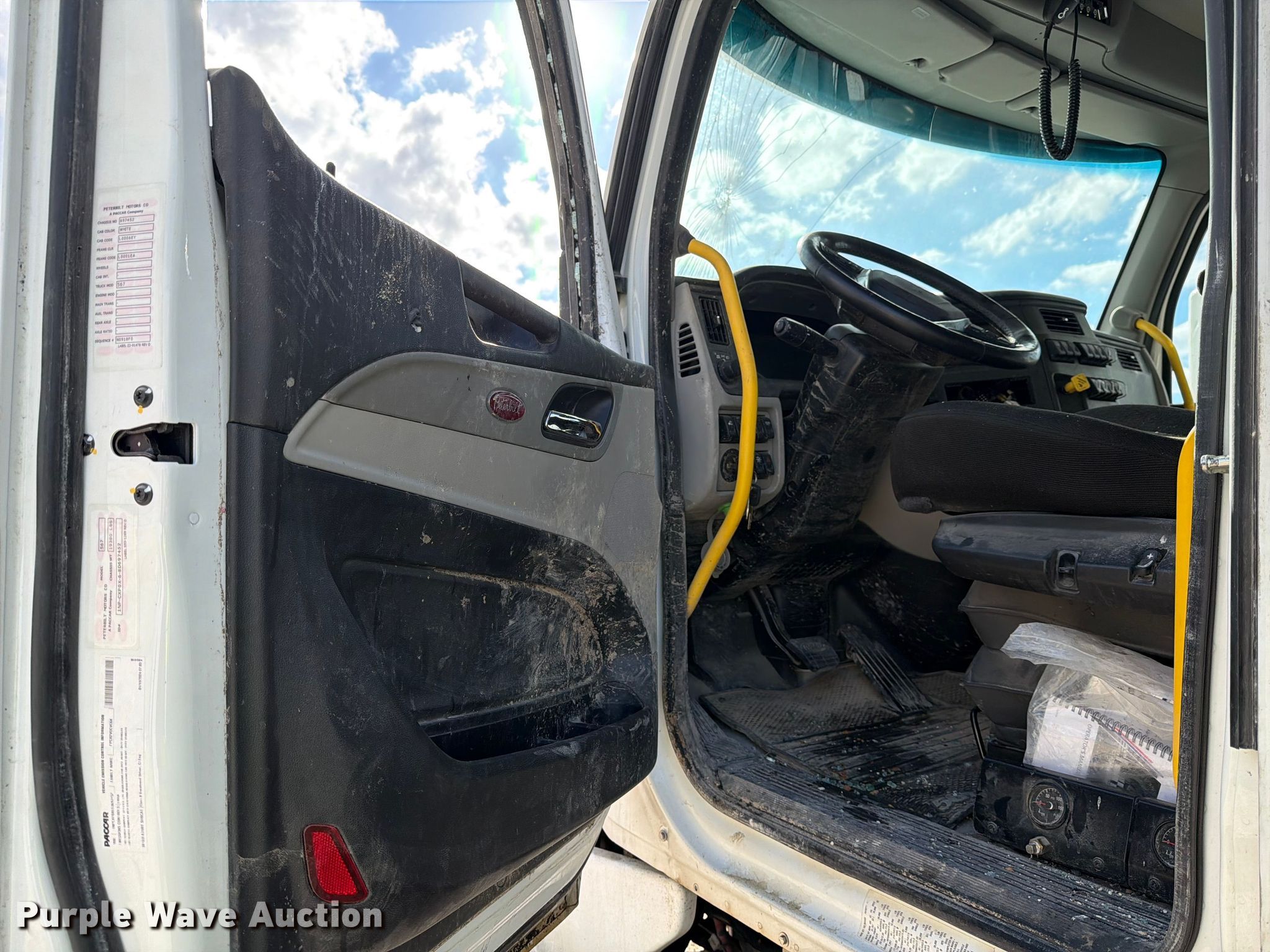 2025 Peterbilt 567 dump truck. Miles: 51,697 on odometer, Hours: 2,829 on meter, VIN: 1NPCXP0X6SD697452, Unit #: 98554405. Engine Paccar MX-13, Displacement: 12.9L, Cylinders: 6, Fuel type: Diesel, HP: 510, Engine brake. Transmission Allison, Automatic. Chassis Axles: 5, Pusher axle Steerable, Differential lock: Inter-axle, Suspension: Air Dump valves, Brakes: Air, PTO, GVWR: 70,000 lbs FAWR: 20,000 lbs, IAWR: 20,000 lbs, RAWR: 20,000 lbs, Lift axle GAWR: 8,000 lbs, Wheelbase: 270". Interior AC, Heat, Heated mirrors, Power windows, Cruise control. Features Bed Dump bed, Ox Bodies, Serial: S242803310080171AL, Length: 20', Width: 98", Side height: 52", Side board height: 10", Bed type: Steel, Roll tarp, Ram: Single, End gate: Air operated. Tires Front: 315/80R22.5, Rear: 11R22.5, Lift axle: 215/75R17. Notes Windshield chipped or cracked, Dead battery, Rollover damage, Glass broken, Flat tire, Tire missing, Non-operational unit Unit must be towed or hauled. Buyer responsible for all aspects of loadout and removal. Insurance salvage, stored at a secured facility. Please review REQUIRED REMOVAL INSTRUCTIONS. Titles will be distributed after confirmation of payment and removal. Texas salvage title. Title distribution may be delayed up to 30 days from verification of funds. Insurance Salvage. 7201 North General Bruce Drive. Temple, TX 76501