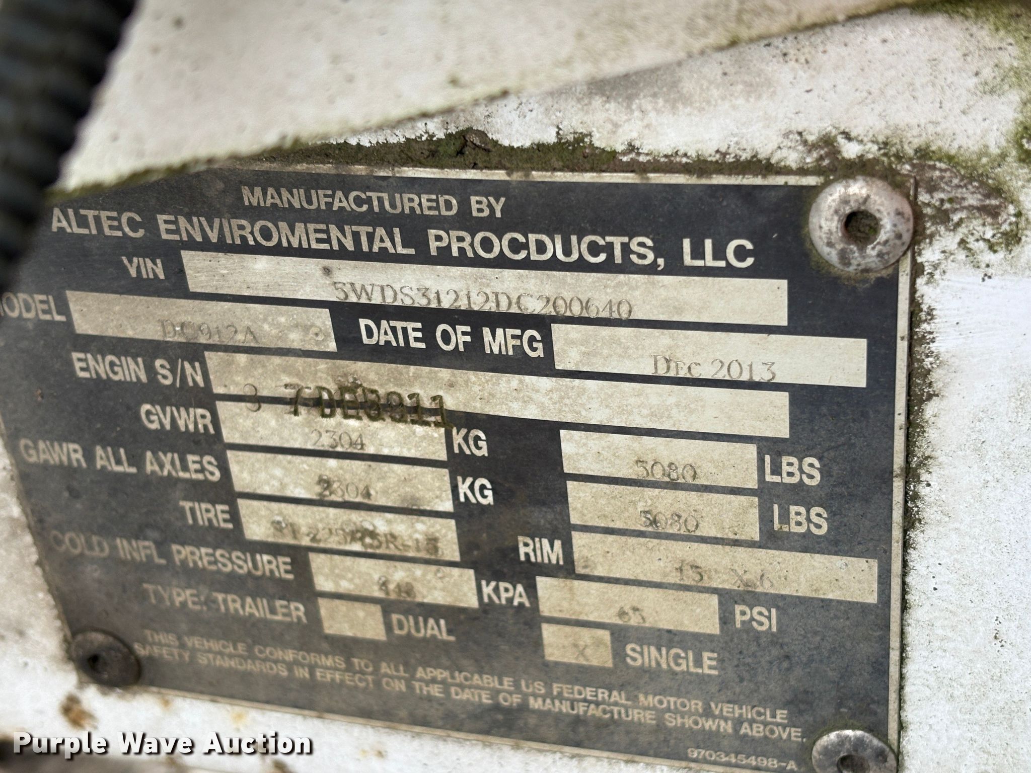 2014 Altec DC912A wood chipper. Hours: Unknown, VIN: 5WDS31212DC200640, Unit #: 94914785. Engine Kubota V2203-M, Serial: 7DE5911, Cylinders: 4, Fuel type: Diesel. Features Capacity: 9", Throat opening: 11" x 11", Auto feed. Trailer 13' L x 80" W, Hitch: Pintle, Suspension: Torsion, Axles: Single, Tire size: 225/75R15. Notes Dead battery, Key not included, Unknown operating condition. Fleet inventory reduction, stored at a secured facility. Please review REQUIRED REMOVAL INSTRUCTIONS. This is worksite support equipment and will not come with a title. Transfer of ownership documentation will be a bill of sale. Arborist Fleet Inventory Reduction. 29815 East Enid Road. Eugene, OR 97402
