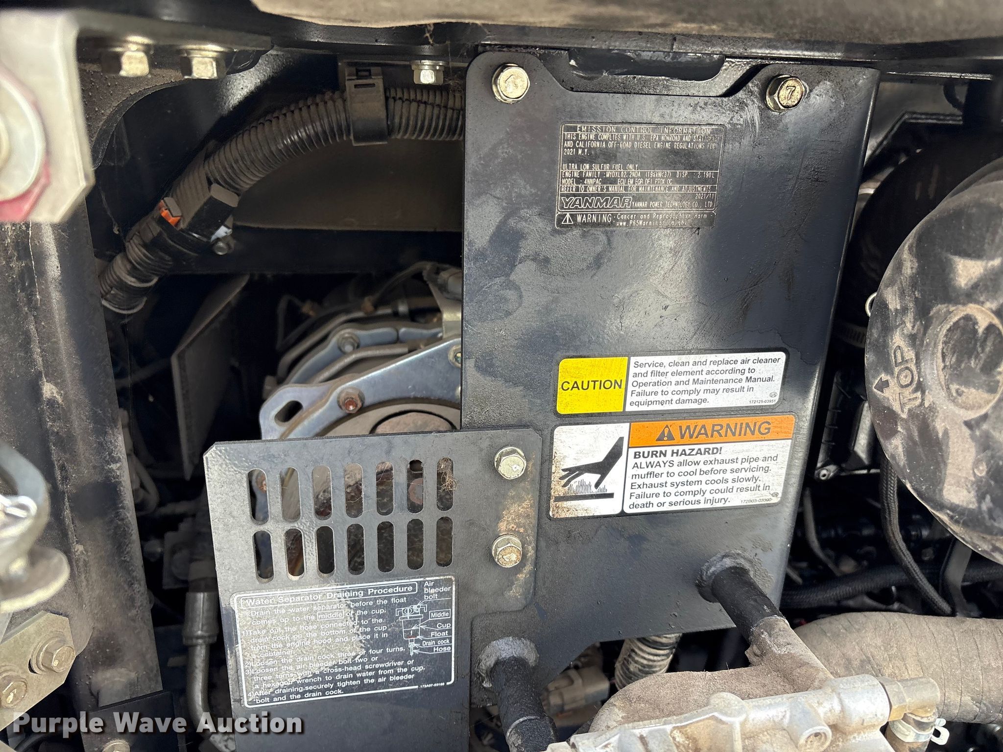 2022 Yanmar SV40 mini excavator. Hours: 566 on meter, Serial: YMRSV40YVNYJ01746, Unit #: 50785195. Engine Yanmar 4NNPAC, Serial: 99886, Displacement: 2.190L, Cylinders: 4, Fuel type: Diesel. Transmission Hydrostatic, Two speed travel. Operators station Enclosed cab, AC, Heat, Pattern changer, Grade control. Features Auxiliary hydraulics, Counter weights, Removable, Backfill blade Width: 68", Boom Swing, Stick Stick length: 6' 3", Quick coupler: Hydraulic, Thumb: Hydraulic Tag.. Tracks Width: 14", Rubber. Notes Jump start required during on-site data collection, Flood damage. Buyer responsible for all aspects of loadout and removal. Insurance salvage, stored at a secured facility. Please review REQUIRED REMOVAL INSTRUCTIONS. Insurance Salvage. Dunn, NC 28334