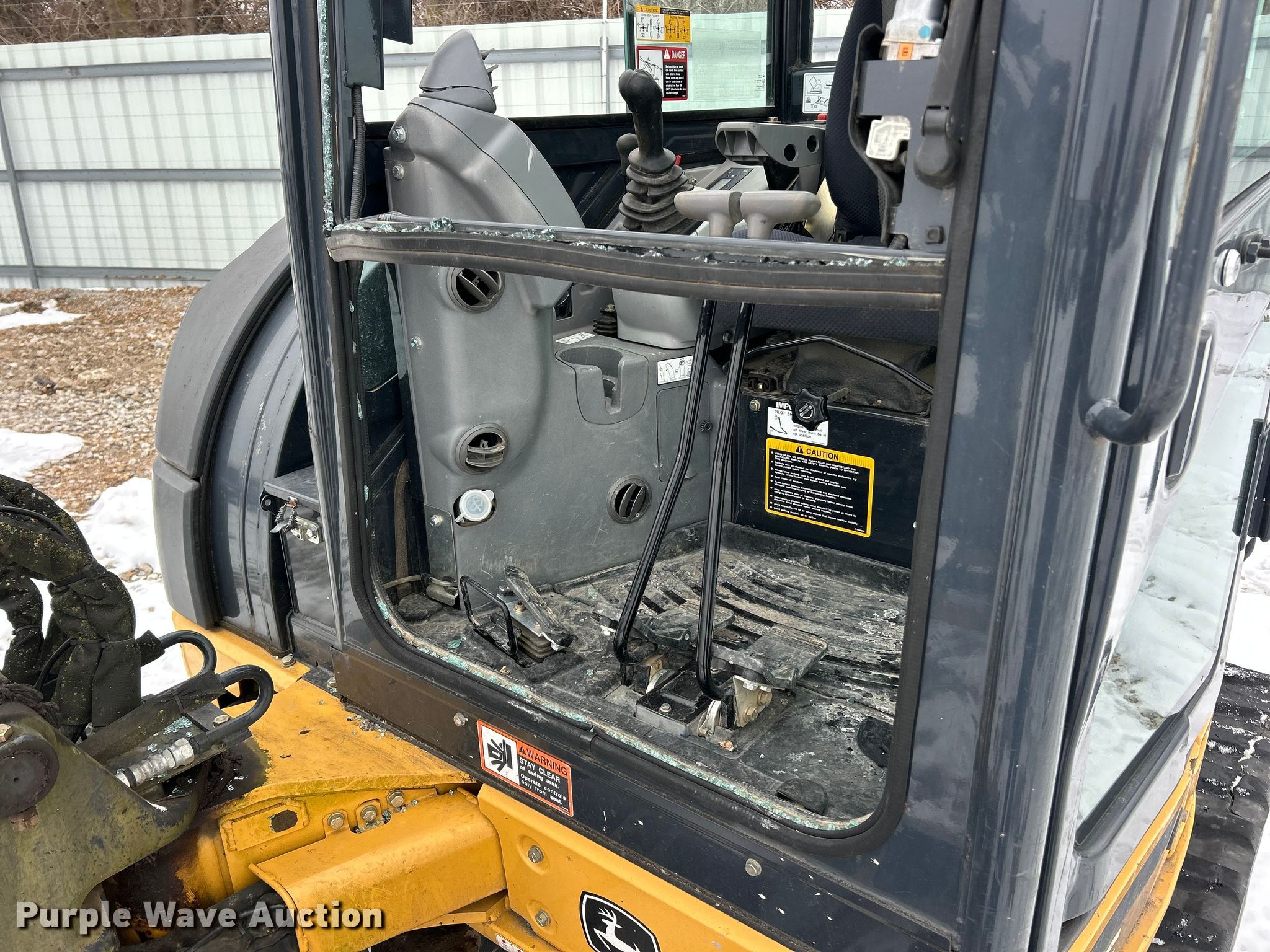 2015 John Deere 50G mini excavator. Hours: 1,159 on meter, Serial: 1FF050GXLFH283499, Unit #: 74841855. Engine Yanmar 4NNPAC, Displacement: 2.190L, Cylinders: 4, Fuel type: Diesel. Transmission Hydrostatic, Two speed travel. Operators station Enclosed cab, AC, Heat, Pattern changer. Features Auxiliary hydraulics, Counter weights, Removable, Backfill blade Width: 79", Boom Swing, Stick Stick length: 5' 6", Quick coupler: Mechanical, Thumb: Hydraulic. Tracks Width: 16", Rubber. Notes Collision damage, Glass missing, Glass broken. Buyer responsible for all aspects of loadout and removal. Insurance salvage, stored at a secured facility. Please review REQUIRED REMOVAL INSTRUCTIONS. Insurance Salvage. Bridgeton, MO 63044