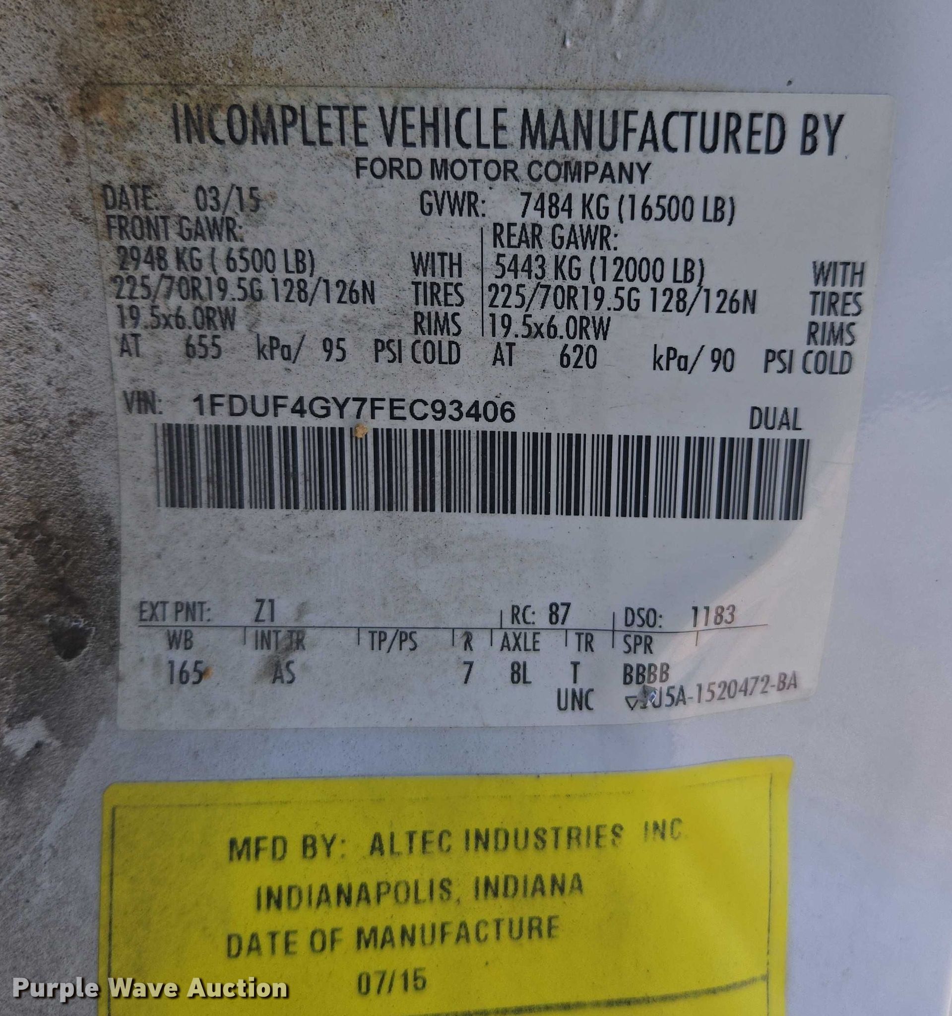 - VIN: 1FDUF4GY7FEC93406