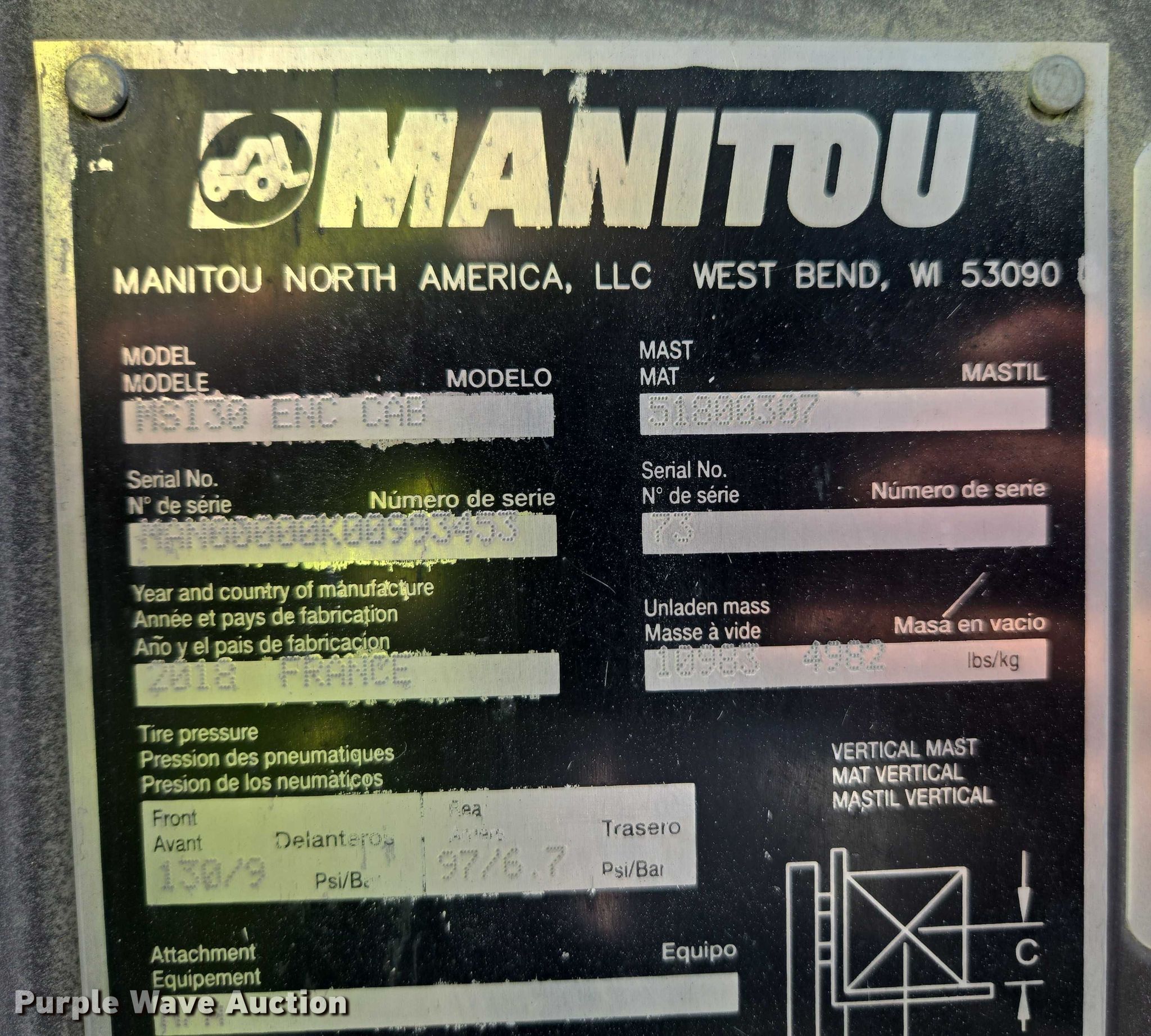 Purple Wave is selling a used Strt. Mast Rough Terr. Forklift in Georgia. This item is a 2018 Manitou MSI30T forklift with the following: Hours: 124 on meter, Serial: MAN00000K00993453, Unit #: 74466995
