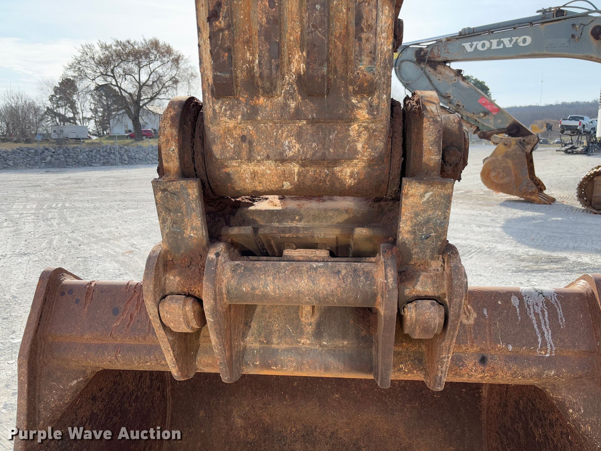 2005 Volvo EC360B LC excavator. Hours: 7,879 on meter, Serial: EC360V11281, Unit #: 78272215. Engine Volvo D12CECE2, Displacement: 12.1L, Cylinders: 6, Fuel type: Diesel, HP: 265. Transmission Hydrostatic. Operators station Enclosed cab, AC, Heat, Pattern changer. Features Auxiliary hydraulics Standard, Counter weights, Boom Standard, Stick Stick length: 10' 6", Quick coupler: Hydraulic, Bucket Geith, Width: 62", Teeth: 6. Tracks Width: 35.5", Steel, Grouser pads: Triple. Notes Warning indicator: Low coolant, Glass cracked, Hydraulic pump leak, Stick cylinder leak, Fuel leak. Construction inventory reduction, stored at a secured facility. Please review REQUIRED REMOVAL INSTRUCTIONS. RG. Prairie Grove, AR 72753