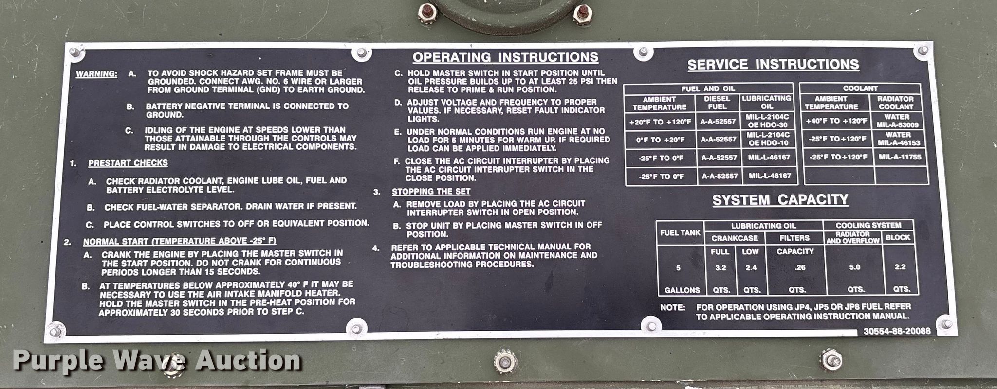 Purple Wave is selling a used Generator Set in Tennessee. This item is a 2003 MEP-802A generator with the following: Hours: 887 on meter, Serial: FZ05466