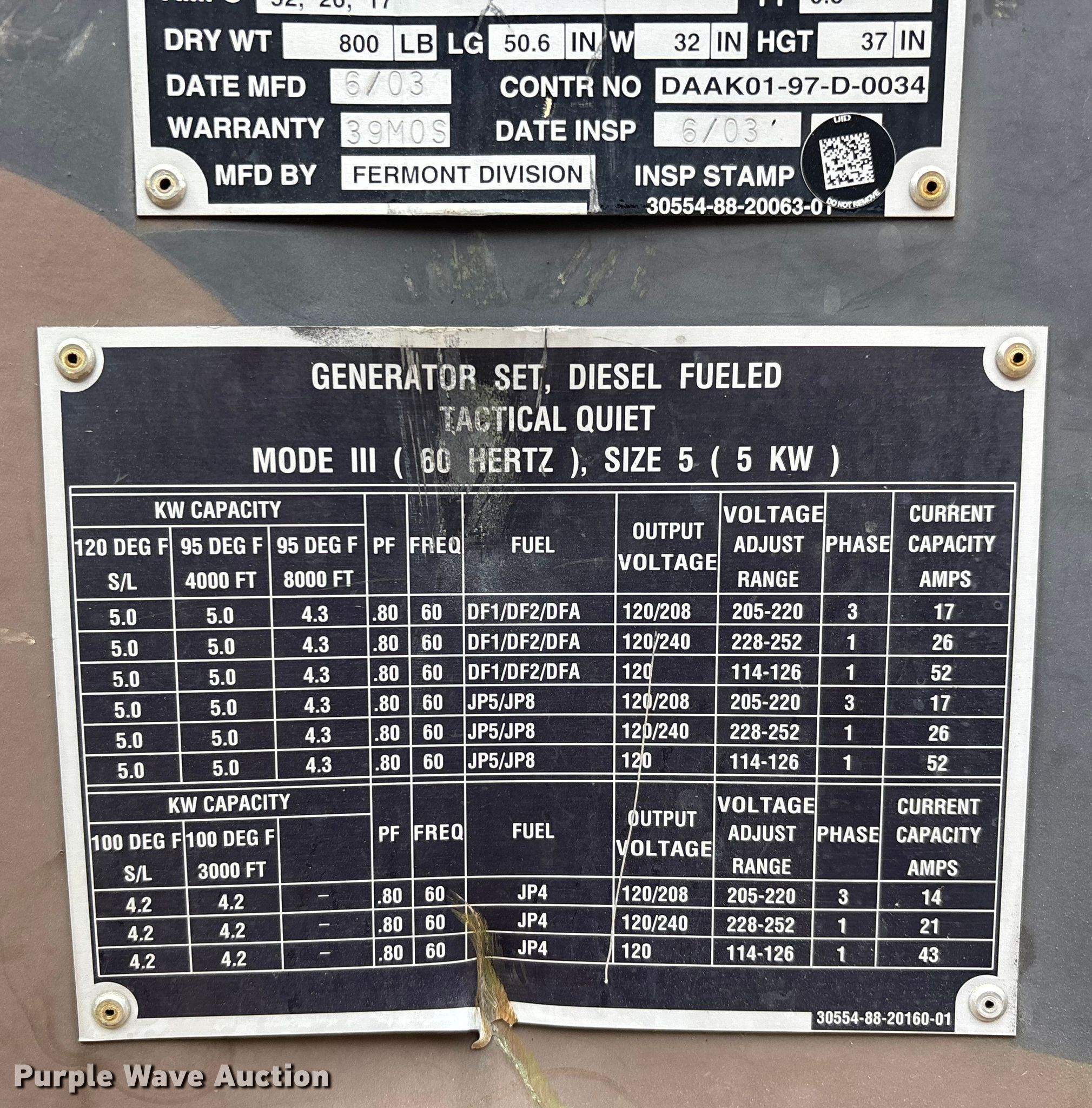 2003 MEP-802A generator | Tuesday March 17 Government Auction