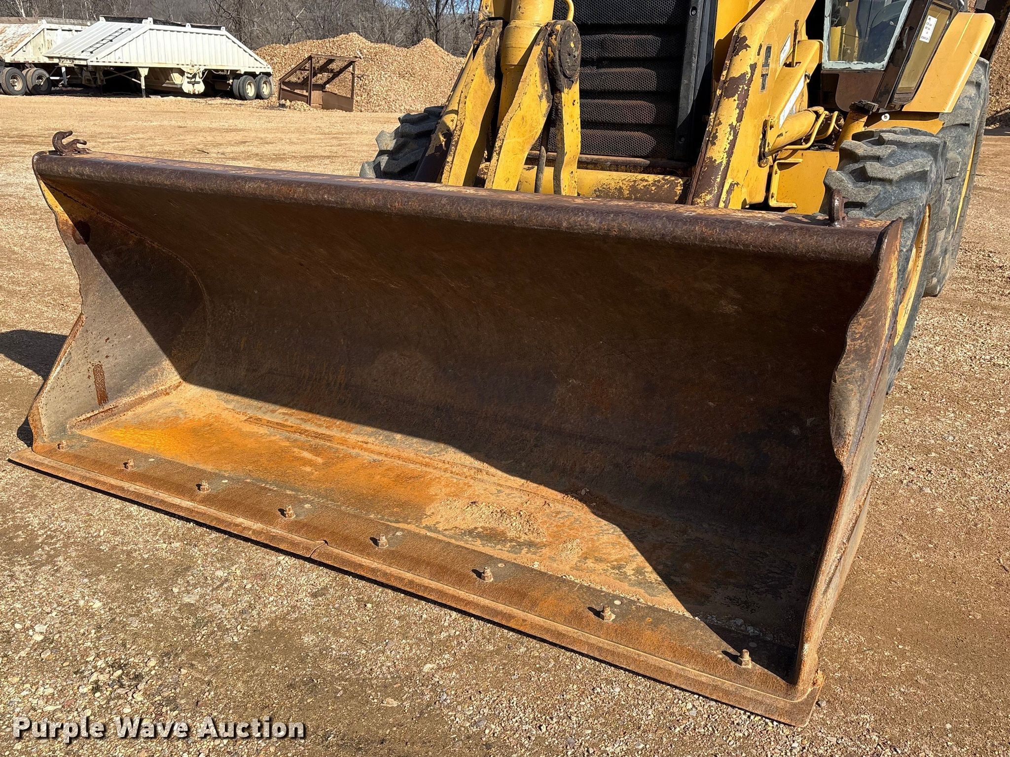 2002 Caterpillar 430D backhoe. Hours: 6,352 on meter, Serial: CAT0430DVBNK02632. Engine Cat, Cylinders: 4, Fuel type: Diesel. Transmission Shuttle shift, 4F - 4R. Chassis Four wheel drive, Differential lock. Operators station Enclosed cab, AC, Heat, Backhoe controls: Pilot control, Pattern changer. Features Loader Width: 96", Cutting edge: Bolt-on, Backhoe Extendable stick, Bucket Width: 24", Cutting edge: Weld-on, Teeth: 5.. Tires Front: 12.5/80-18, Rear: 19.5L-24. Notes Glass cracked. Marble Hill, MO 63764