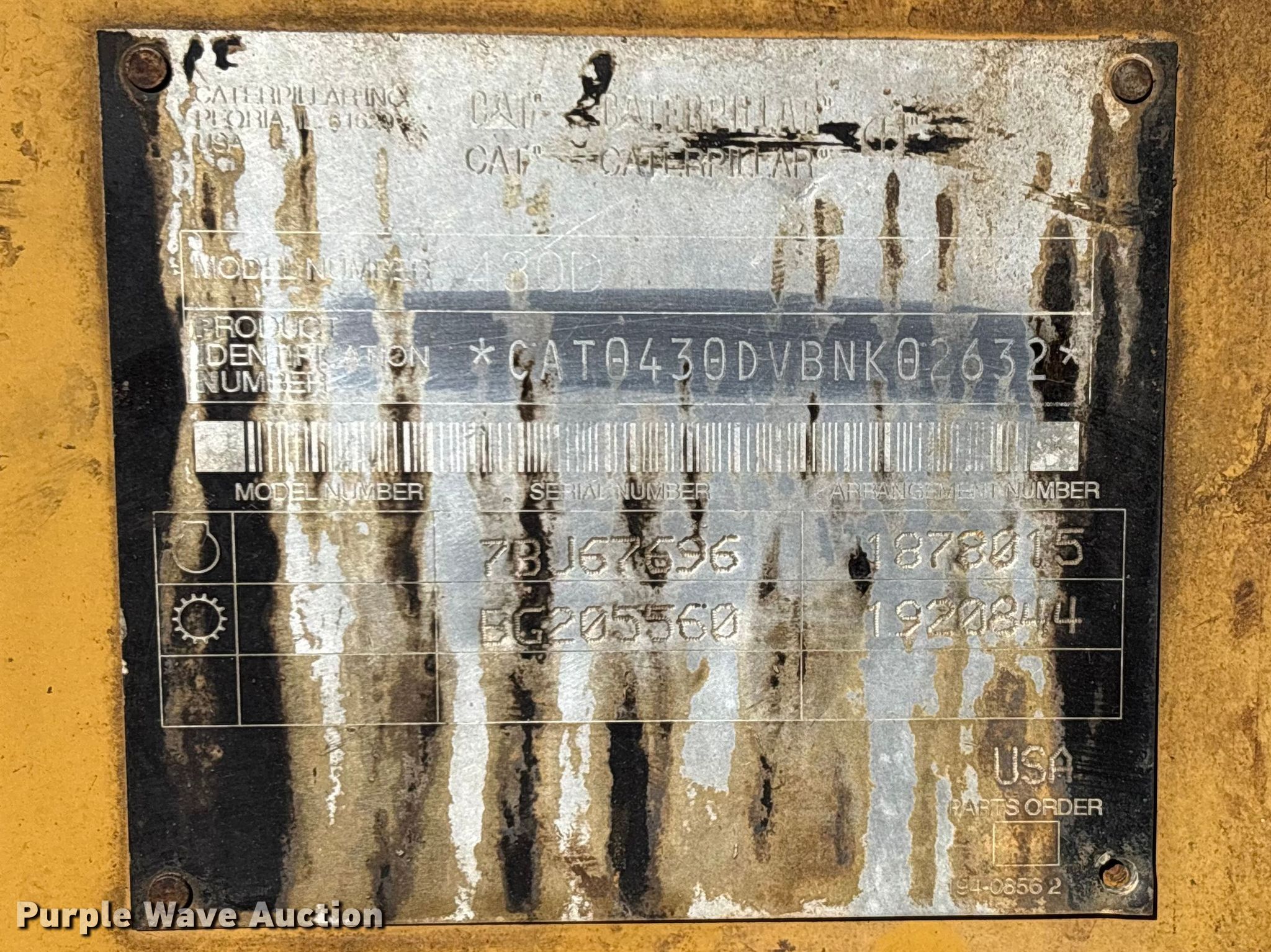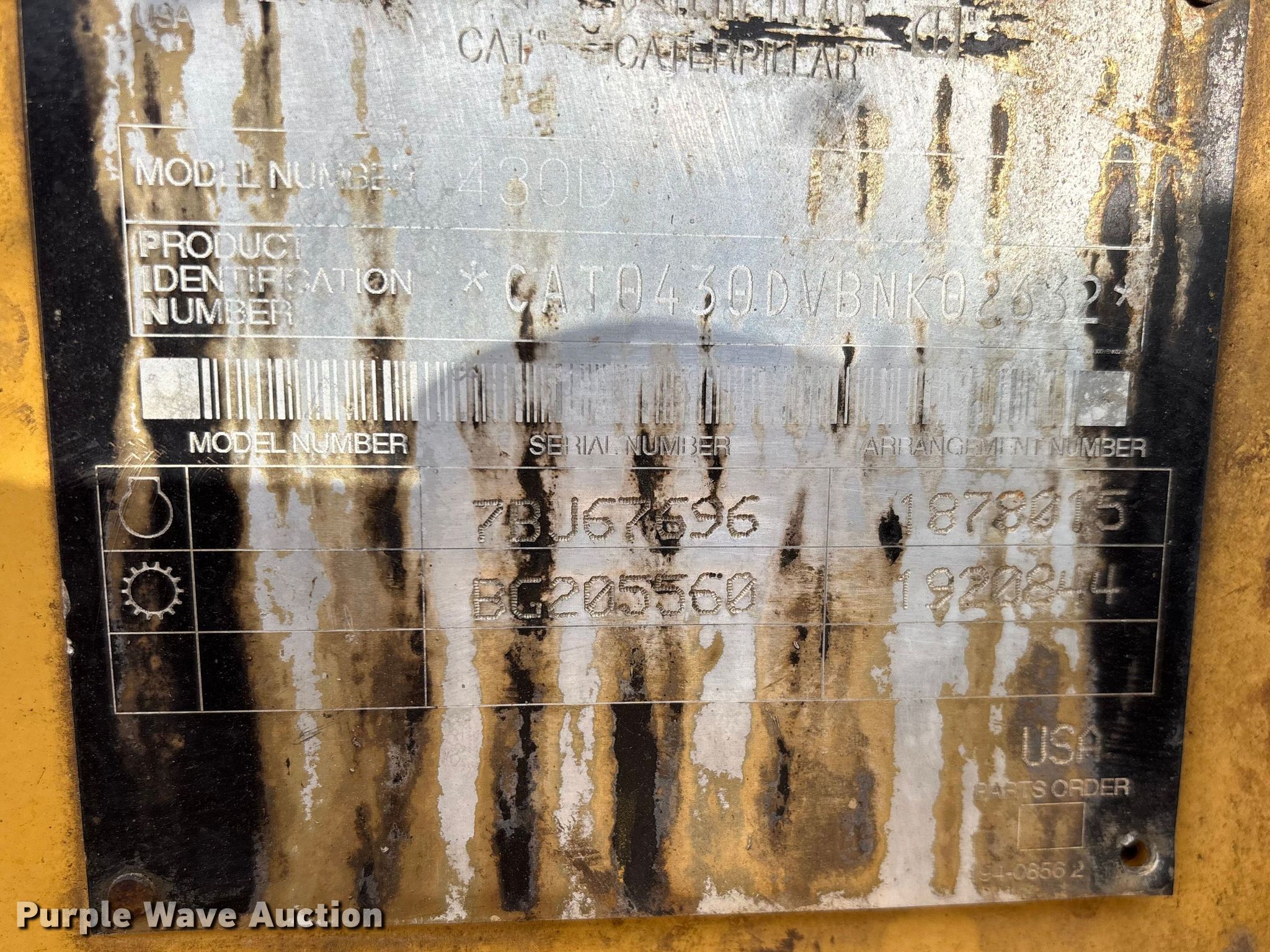 Purple Wave is selling a used Tractor Loader Backhoe in Missouri. This item is a 2002 Caterpillar 430D backhoe with the following: Hours: 6,352 on meter, Serial: CAT0430DVBNK02632