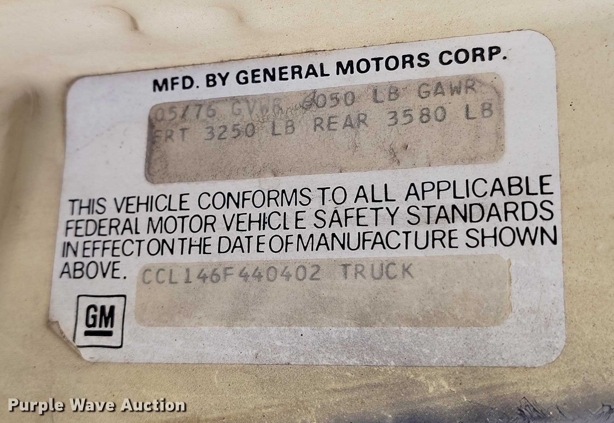 Purple Wave is selling a used 1/2 Ton Pickup or Van in Colorado. This item is a 1976 Chevrolet Custom Deluxe C10 pickup truck with the following: Miles: 58,720 on odometer, VIN: CCL146F440402