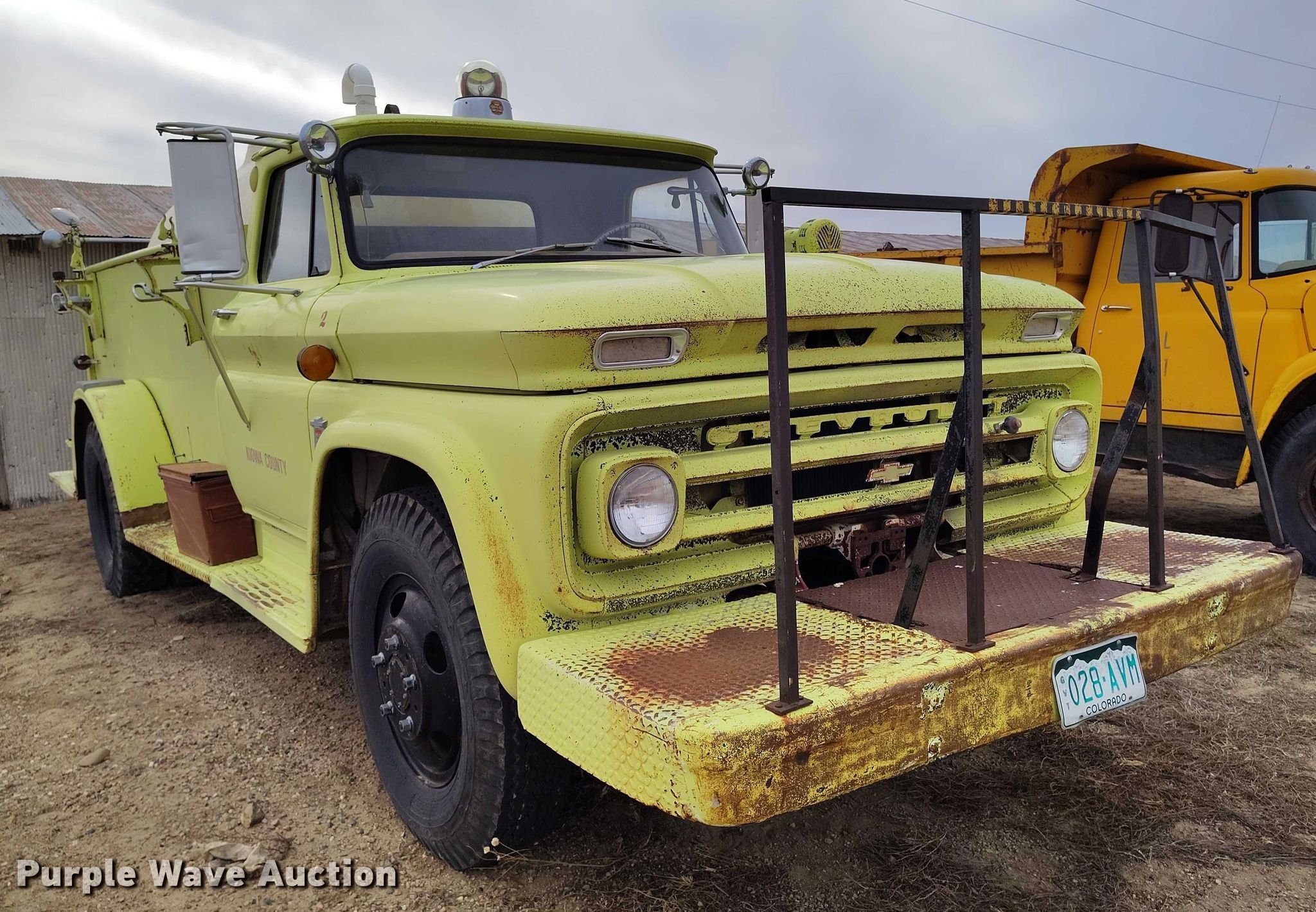 Purple Wave is selling a used Fire Truck or Emergency Vehicle in Colorado. This item is a 1964 Chevrolet C60 pumper fire truck with the following: Miles: 20,391 on odometer, VIN: 4C633S114486, Unit #: 2