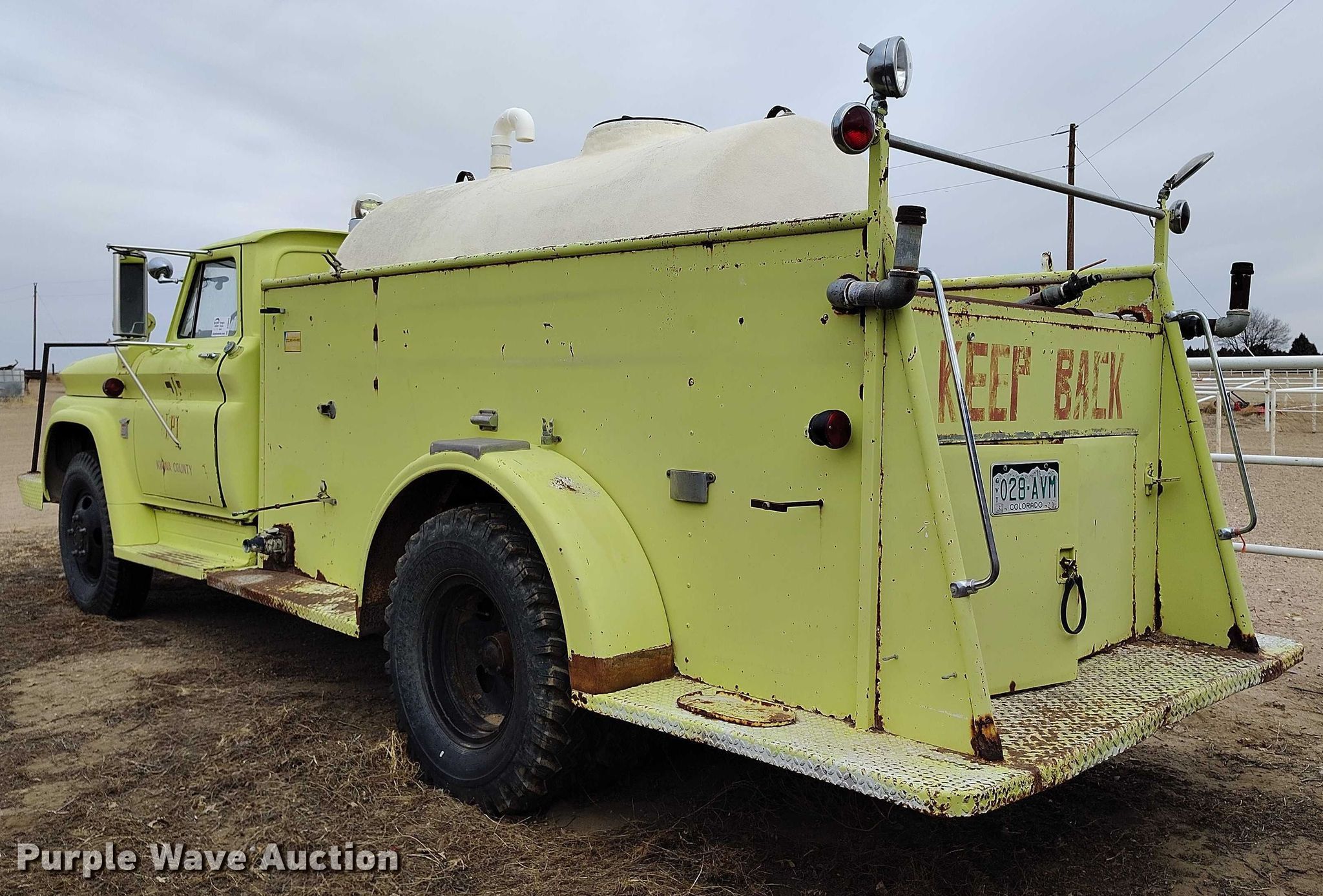 1964 Chevrolet C60 pumper fire truck for sale in Eads, Colorado. Item DT0908 will sell on March 17th, 2026.