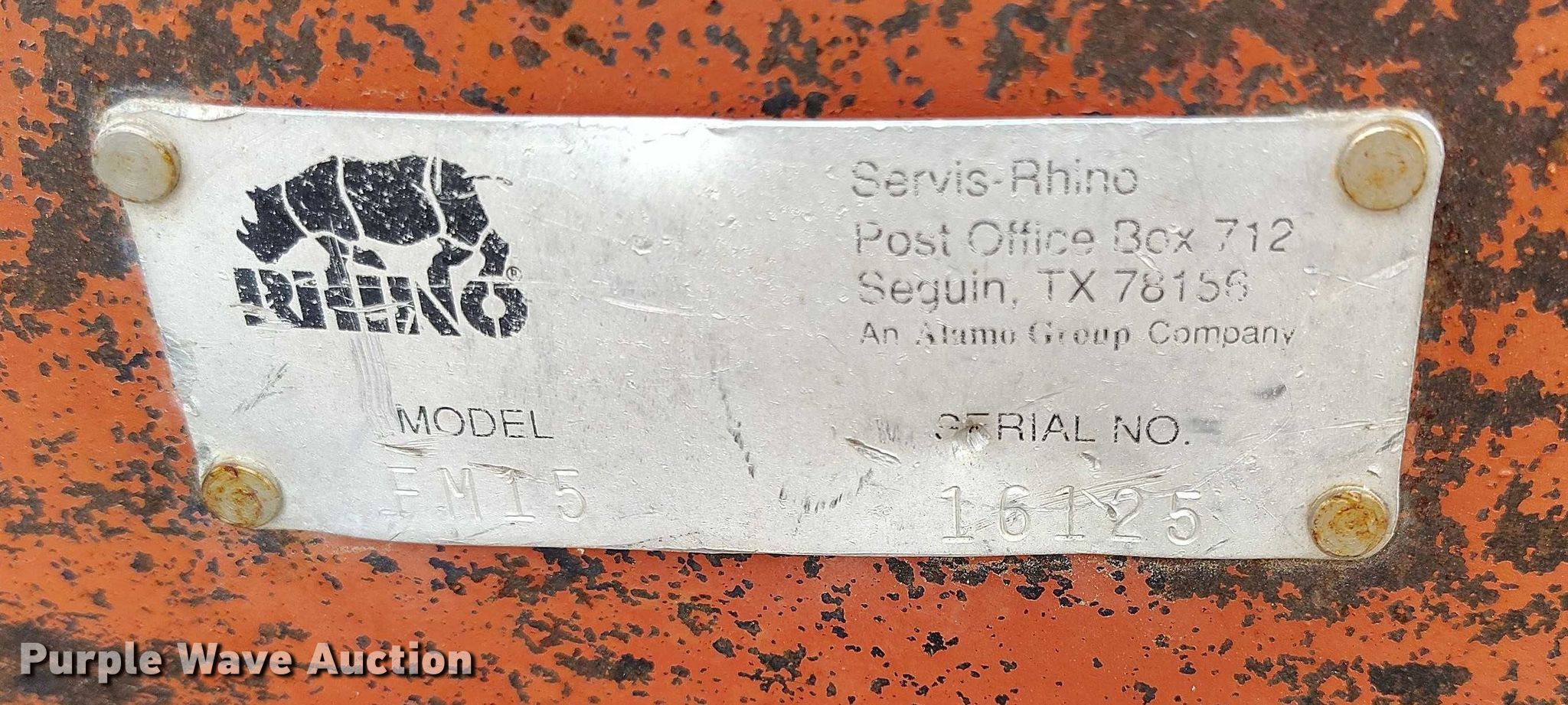 Purple Wave is selling a used Mower, Cutter, Shredder in Colorado. This item is a Rhino FM15 batwing rotary mower with the following: Serial: 16125