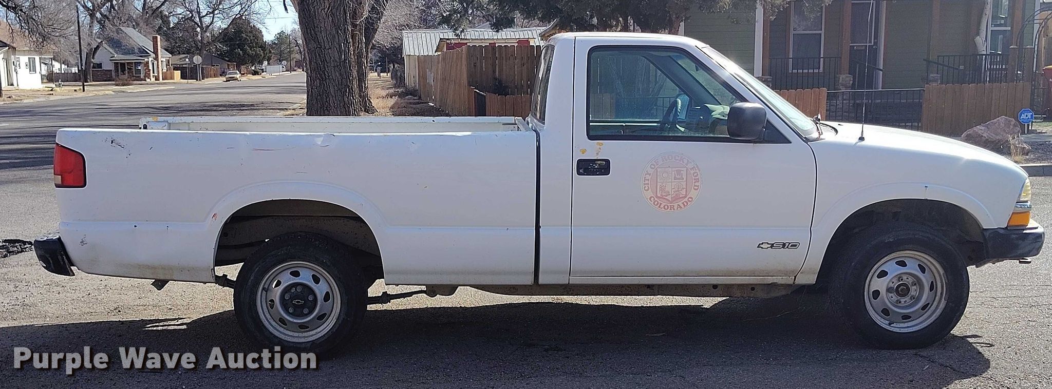 1999 Chevrolet S-10 pickup truck. Miles: 100,150 on odometer, VIN: 1GCDT14X1XK175085. Engine Displacement: 4.3L, Cylinders: 6, Fuel type: Gas. Transmission Automatic, Four wheel drive. Interior AC, Heat. Tires Size: 205/70R15. Notes Dash warning indicator: Airbag, Windshield chipped or cracked, Jump start required during on-site data collection, Non-operational AC, Tailgate removed but included. Colorado title. Title distribution may be delayed up to 14 days from verification of funds. City of Rocky Ford. Rocky Ford, CO 81067