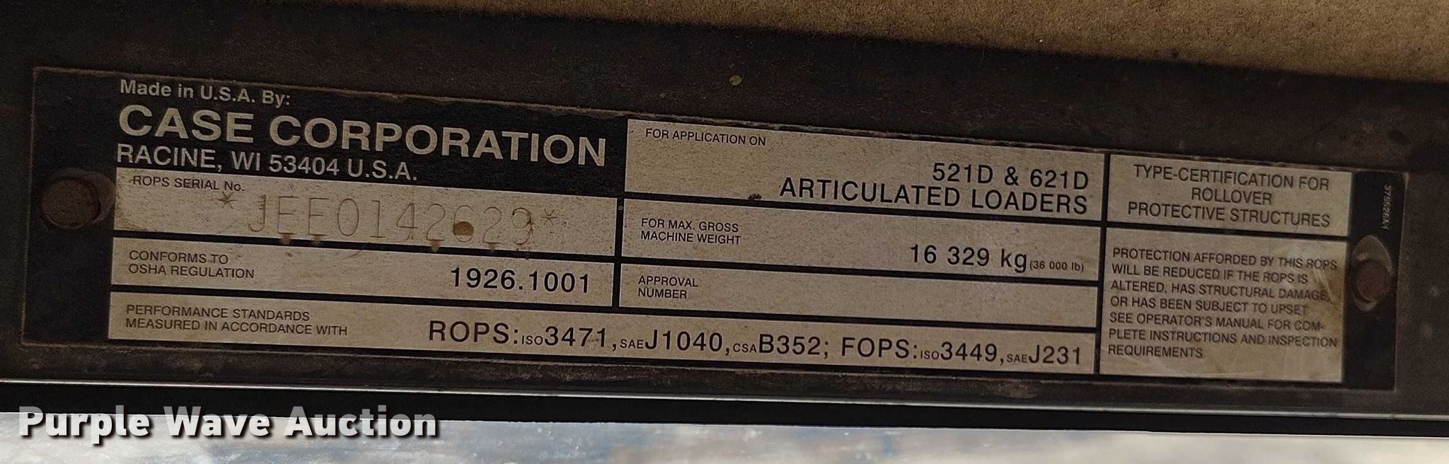 Purple Wave is selling a used Wheel Loader in Colorado. This item is a 2002 Case 521D wheel loader with the following: Hours: Unknown, Serial: JEE0134133