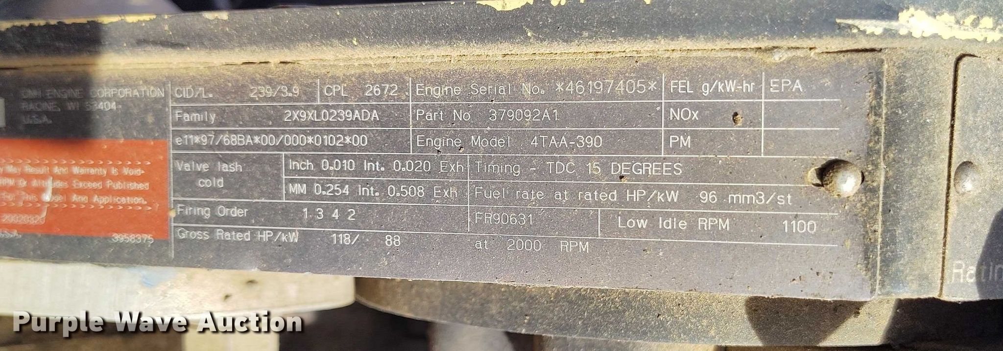 2002 Case 521D wheel loader. Hours: Unknown, Serial: JEE0134133. Engine Case 4TAA-390, Cylinders: 4, Fuel type: Diesel. Transmission Powershift, 4F - 4R. Operators station Enclosed cab, AC, Heat, Bucket controls: Joystick. Features Bucket Case, Capacity: NaN cu.yd., Width: 96", Cutting edge: Bolt-on. Tires Size: 17.5-25. Notes Engine disassembled, parts removed , Non-operational transmission , Tires flat, Unknown operating condition. City of Rocky Ford. Rocky Ford, CO 81067