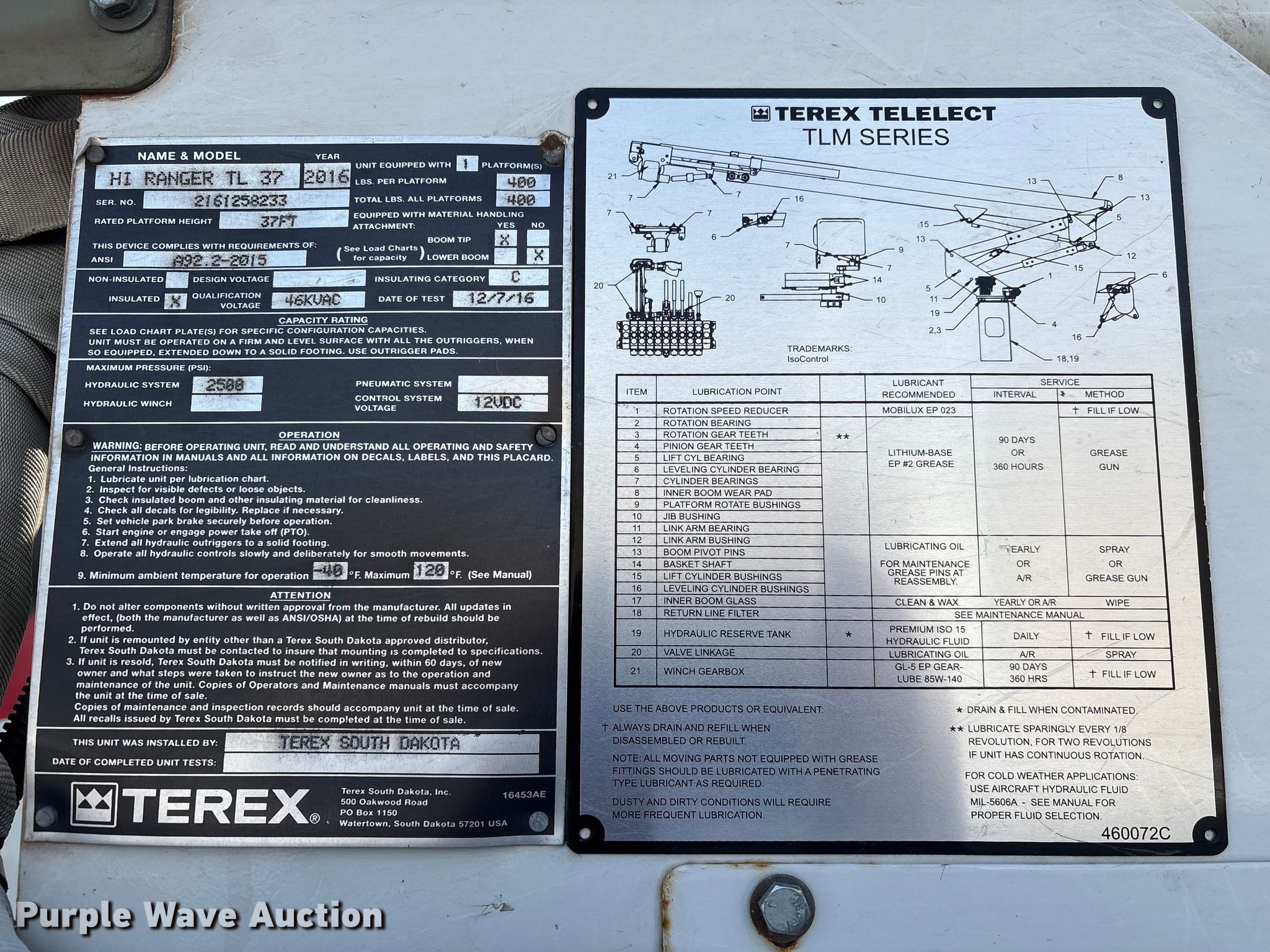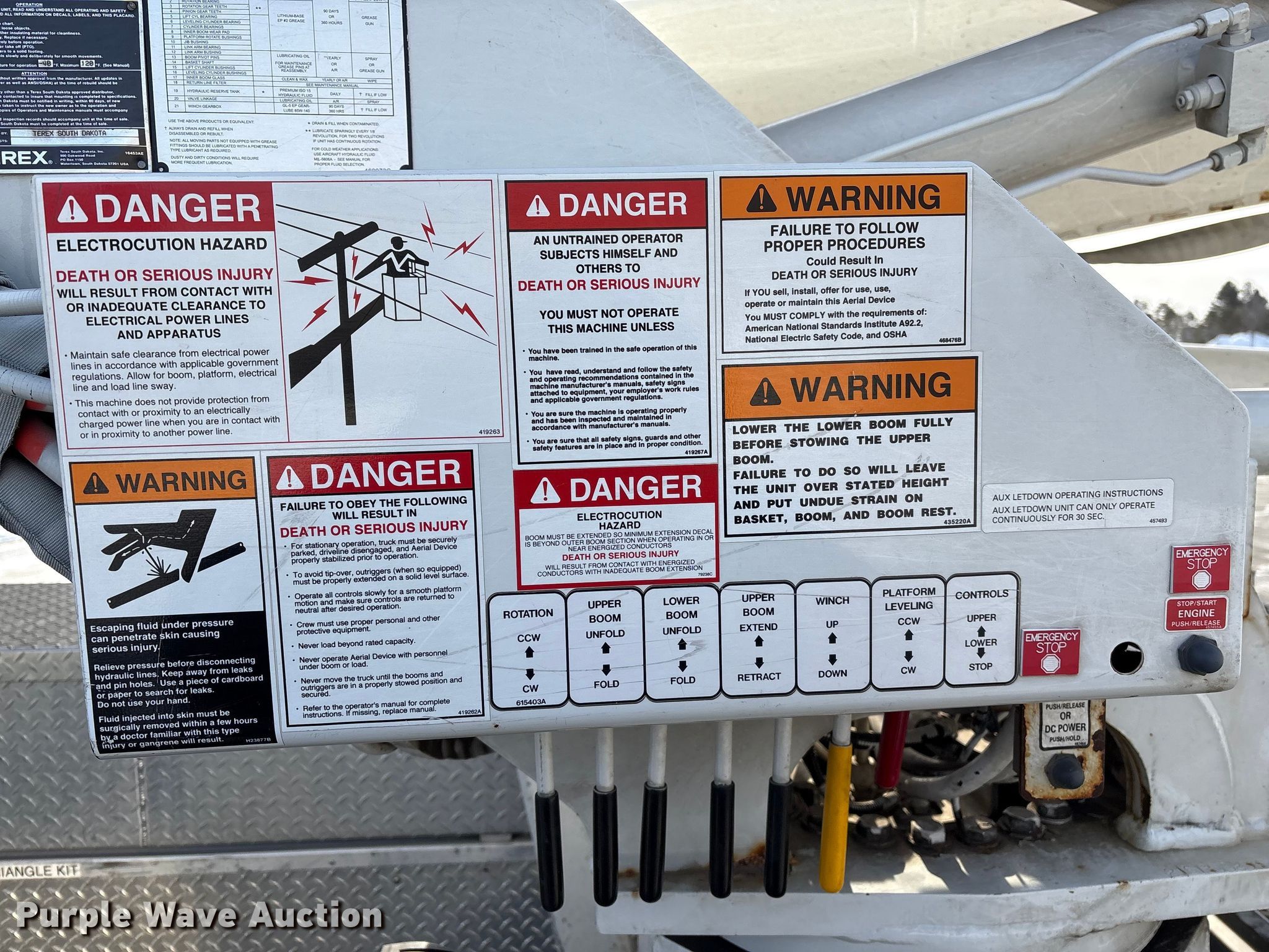 2017 RAM 5500HD bucket truck. Miles: 281,644 on odometer, VIN: 3C7WRNBLXHG572174. Engine Cummins Inc., Displacement: 6.7L, Cylinders: 6, Fuel type: Diesel. Transmission Automatic. Chassis Four wheel drive, Axles: Single, Suspension: Spring, Brakes: Hydraulic, PTO, GVWR: 19,500 lbs. Interior AC, Heat, Heated mirrors, Power windows, Power locks, Cruise control, Auxiliary controls, Brake controller. Features Bed Utility bed, BrandFX, Length: 14', Width: 7' 11", Boom 2016 Terex HI RANGER TL 37, Serial: 2161258233, Mast height: 37', Maximum lift capacity: 400 lbs, Boom type: Articulating, Insulated, Telescopic, Man basket, Boom controls Lower, Basket, Material handler. Tires Size: 225/70R19.5. Notes Hood shock issues, will not stay up. Minnesota title. Title distribution may be delayed up to 14 days from verification of funds. Beltrami Electric Cooperative, Inc.. Bemidji, MN 56601