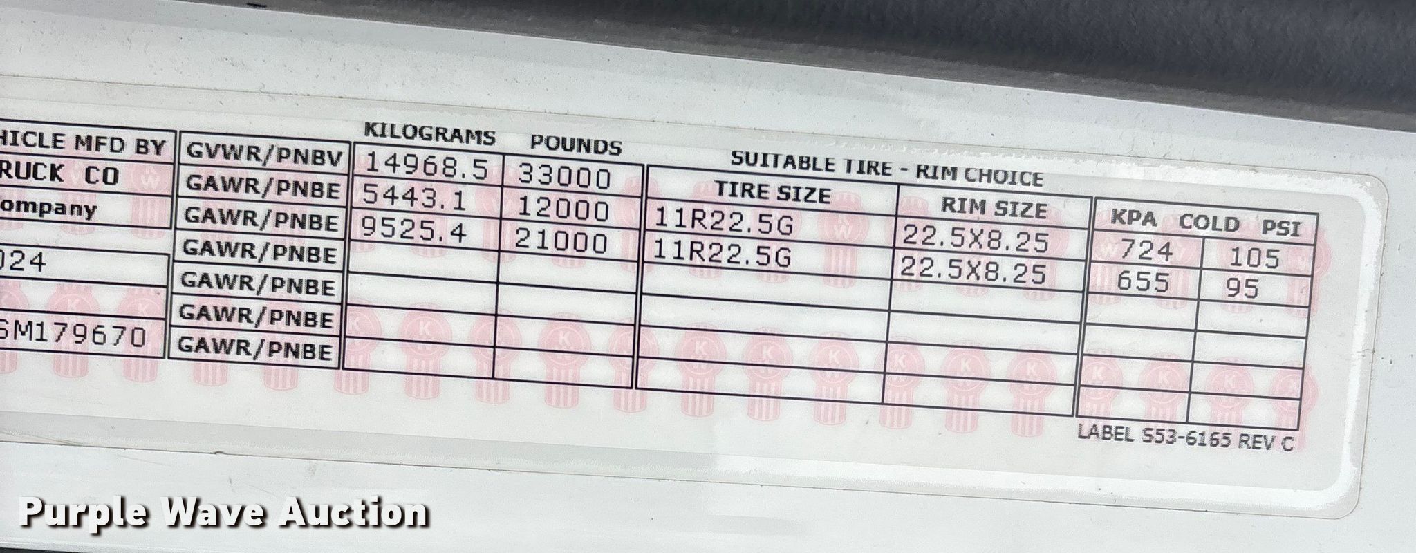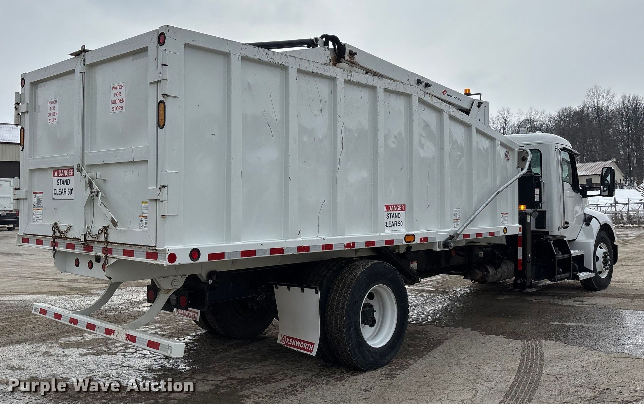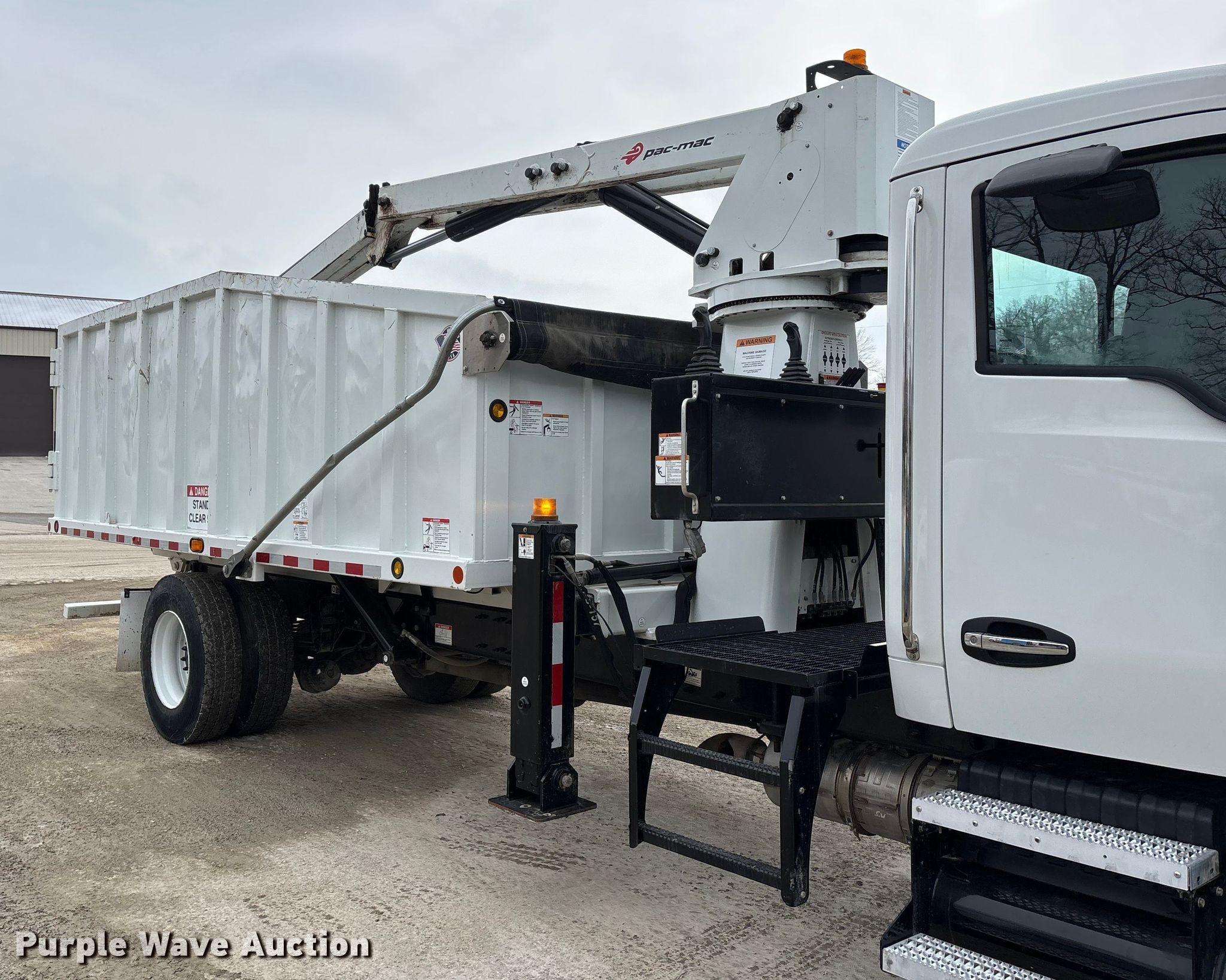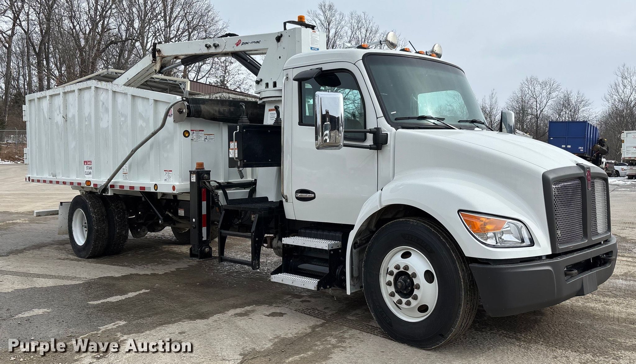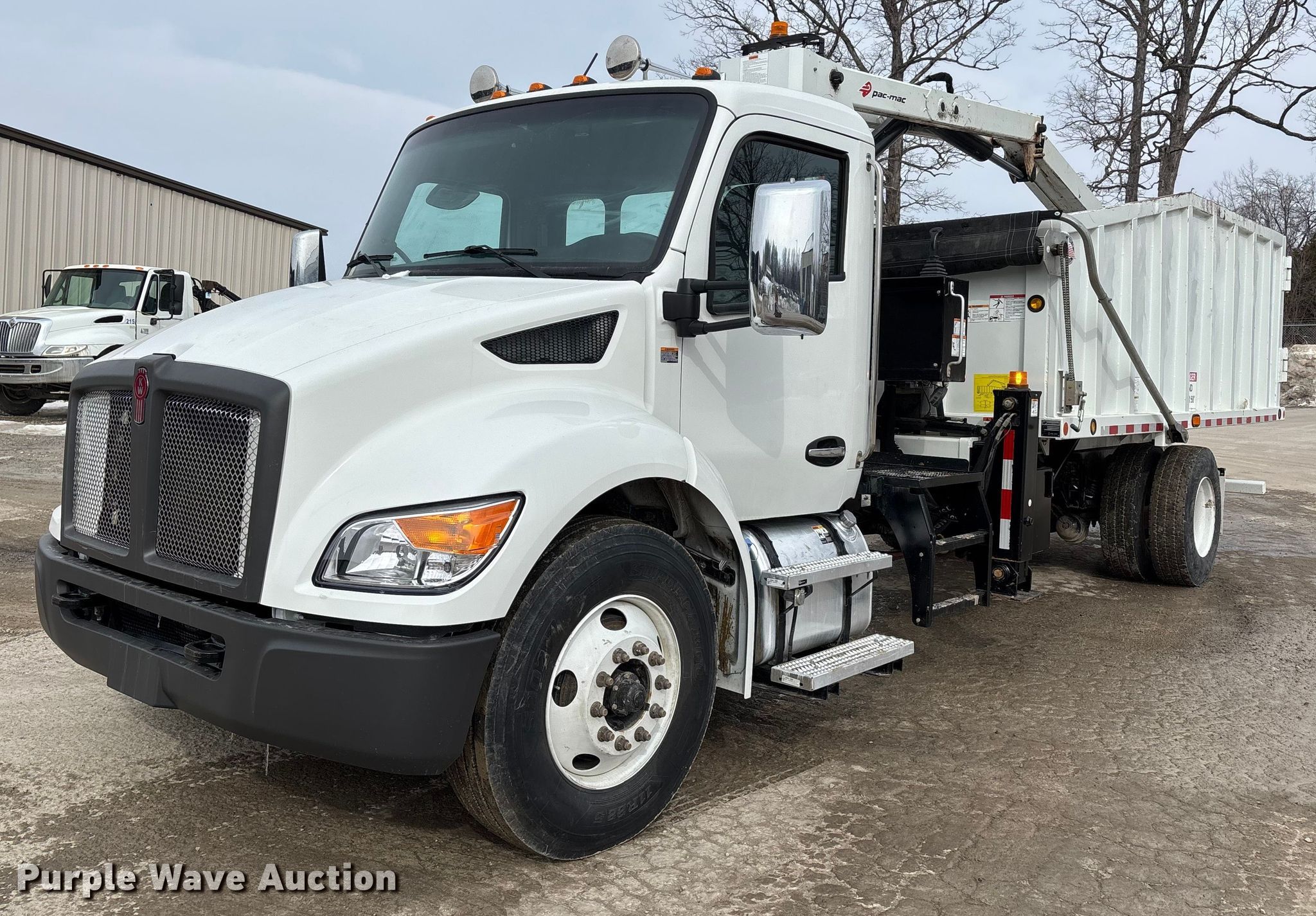 2025 Kenworth T600 grapple truck. Miles: 13,643 on odometer, Miles or hours may vary, unit still in use, VIN: 2NK4HM7X4SM179670. Engine Paccar B6.7, Serial: 99326149, Displacement: 6.7L, Cylinders: 6, Fuel type: Diesel, Engine brake. Transmission Allison, Automatic. Chassis Axles: Single, Suspension: Spring, Brakes: Air, PTO, GVWR: 33,000 lbs FAWR: 12,000 lbs, RAWR: 21,000 lbs. Interior AC, Heat, Heated mirrors, Power windows, Power locks, Cruise control. Features Bed Dump bed, Pac-Mac KB20-HJ, Serial: E0KB02003243307, Length: 18', Width: 8' 2", Crane Boom Telescopic, Knuckle, Maximum boom length: 20' Maximum lift capacity: 3,300 lbs, Boom controls Ground.. Tires Size: 11R22.5. Notes Dash warning indicator: Check engine, DEF. Kentucky title. Title distribution may be delayed up to 30 days from verification of funds. Hopkinsville Solid Waste Enterprise. Hopkinsville, KY 42240
