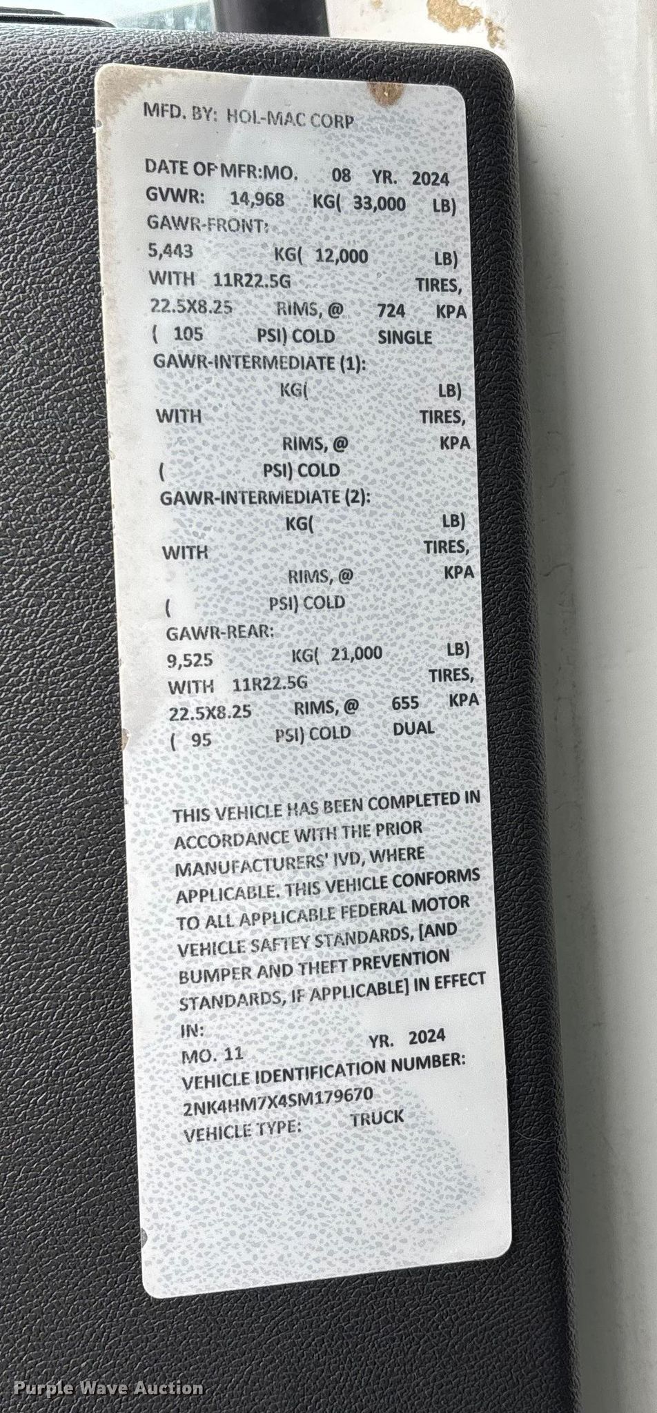 - VIN: 2NK4HM7X4SM179670