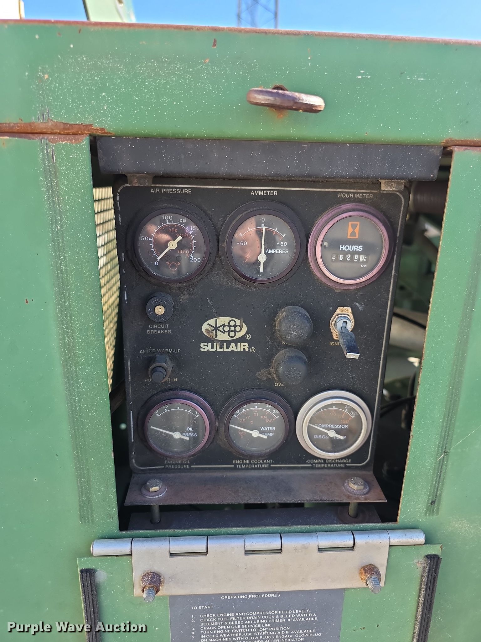 Purple Wave is selling a used Air Compressor in Kansas. This item is a 1991 Sullair 185Q air compressor with the following: Hours: 2,528 on meter, VIN: 004107456, Unit #: 919