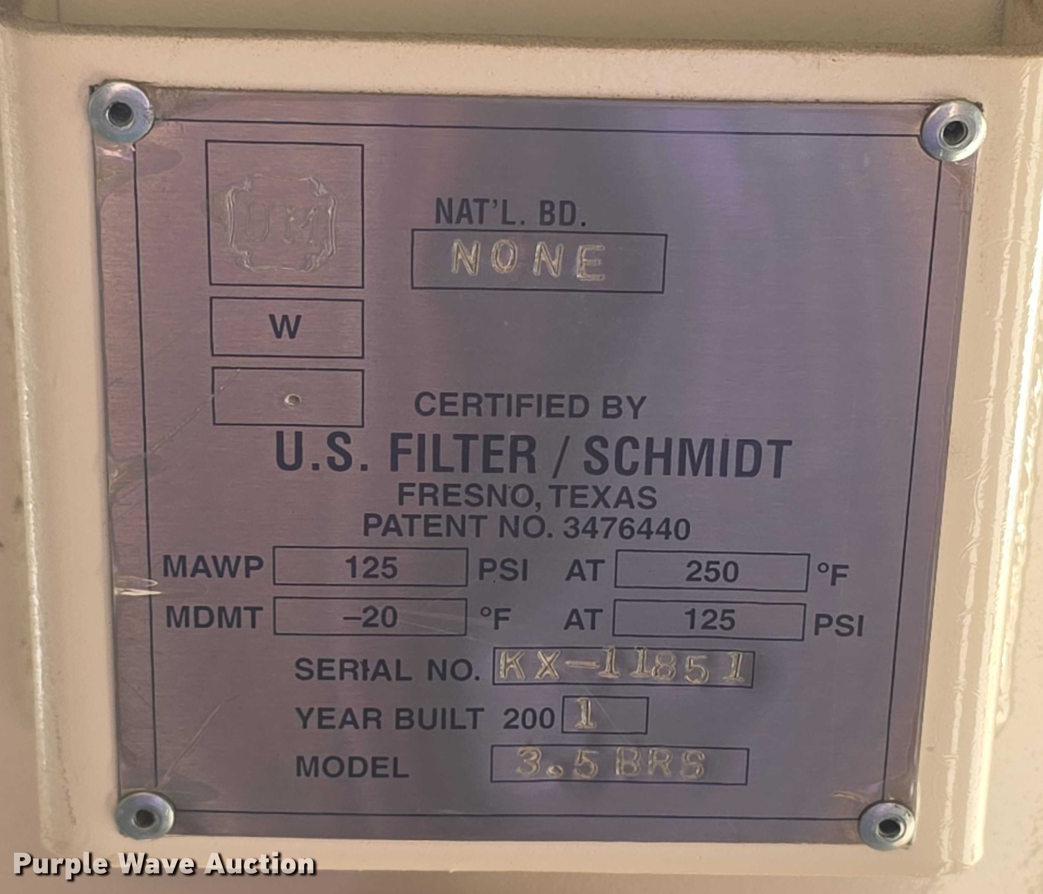 Purple Wave is selling a used Machine Shop Tools and Equip. in Kansas. This item is a 2001 Schmidt 3.5BRS blast recovery system with the following: Serial: KX11851