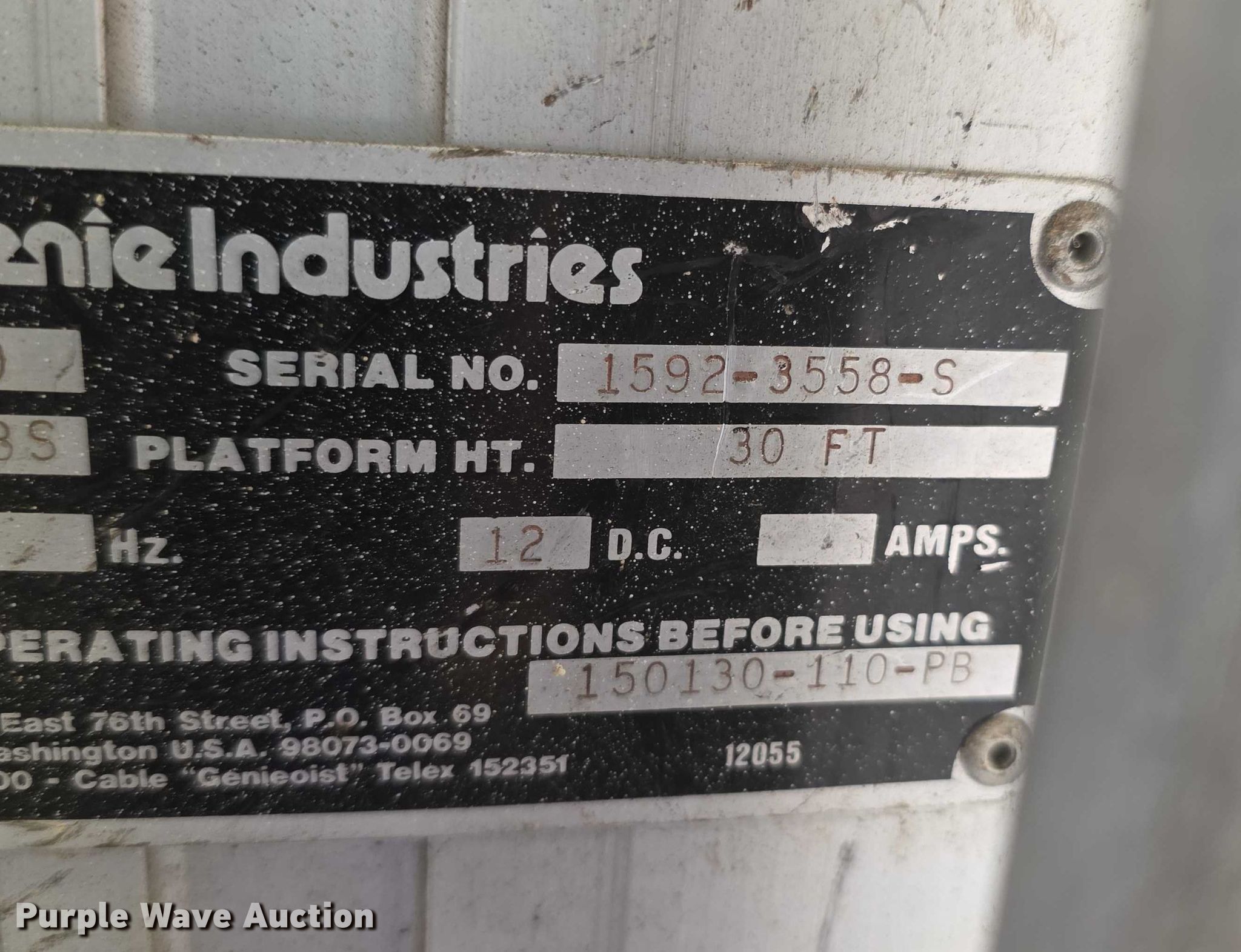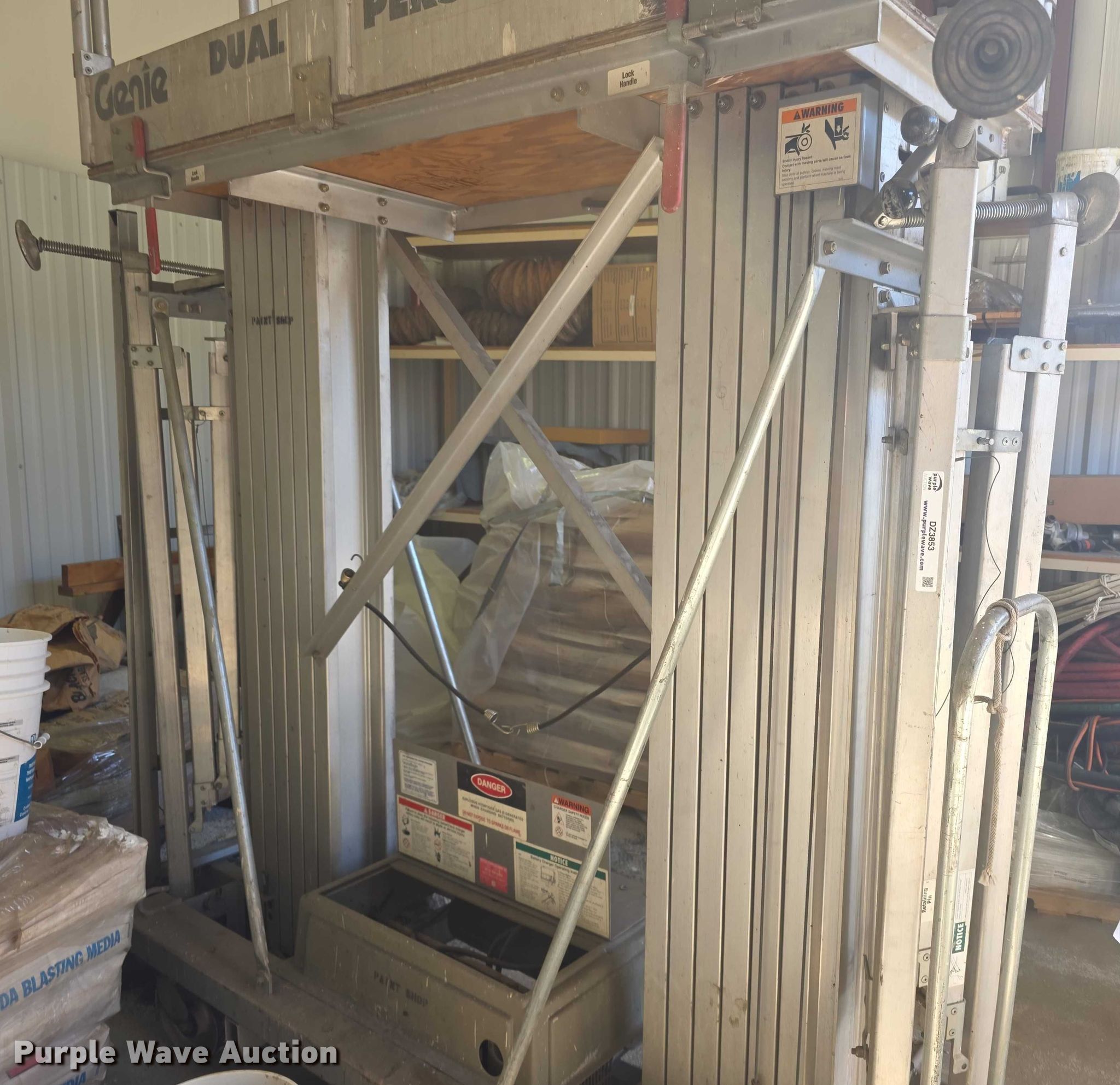 Purple Wave is selling a used Scissor or Vertical Lift in Kansas. This item is a Genie Dual DPL30 vertical lift with the following: Serial: 15923558S
