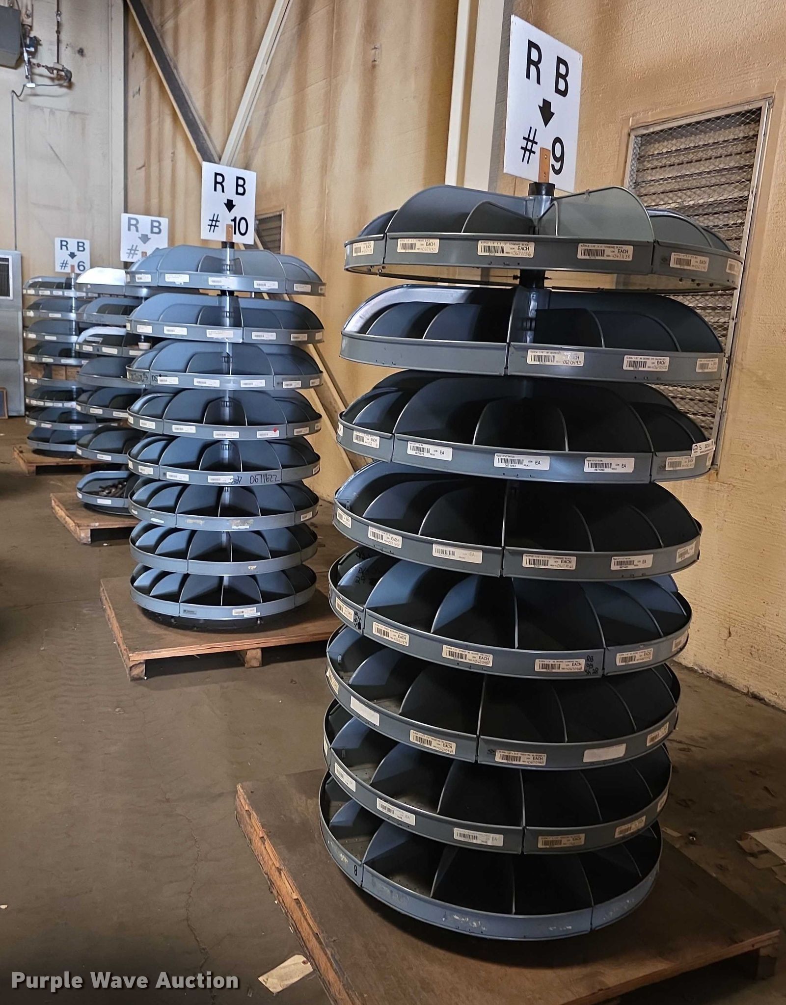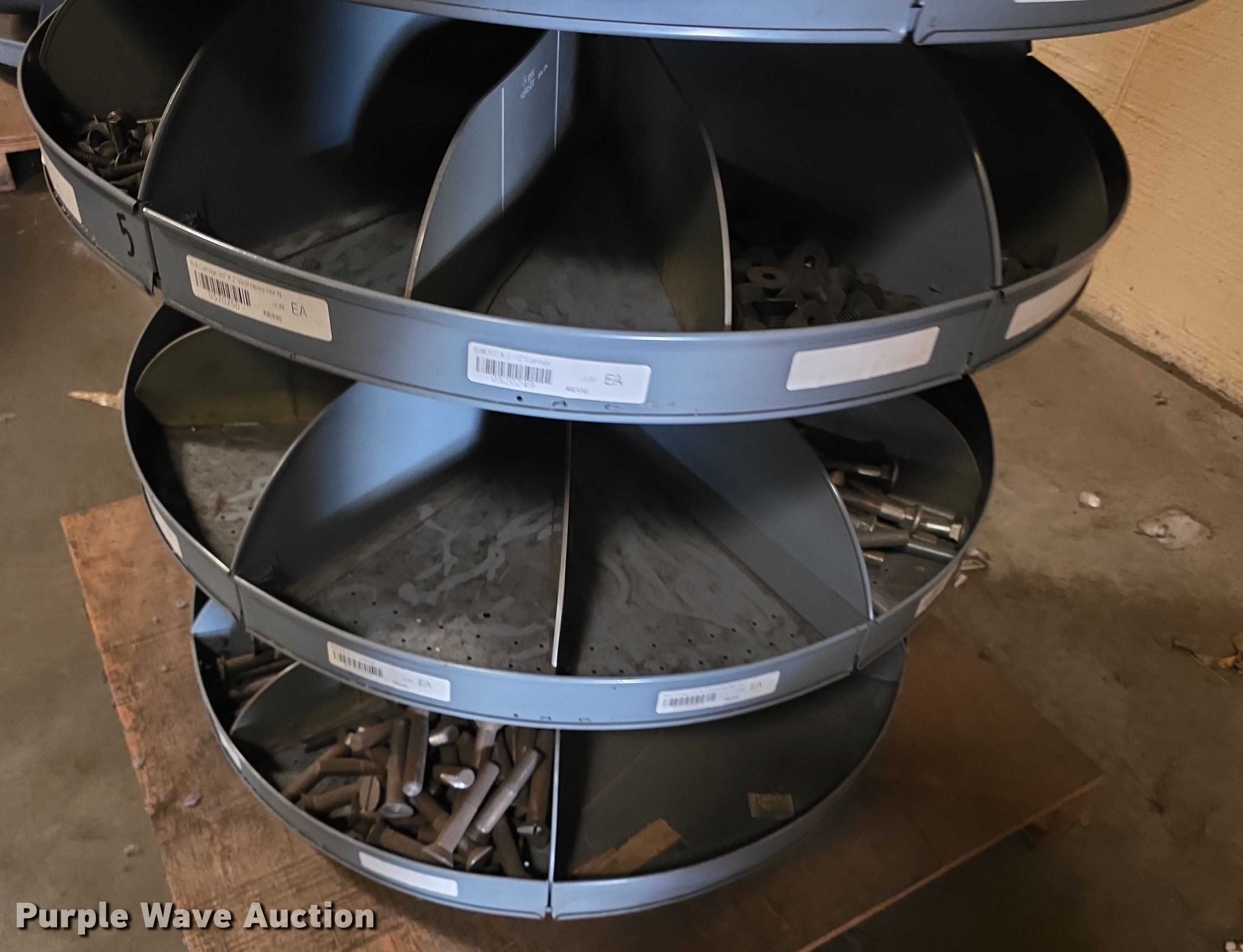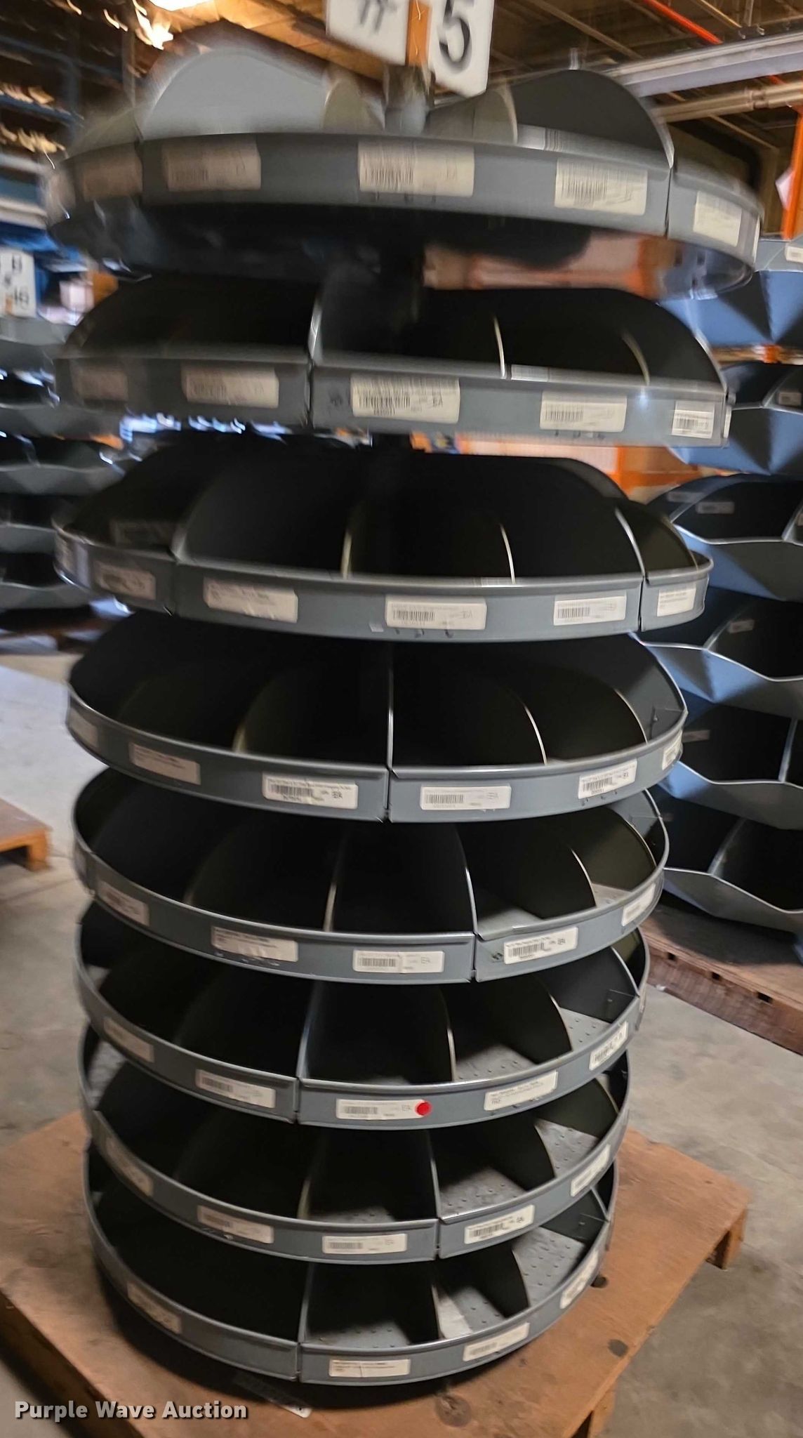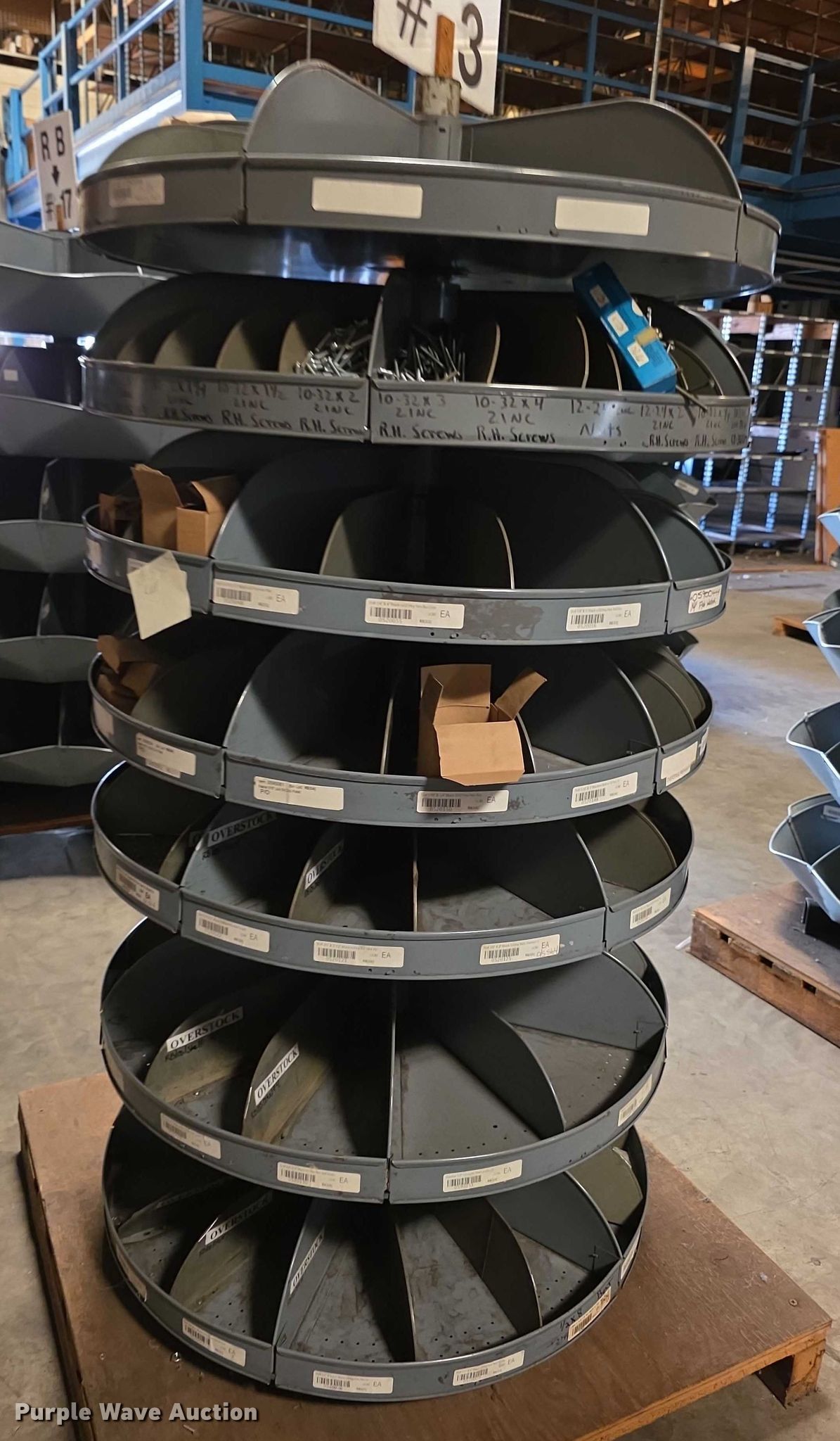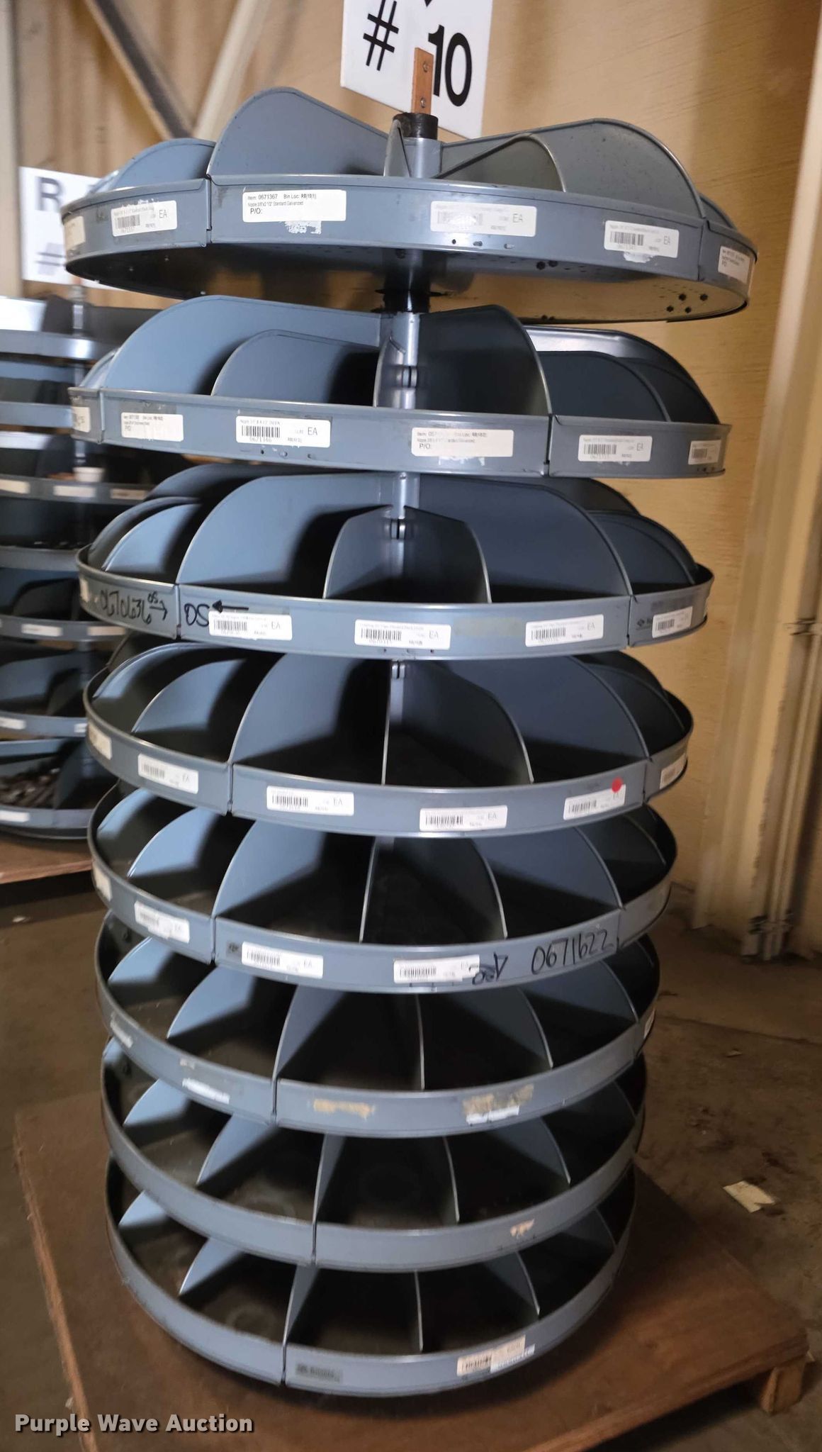 Purple Wave is selling a used Tools in Kansas. This item is a (11) hardware storage bins with the following: Height: 64", Diameter: 33"