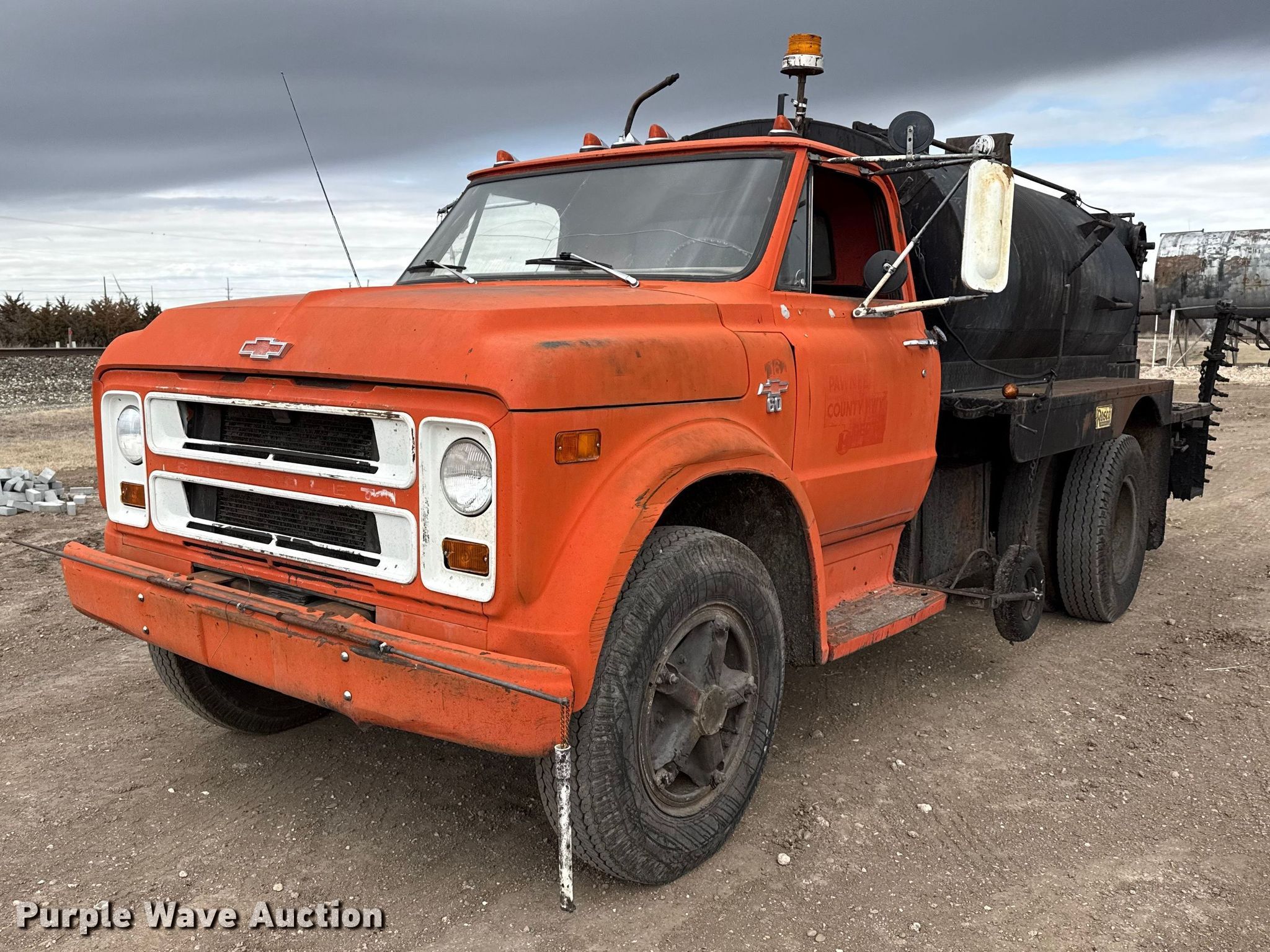 Purple Wave is selling a used Oil Distributor Truck in Kansas. This item is a 1968 Chevrolet 60 oil distributor truck with the following: Miles: 52,530 on odometer, VIN: CE638J158357