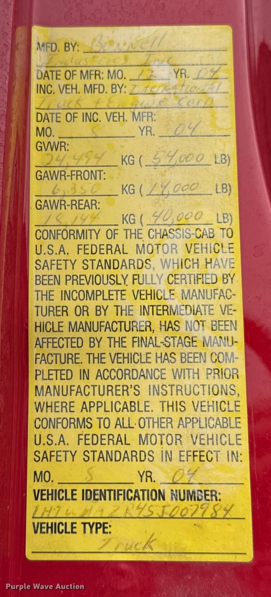 - VIN: 1HTWHAZR45J007984