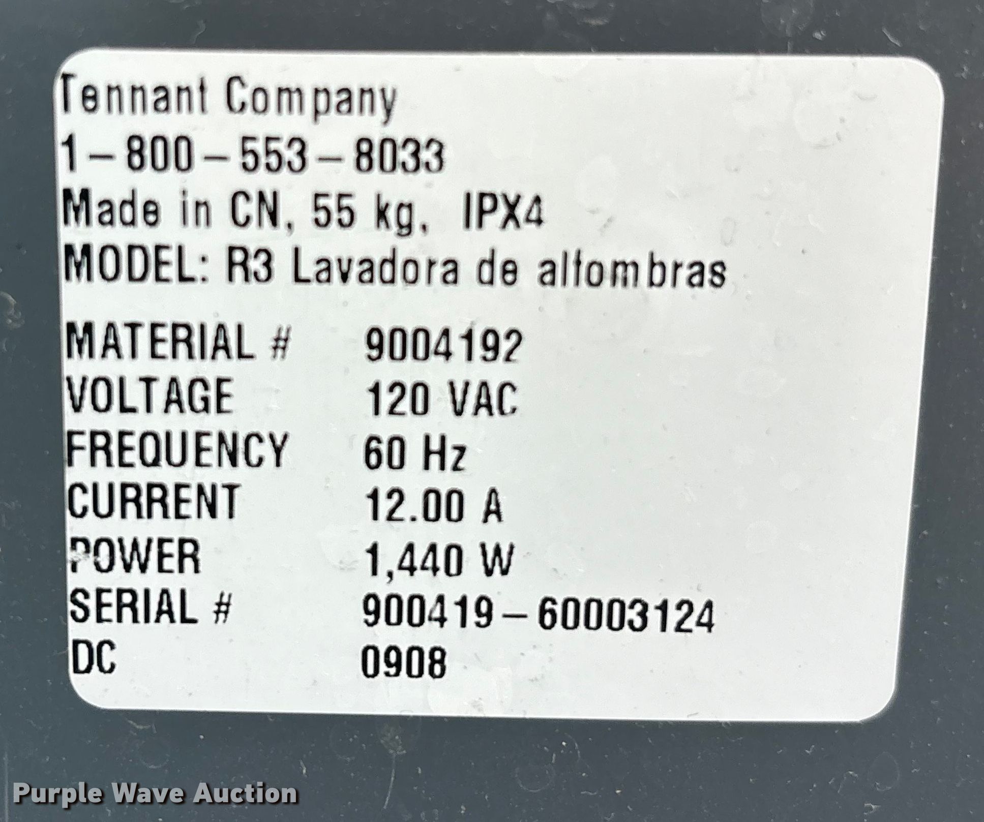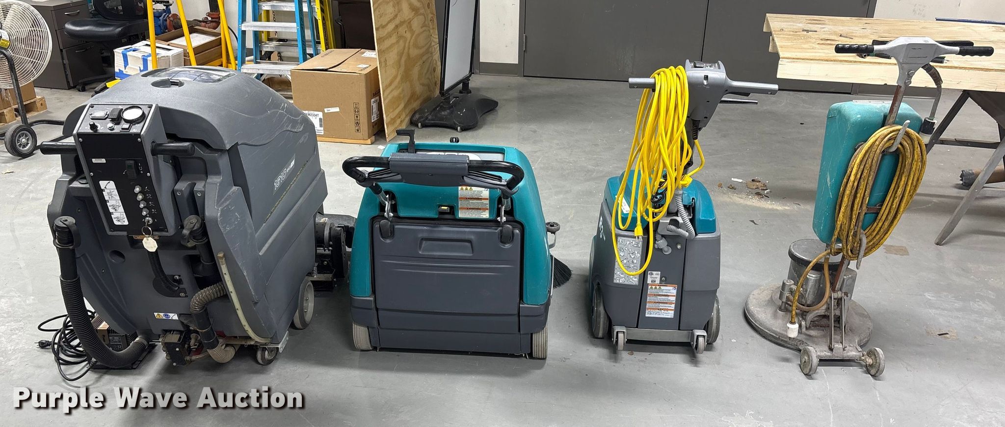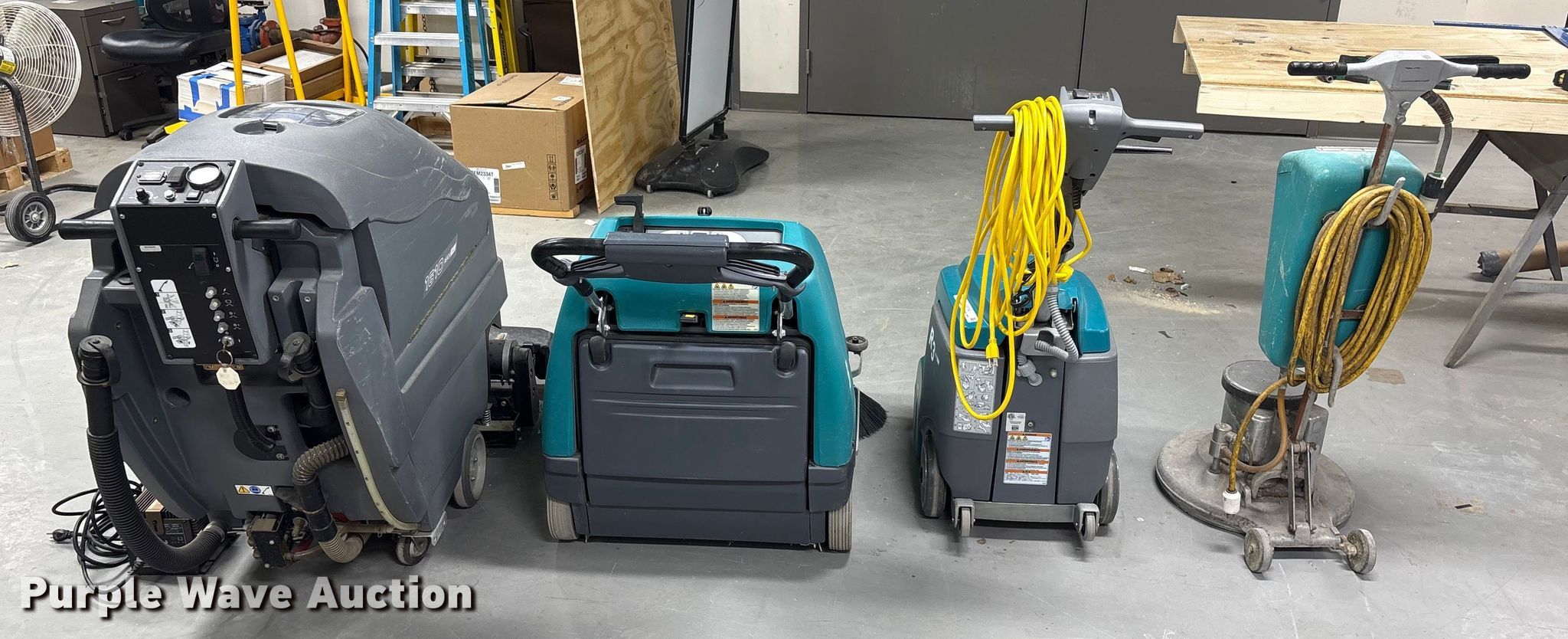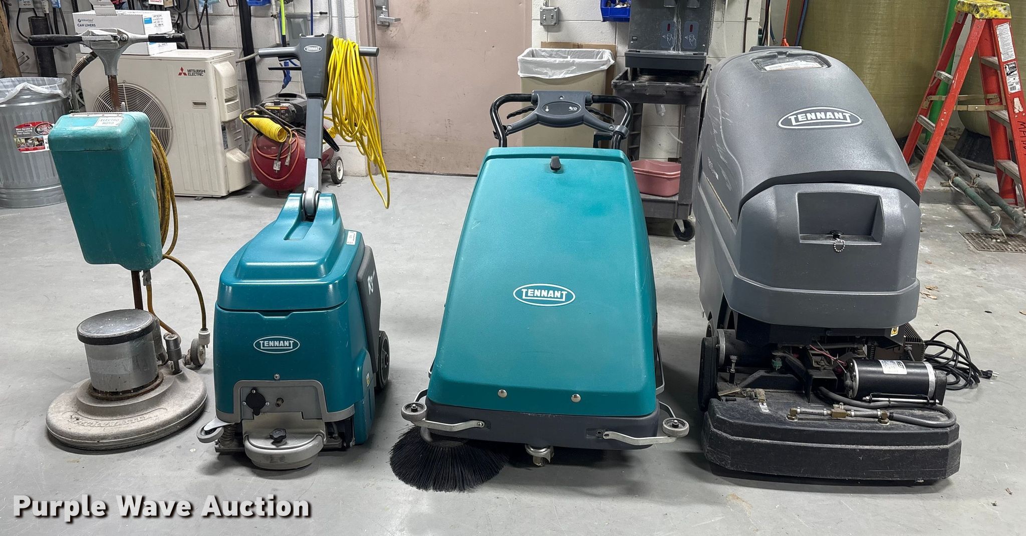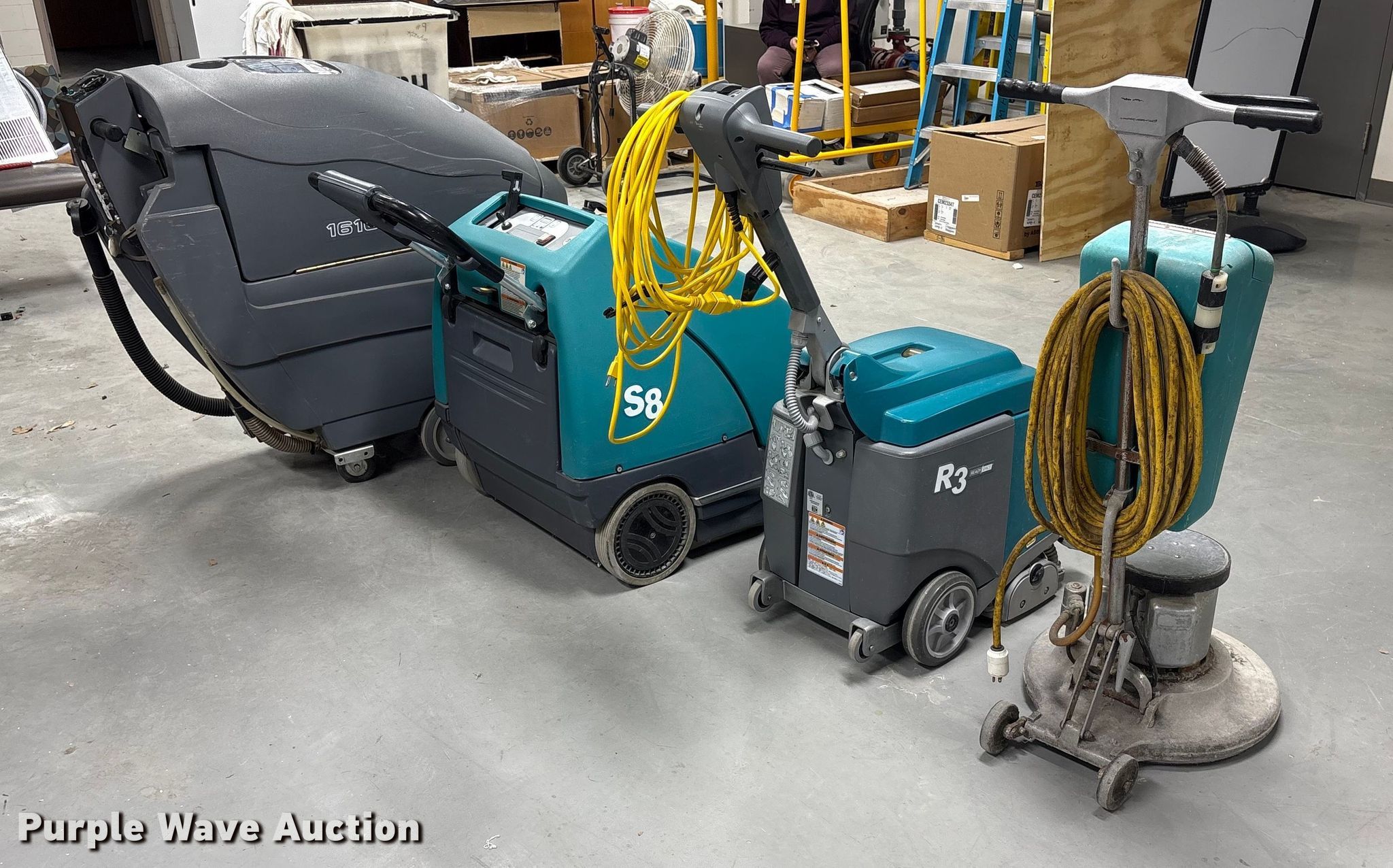 Purple Wave is selling a used All Other Household Items in Iowa. This item is a Floor cleaning equipment with the following: Tennant 1610 carpet extractor, Serial: 900141-10348610, Signet Systems 24V industrial battery charger included, 2010 Tennant S8 floor sweeper, Serial # 8000152860, SPE battery charger included, Tennant R3 carpet extractor, Serial: 900419- 60003124, ServiceMaster Electro Roto floor buffer, Unknown operating condition