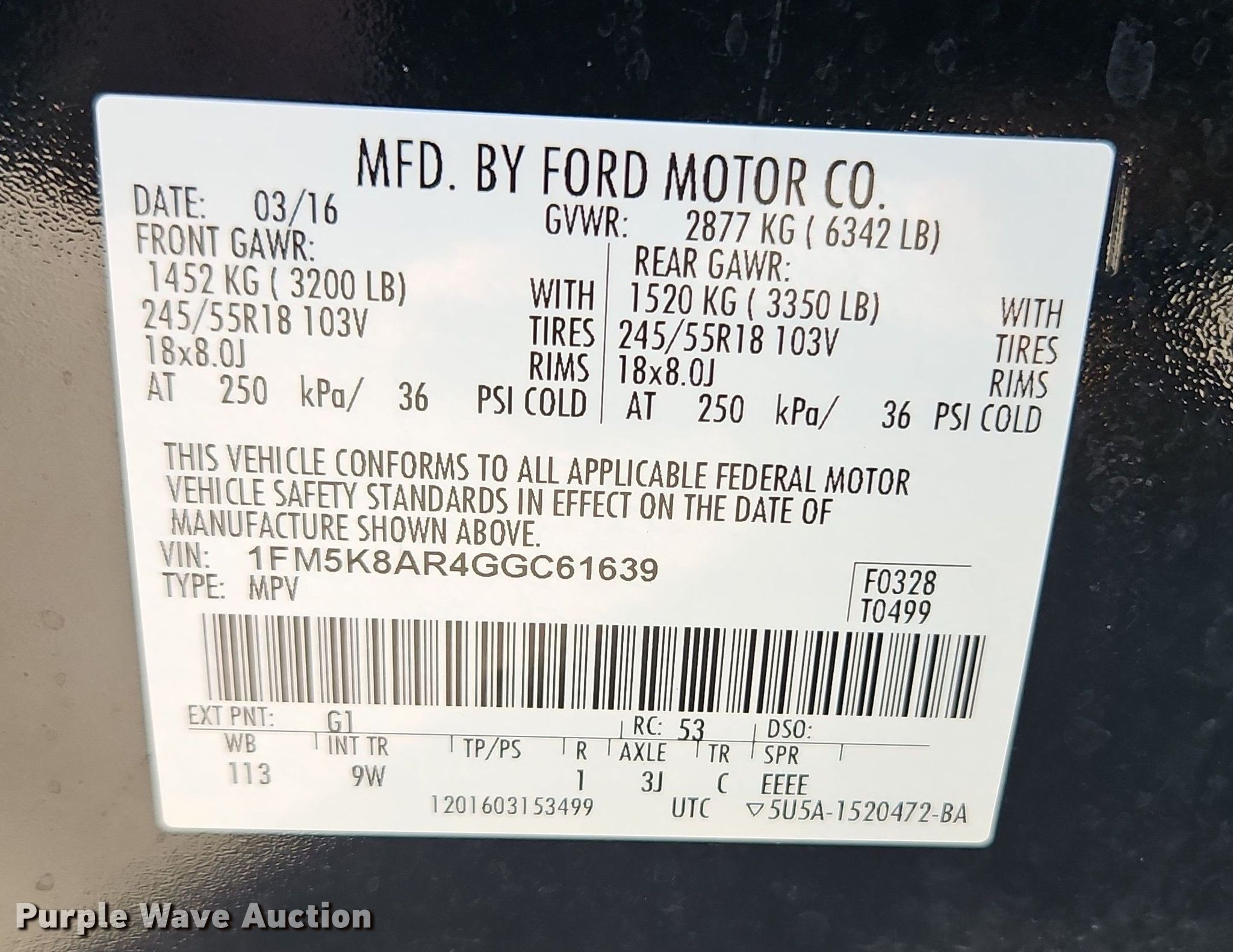 - VIN: 1FM5K8AR4GGC61639