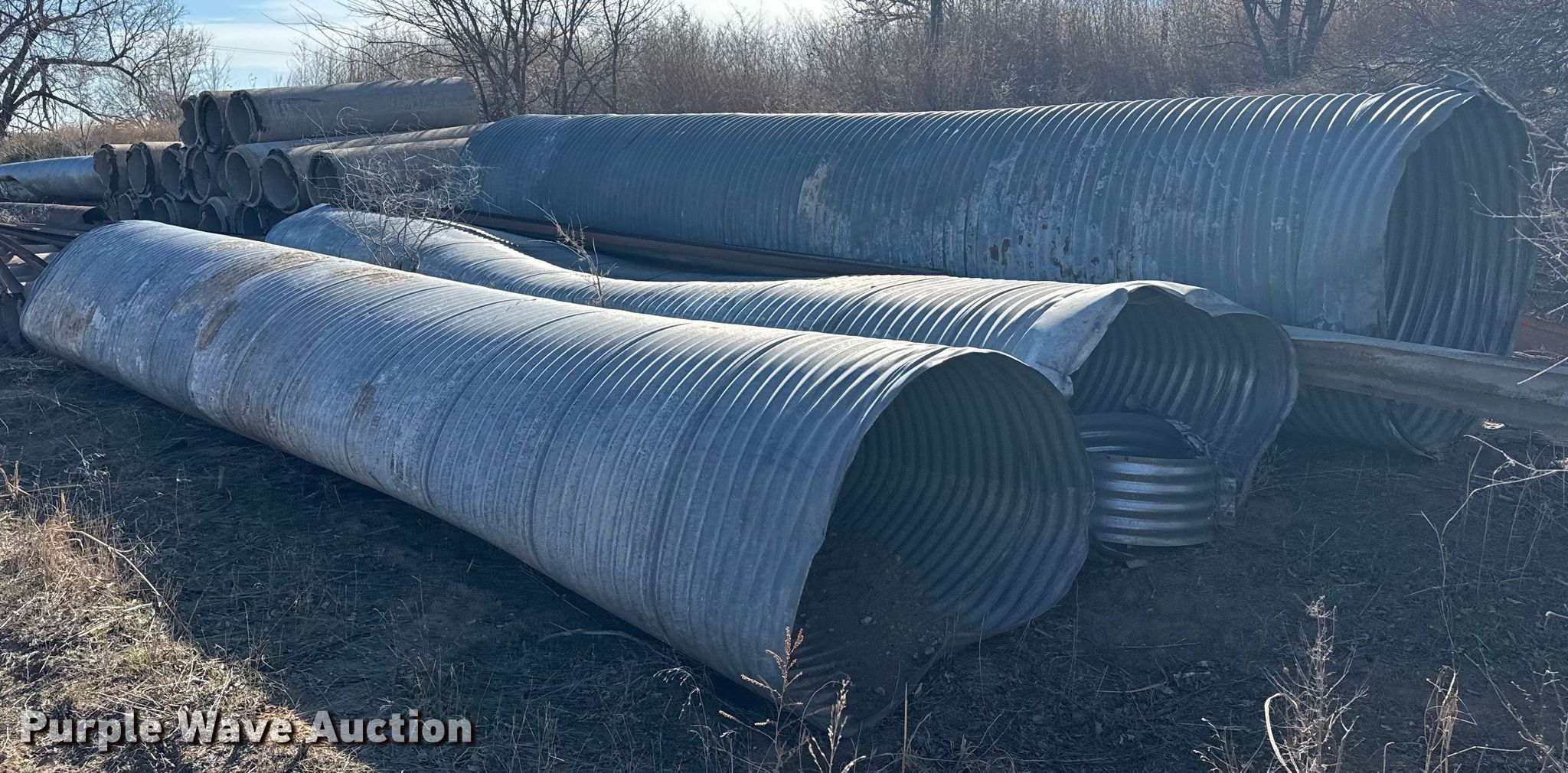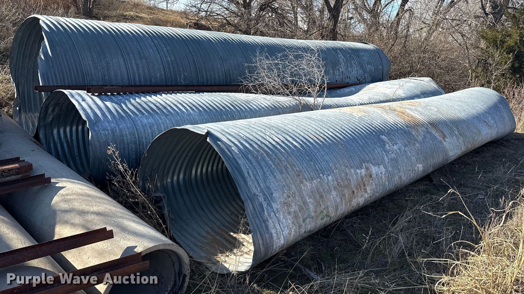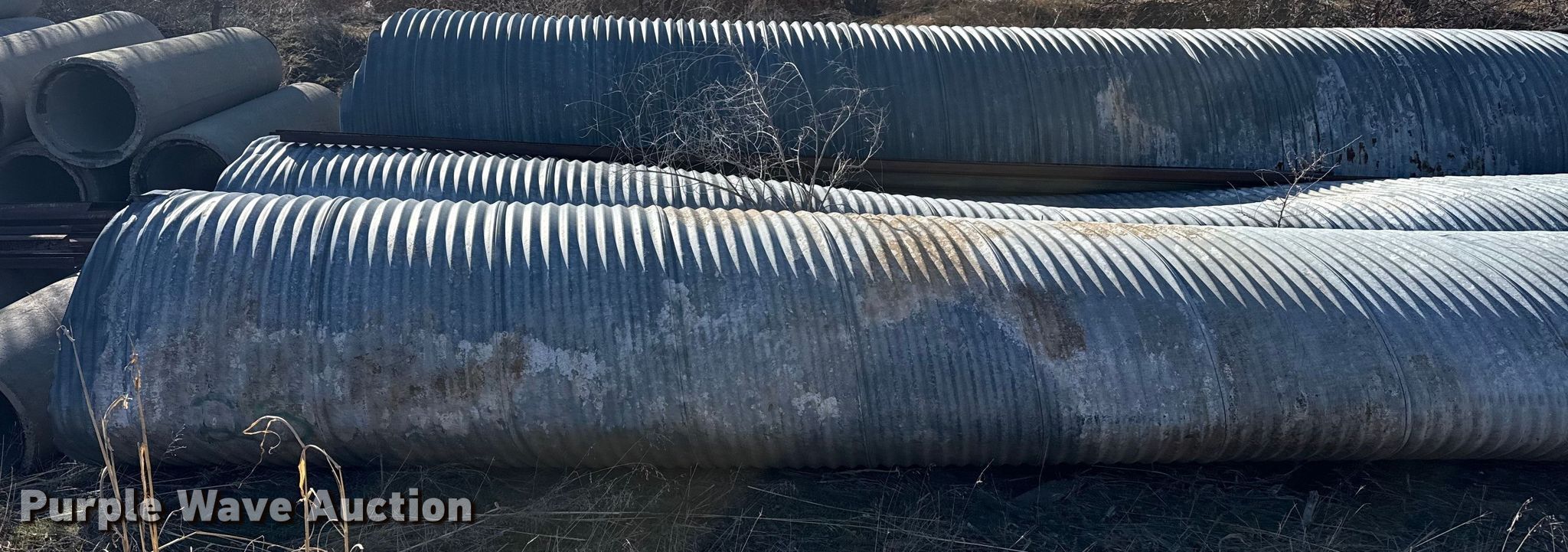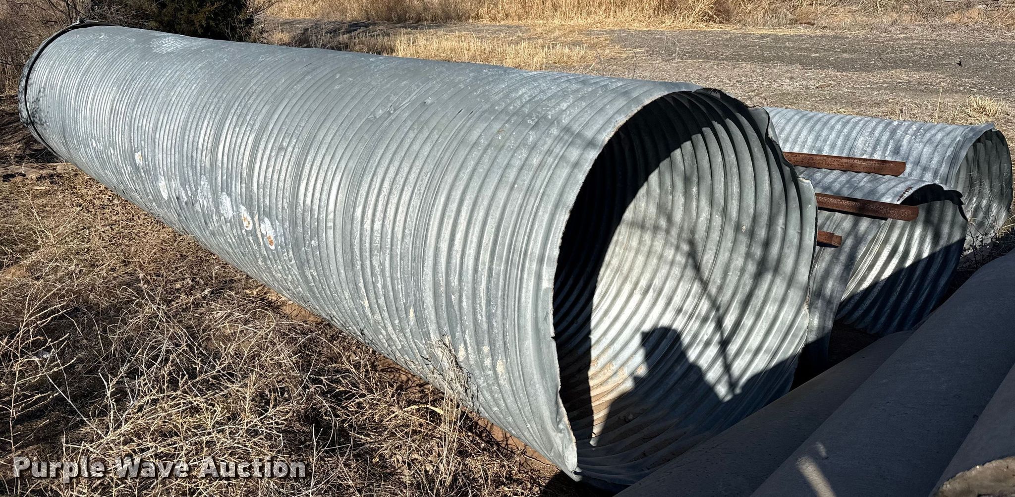 Purple Wave is selling a used Building Materials in Texas. This item is a (3) culverts with the following: (2) 48" diameter x 25' L, 60" diameter x 25' L