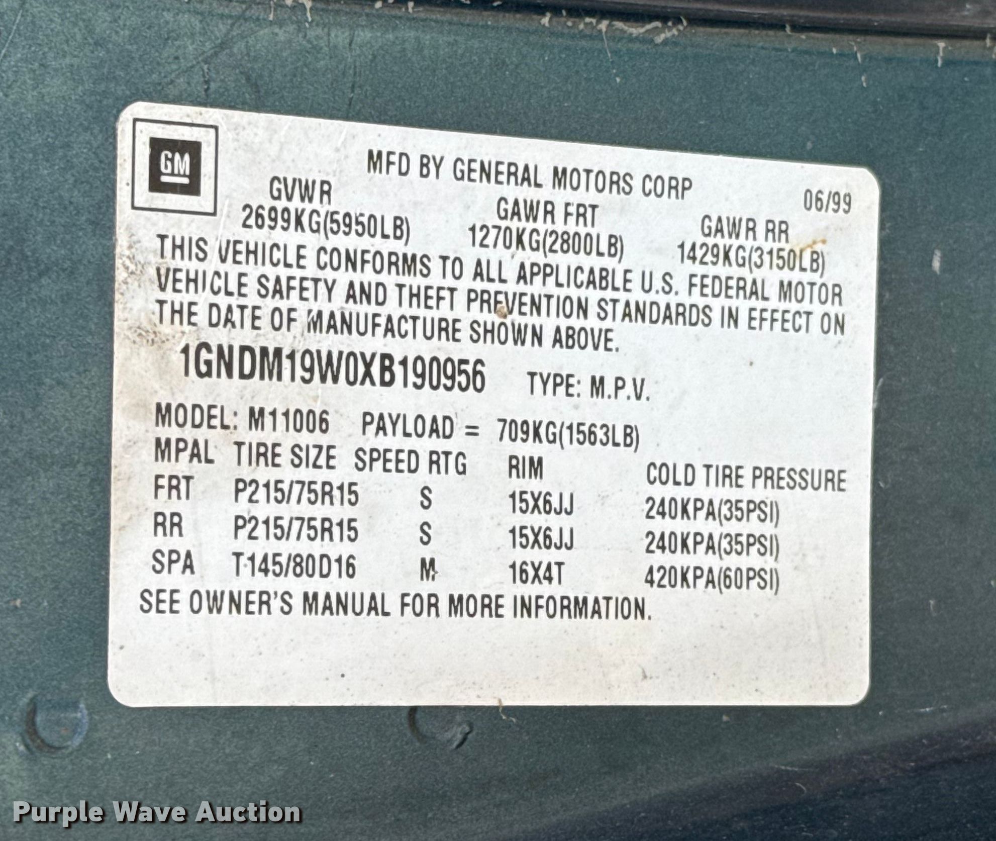 - VIN: 1GNDM19W0XB190956