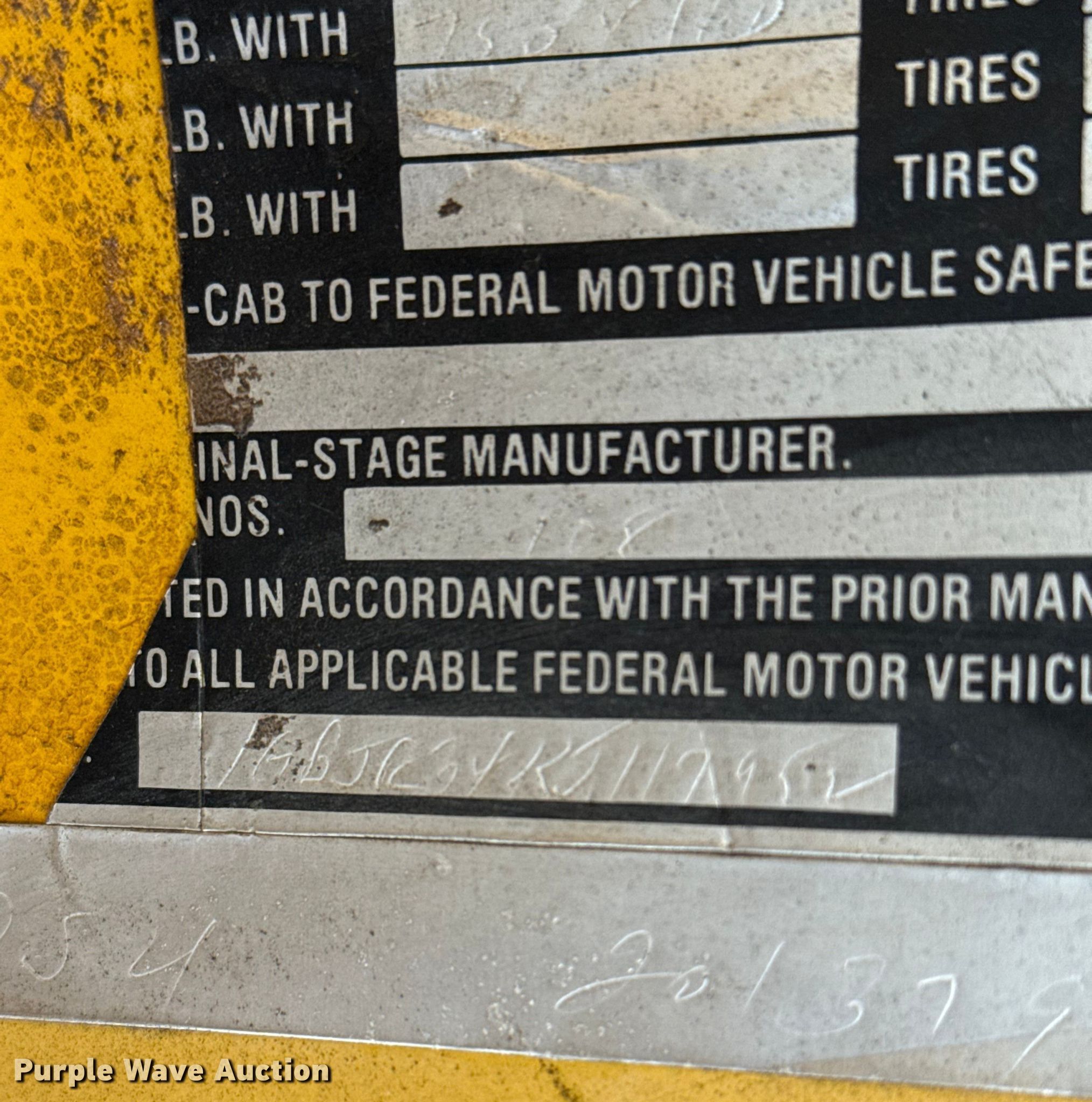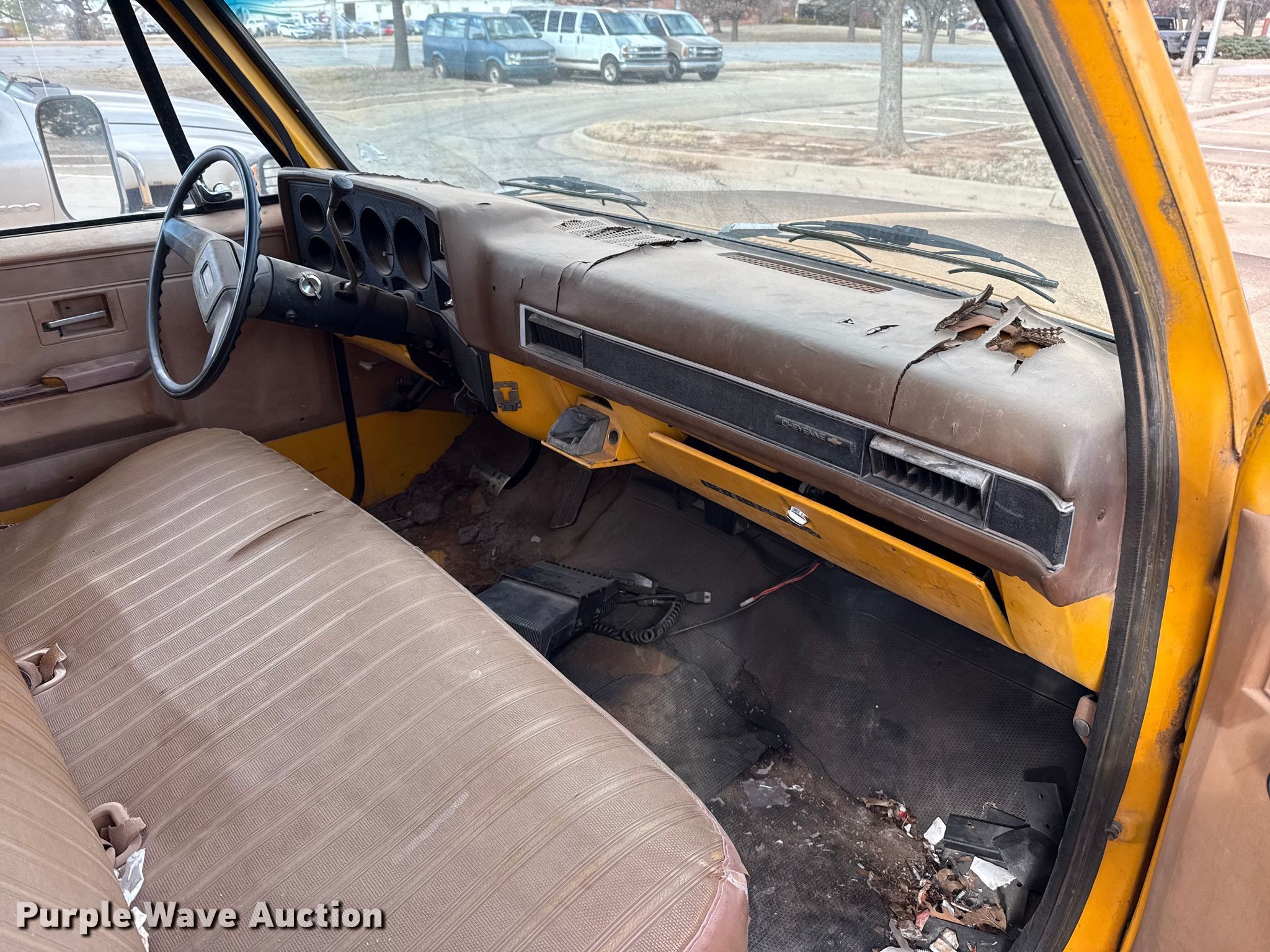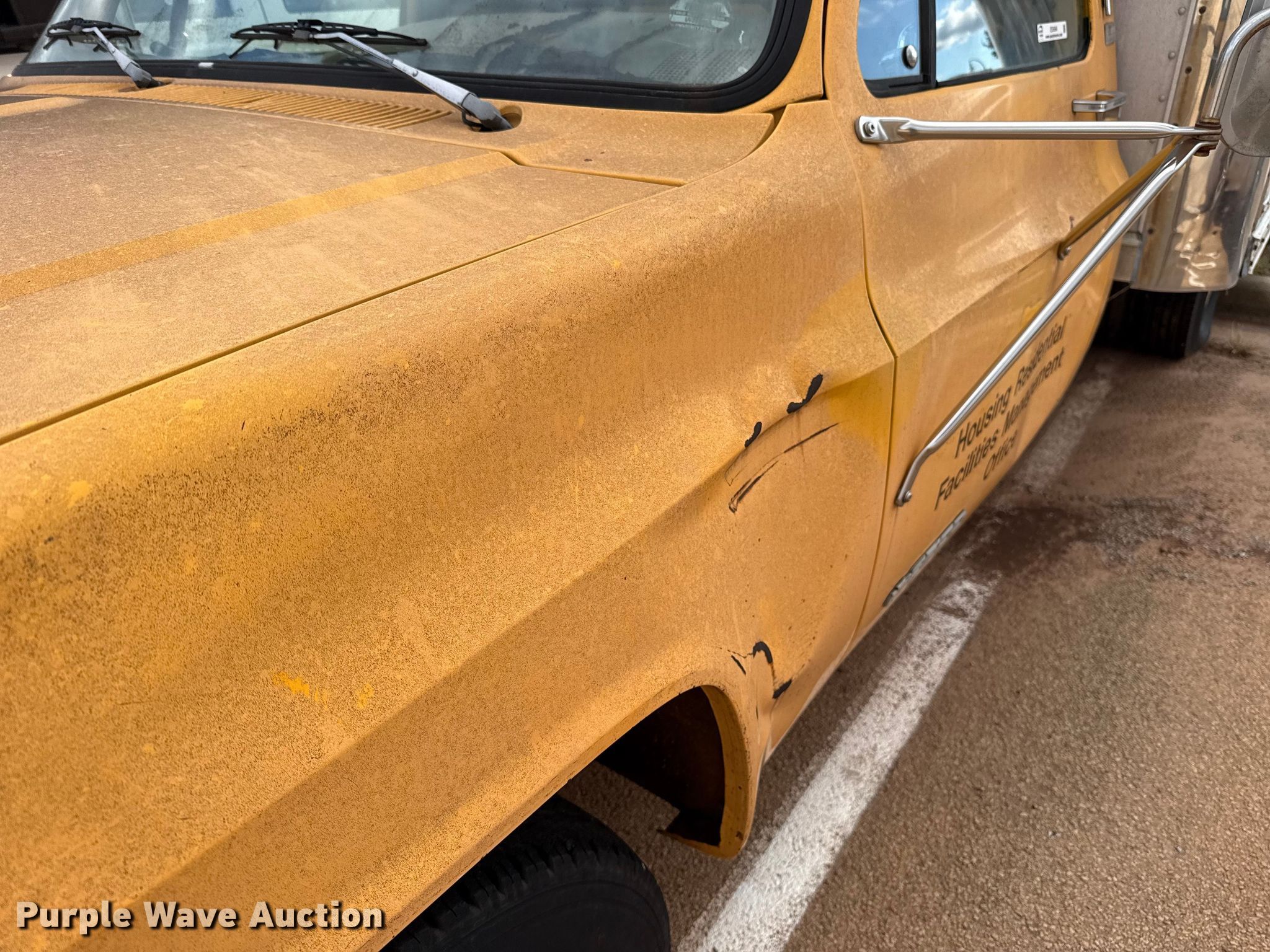 1989 Chevrolet Cheyenne 3500 box truck. Miles: 59,367 on odometer, VIN: 1GBJR34K1KJ117952, Unit #: 1135, Sale #: 2638-KP. Engine GMC, Displacement: 5.7L, Cylinders: 8, Fuel type: Gas. Transmission Automatic. Chassis Axles: Single, Suspension: Spring, Brakes: Hydraulic. Interior AC, Heat. Features Bed Box bed, Supreme Corp. K30685, Serial: VA12078096, Length: 12' 6", Width: 96", Height: 82", Floor: Wood, End gate lift, Maxon RCM-12A, Capacity: 1,250 lbs. Tires Size: LT235/85R16. Notes Jump start required during on-site data collection, Unknown operating condition of end gate lift, Air intake hose damaged, Front passenger tire leaks, Box bed rear door damaged, hole. Oklahoma title. Oklahoma State University. Stillwater, OK 74074