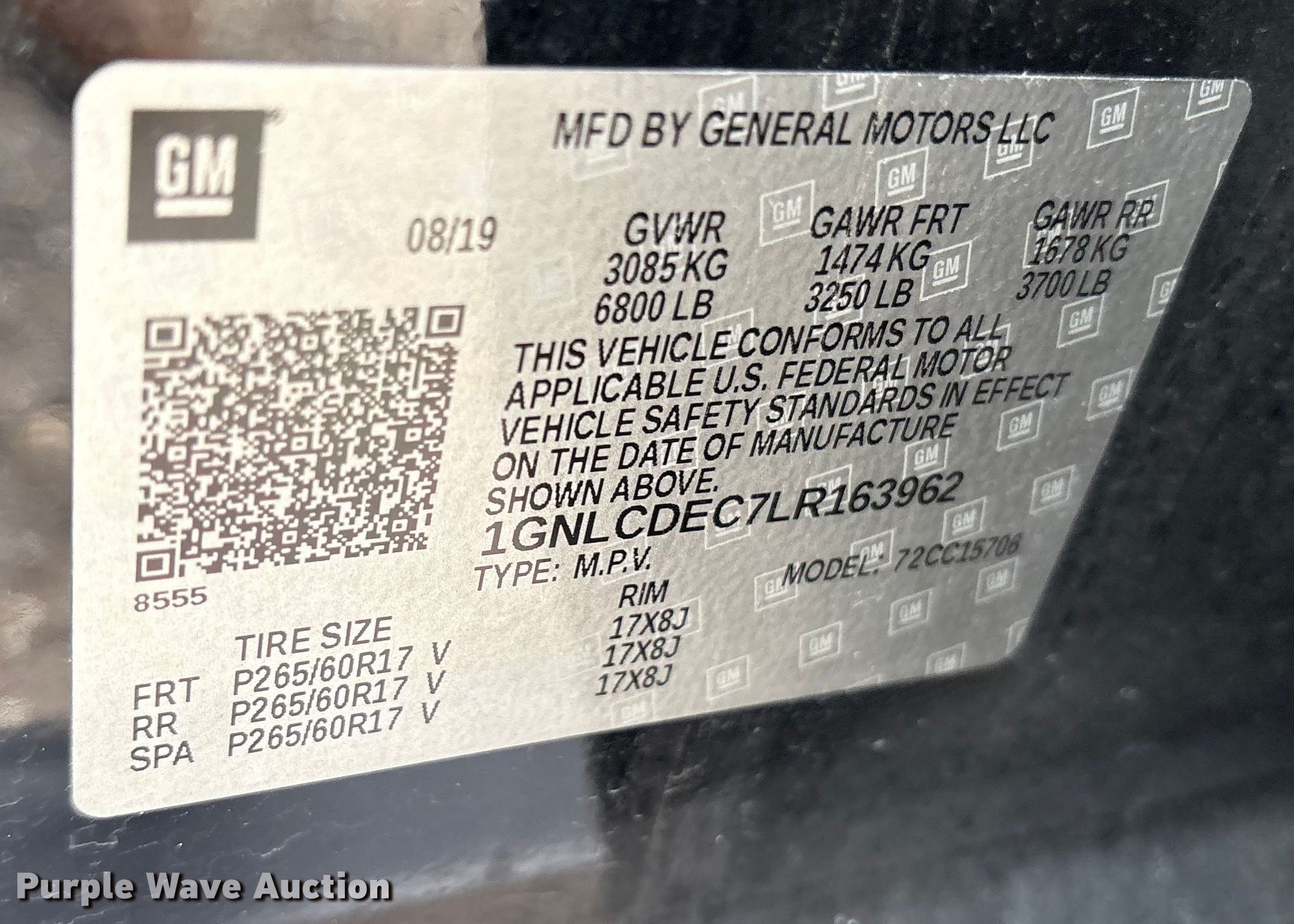 2020 Chevrolet Tahoe Police SUV. Miles: 120,657 on odometer, Hours: 18,399 on meter, VIN: 1GNLCDEC7LR163962, Unit #: 2031. Engine Displacement: 5.3L, Cylinders: 8, Fuel type: Gas. Transmission Automatic. Interior AC, Heat, Seat: Power driver, Power passenger, Power windows, Power locks, Cruise control, Backup camera. Tires Size: 265/60R17. Notes Center console missing. Texas title. Title distribution may be delayed up to 14 days from verification of funds. City Of Sherman. Sherman, TX 75090