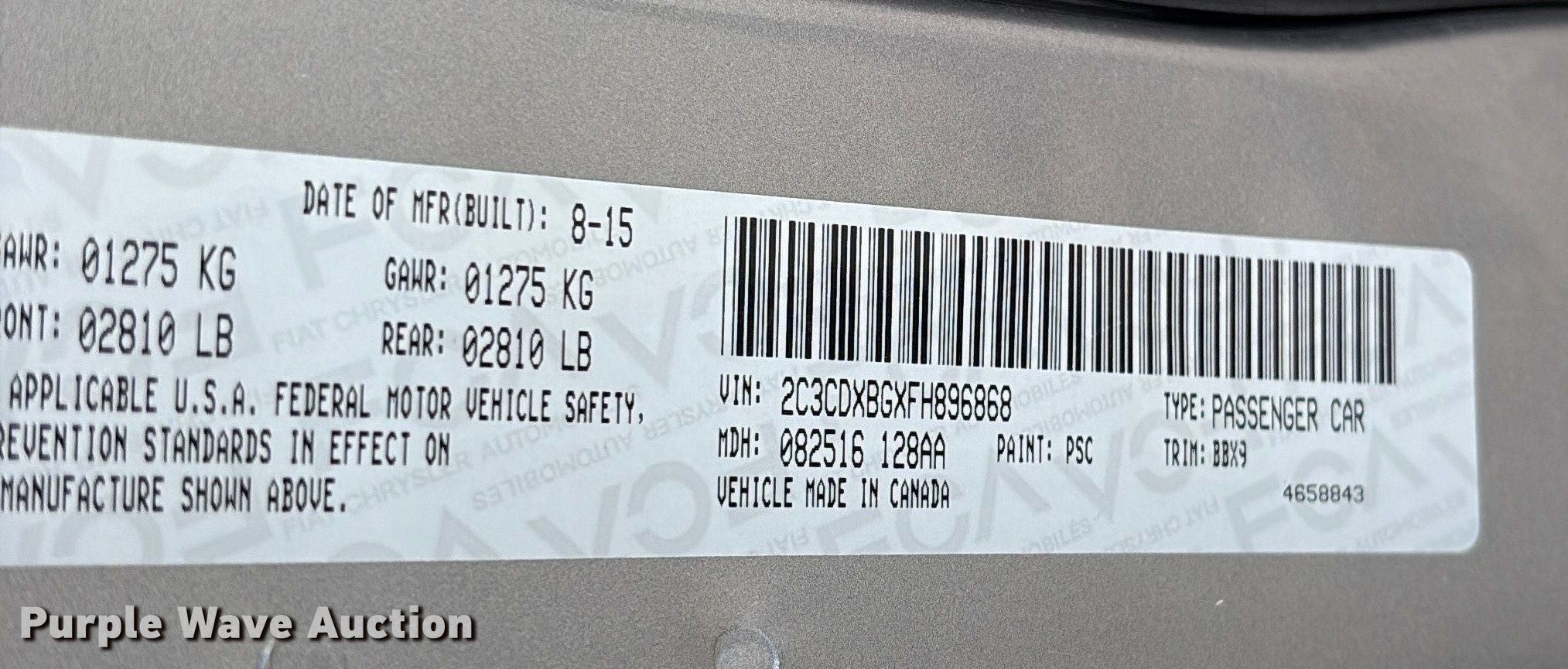 - VIN: 2C3CDXBGXFH896868