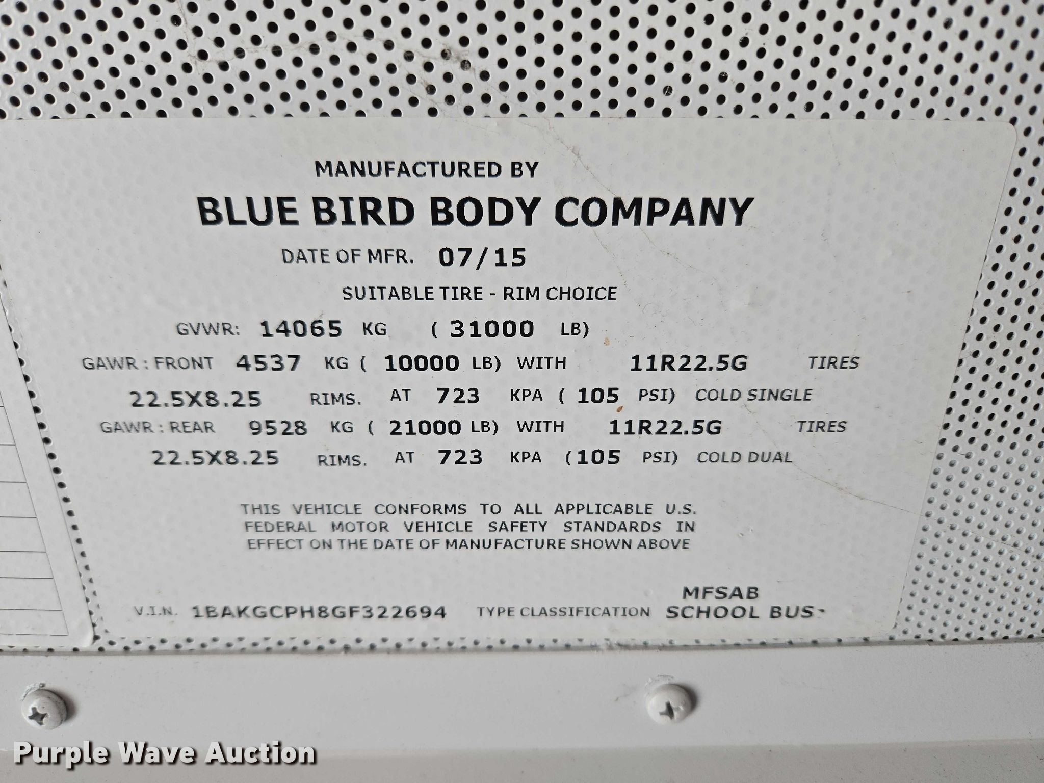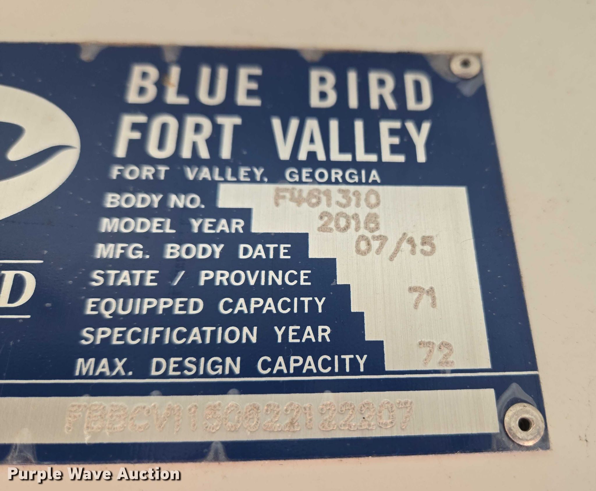 2016 Blue Bird Bb Conventional school bus | Tuesday March 17 Government Auction