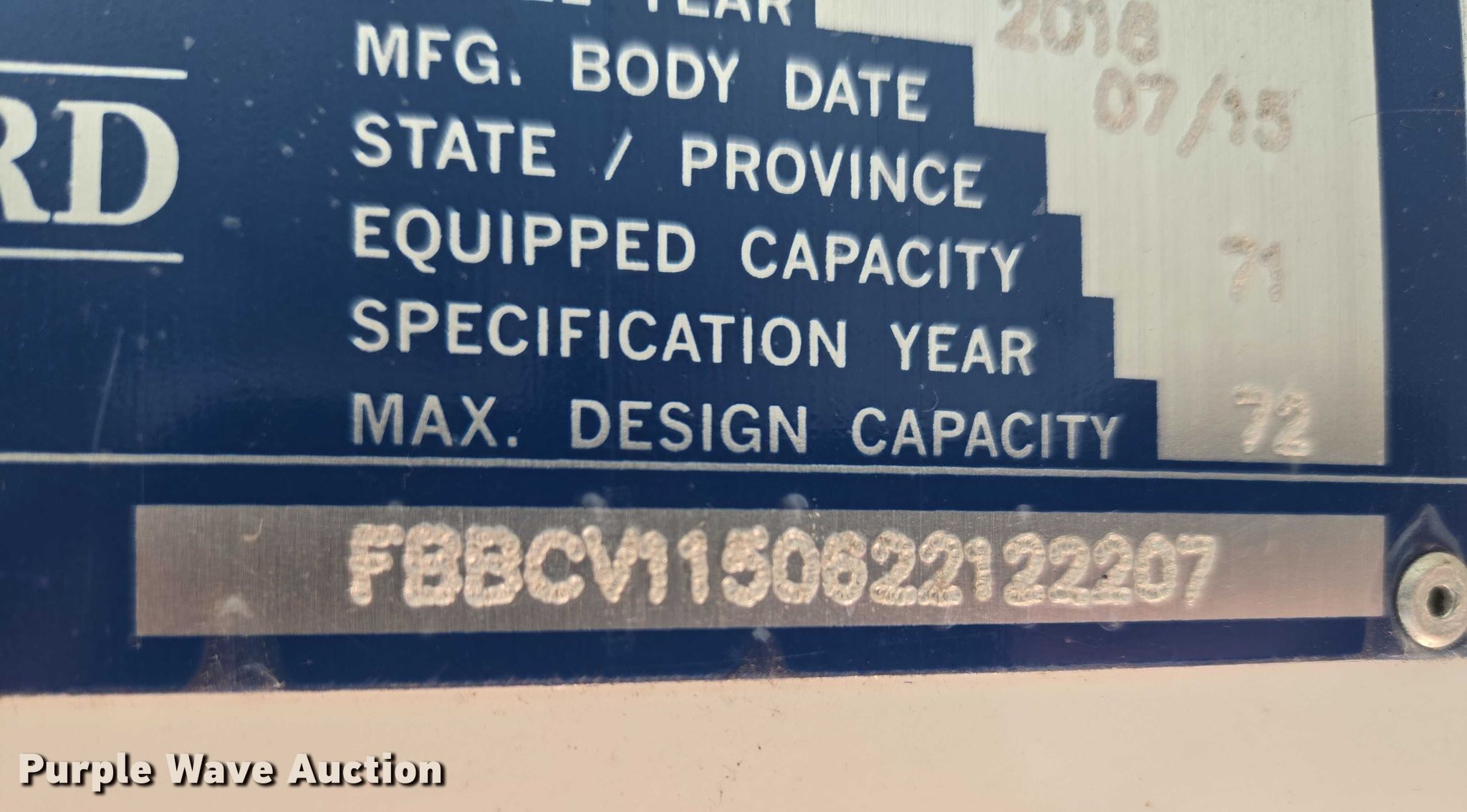 2016 Blue Bird Bb Conventional school bus. Miles: 101,668 on odometer, VIN: 1BAKGCPH8GF322694. Engine Cummins ISB, Displacement: 6.7L, Cylinders: 6, Fuel type: Diesel, CNG. Transmission Automatic. Chassis Axles: Single, Suspension: Spring, Brakes: Hydraulic, GVWR: 31,000 lbs. Interior AC, Heat, Heated mirrors, Cruise control, Electric passenger sliding door, Passengers: 71. Tires Size: 11R22.5. Notes Jump start required during on-site data collection. Oklahoma title. Title distribution may be delayed up to 14 days from verification of funds. Amber, OK 73004