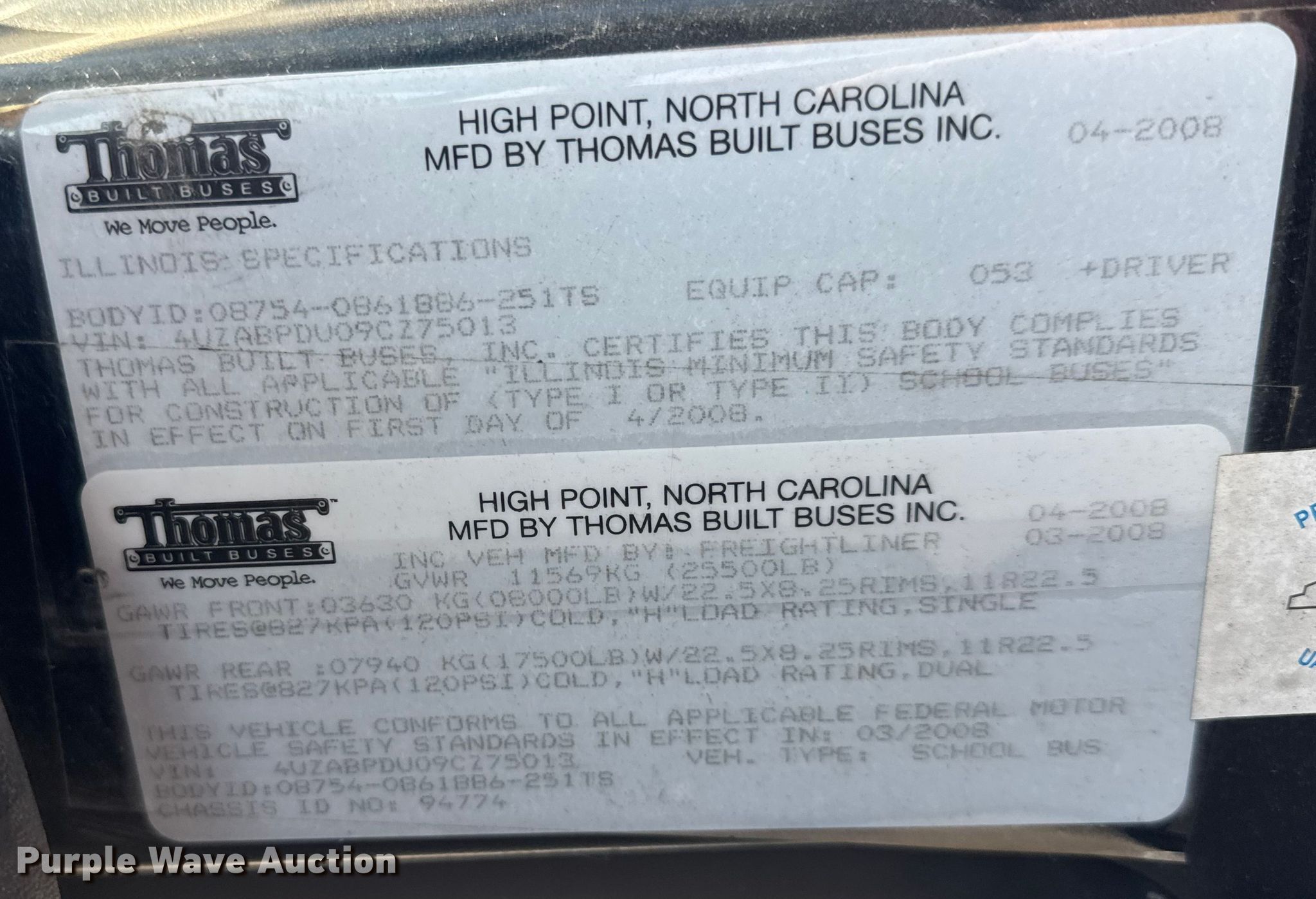 Purple Wave is selling a used Bus in Kansas. This item is a 2009 Thomas Saf-T-Liner C2 school bus with the following: Miles: 165,609 on odometer, Hours: 5,996 on meter, VIN: 4UZABPDU09CZ75013, Unit #: 7