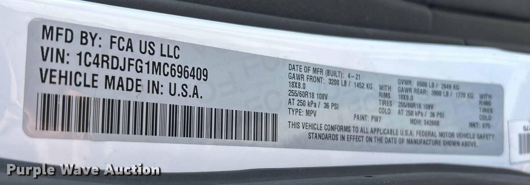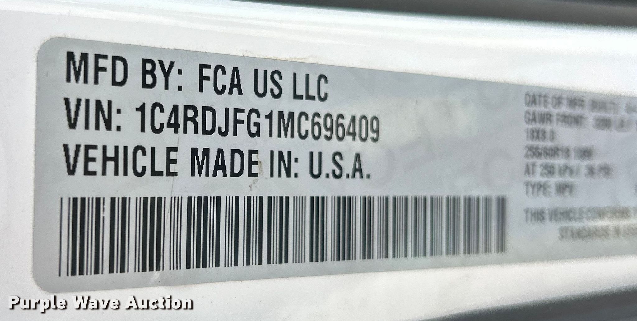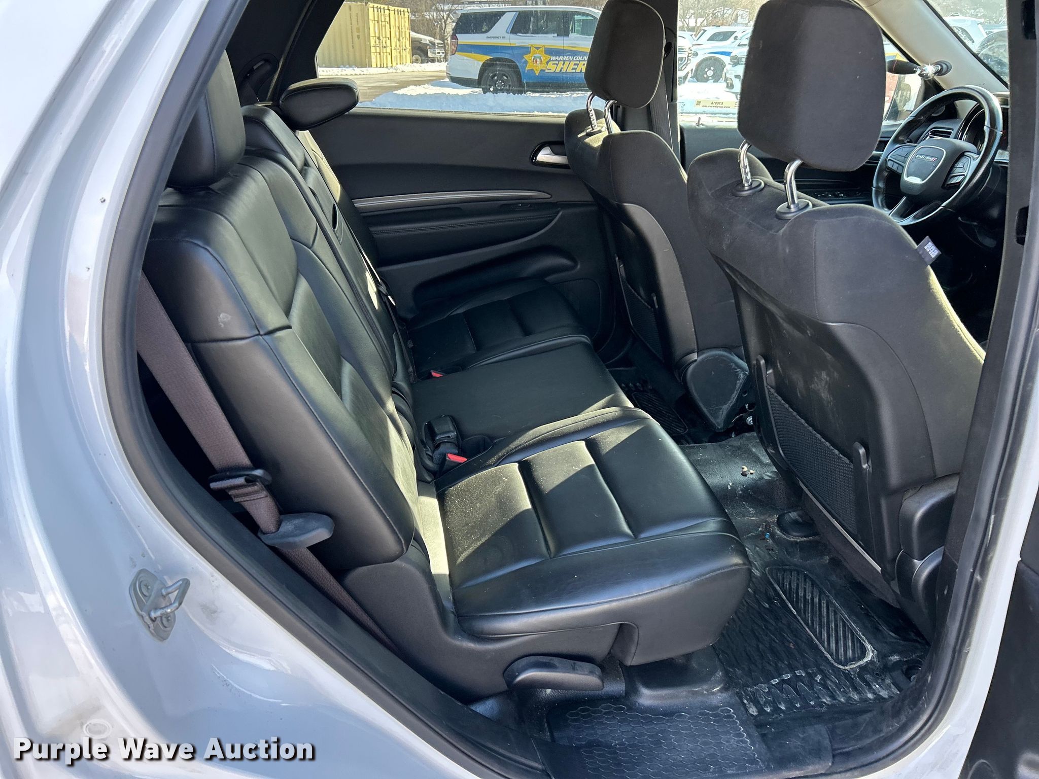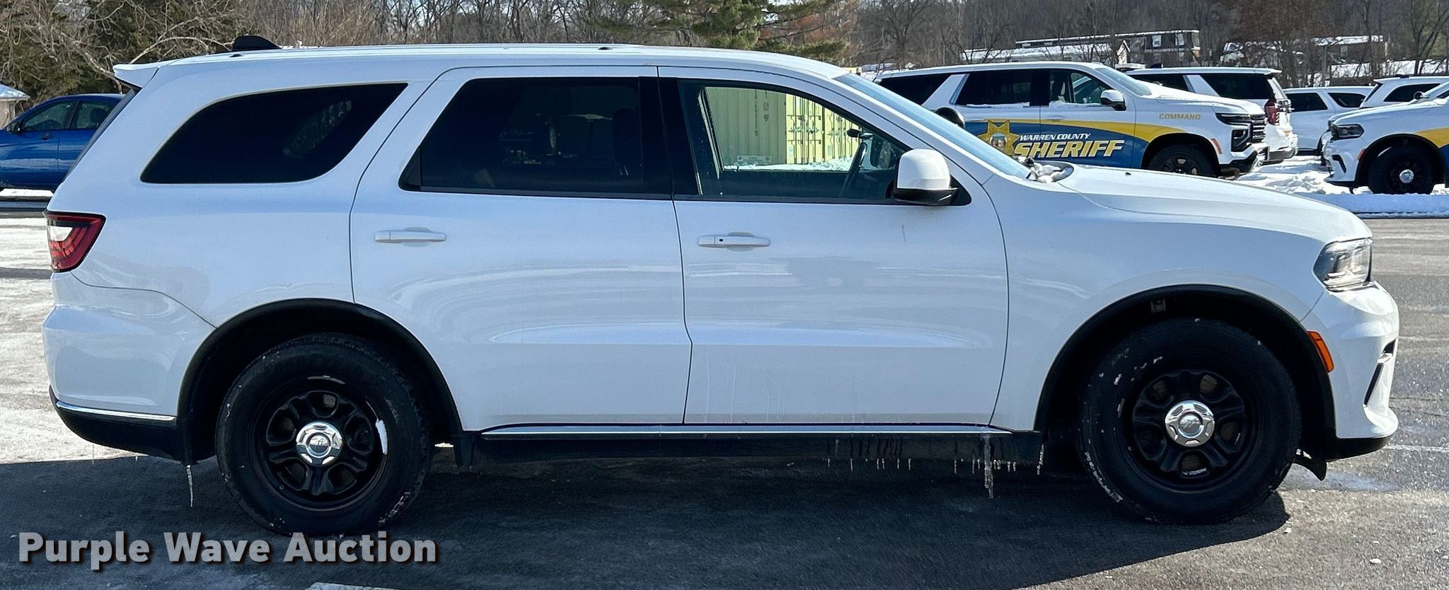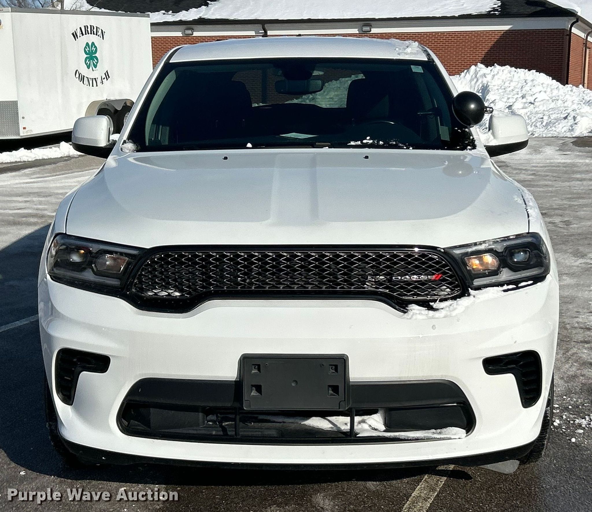 2021 Dodge Durango SSV SUV. Miles: 105,859 on odometer, Hours: 6,201 on meter, VIN: 1C4RDJFG1MC696409, Unit #: 6409. Engine Displacement: 3.6L, Cylinders: 6, Fuel type: Gas. Transmission Automatic, All wheel drive. Interior AC, Heat, Seat: Power driver, Heated mirrors, Power windows, Power locks, Cruise control, Backup camera. Tires Size: 255/60R18. Notes Dash warning indicator: TPMS, Airbag, Service stop/start system, Jump start required during on-site data collection, Battery needs replaced, Center console missing. Missouri title. Seller is a government entity who will be assigning and distributing the title. Please contact the seller for distribution questions. Warren County MO Sheriff's Dept. Warrenton, MO 63383