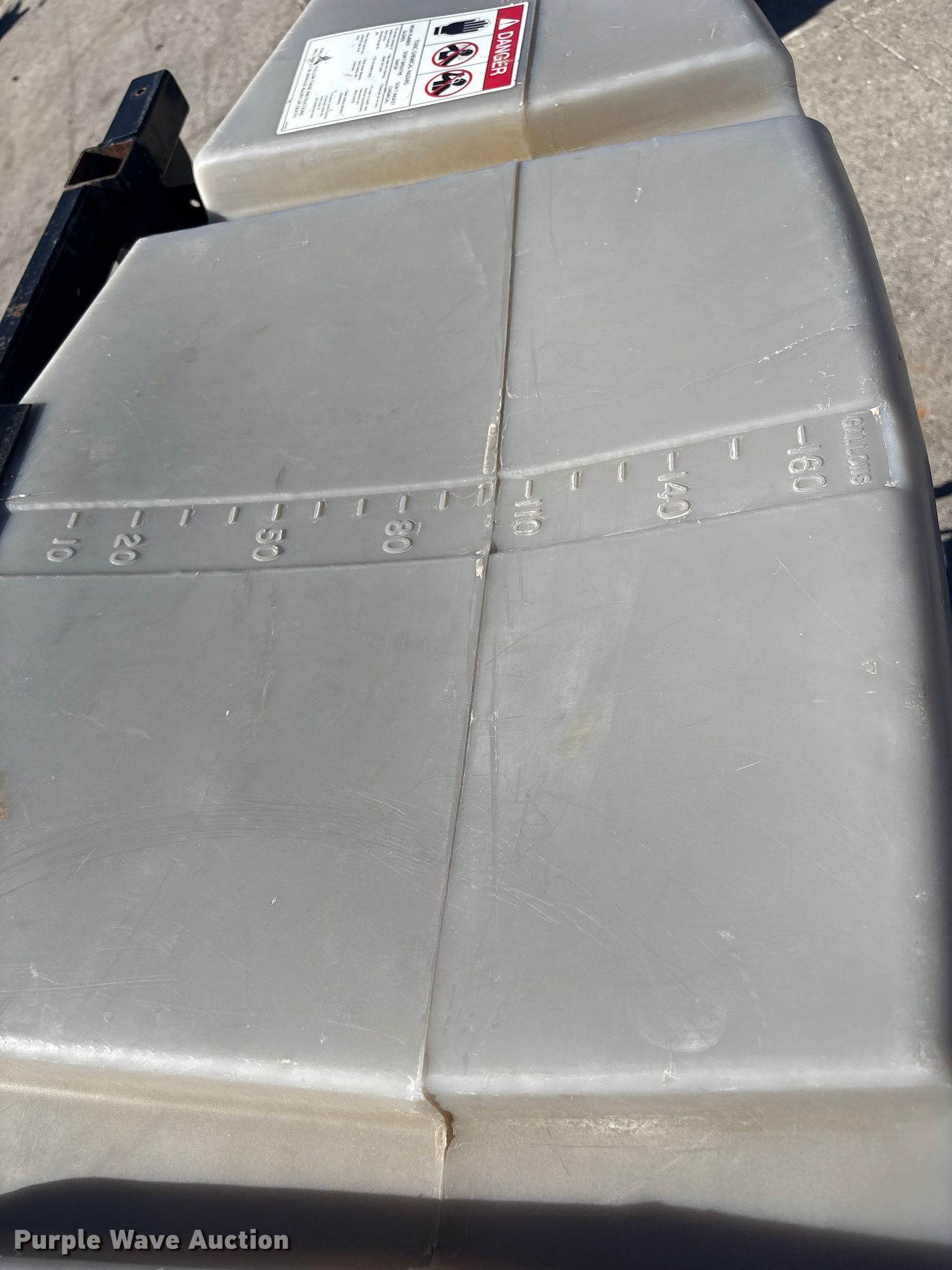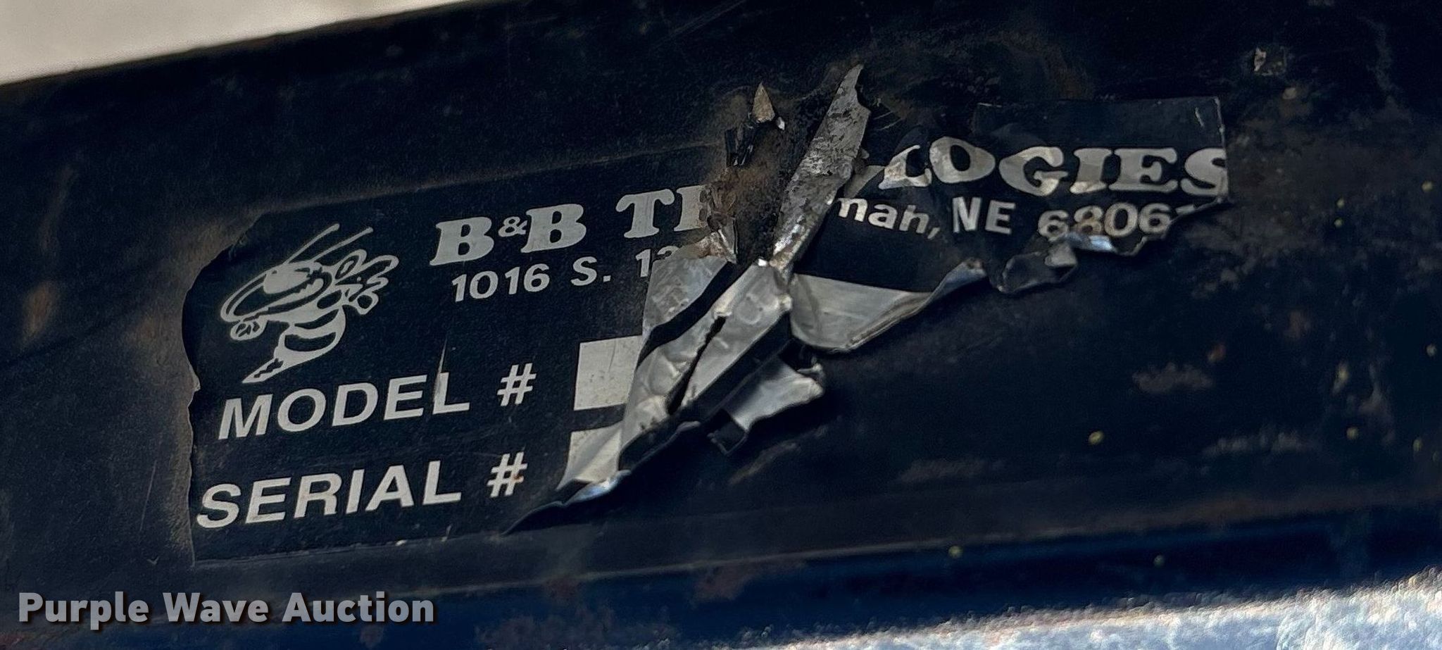B&B Technologies turf sprayer. Dimensions. Overall Length: 4' 8", Width: 60", Height: 37". Features Boom width: Approx. 15', Tank Capacity: 160 gallons. Notes Unknown operating condition. Broken Arrow, OK 74012