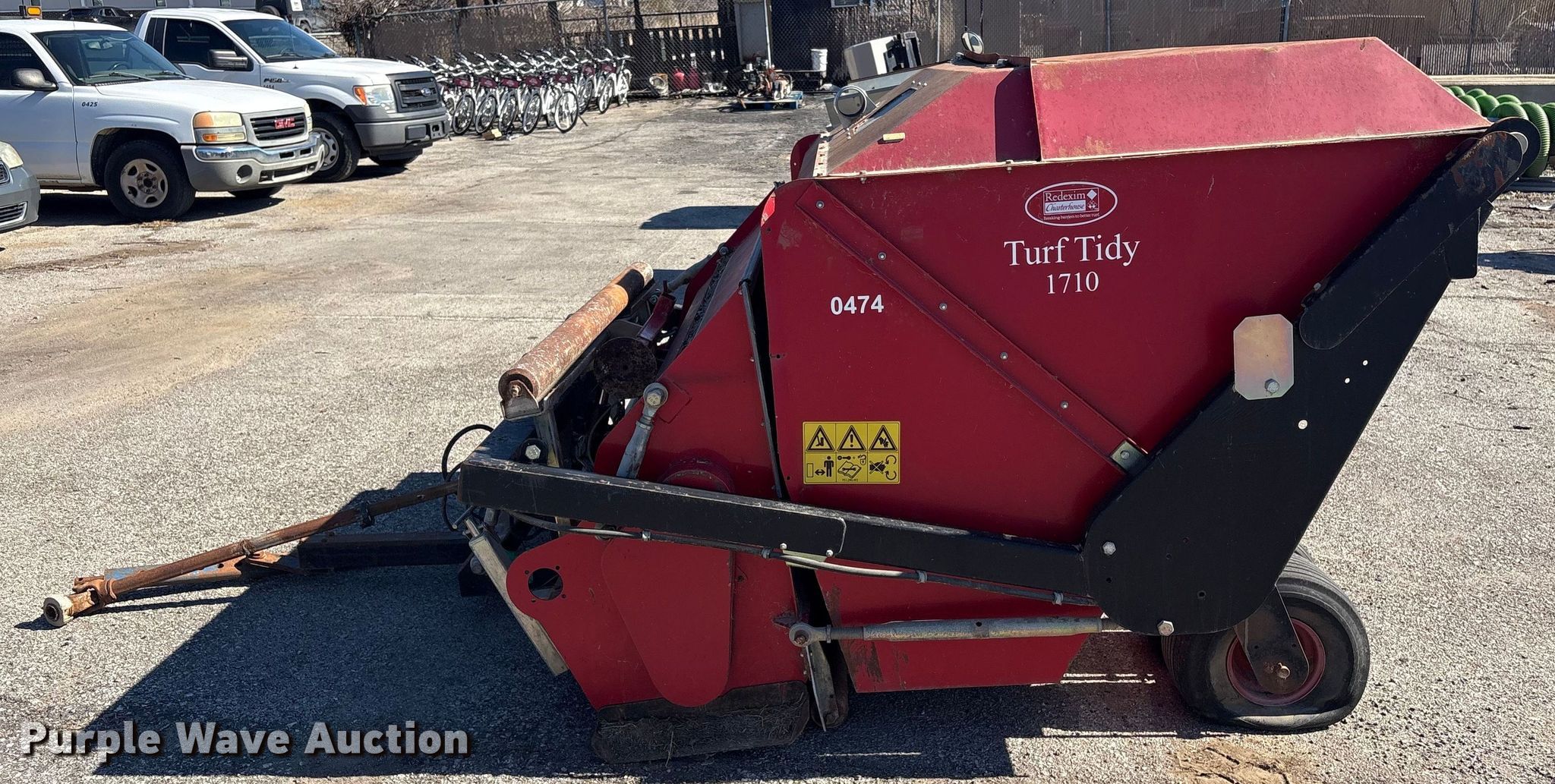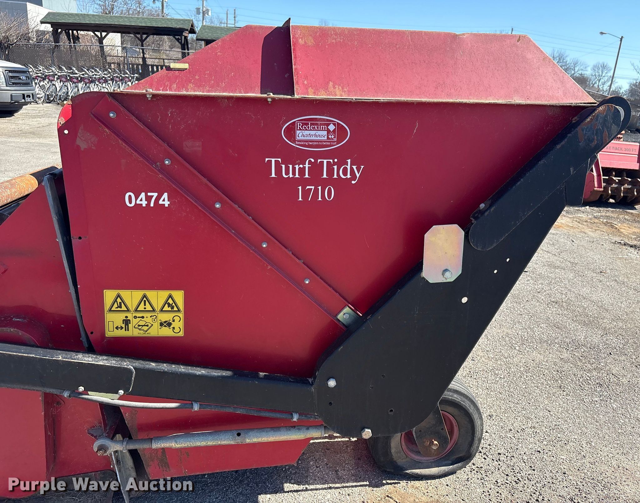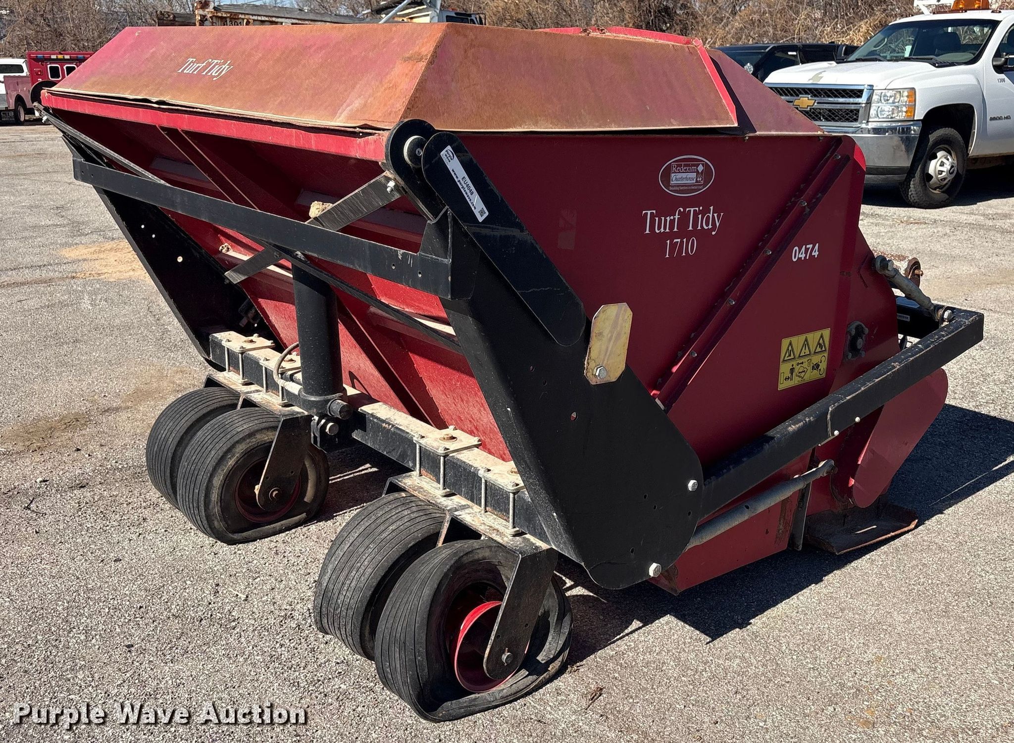 Redexim Charterhouse Turf Tidy 1710 turf sweeper. Features. Broom Width: 68", PTO: 540. Tires Front: 18x9.50-8. Notes Flat tires, Unknown operating condition. Broken Arrow, OK 74012