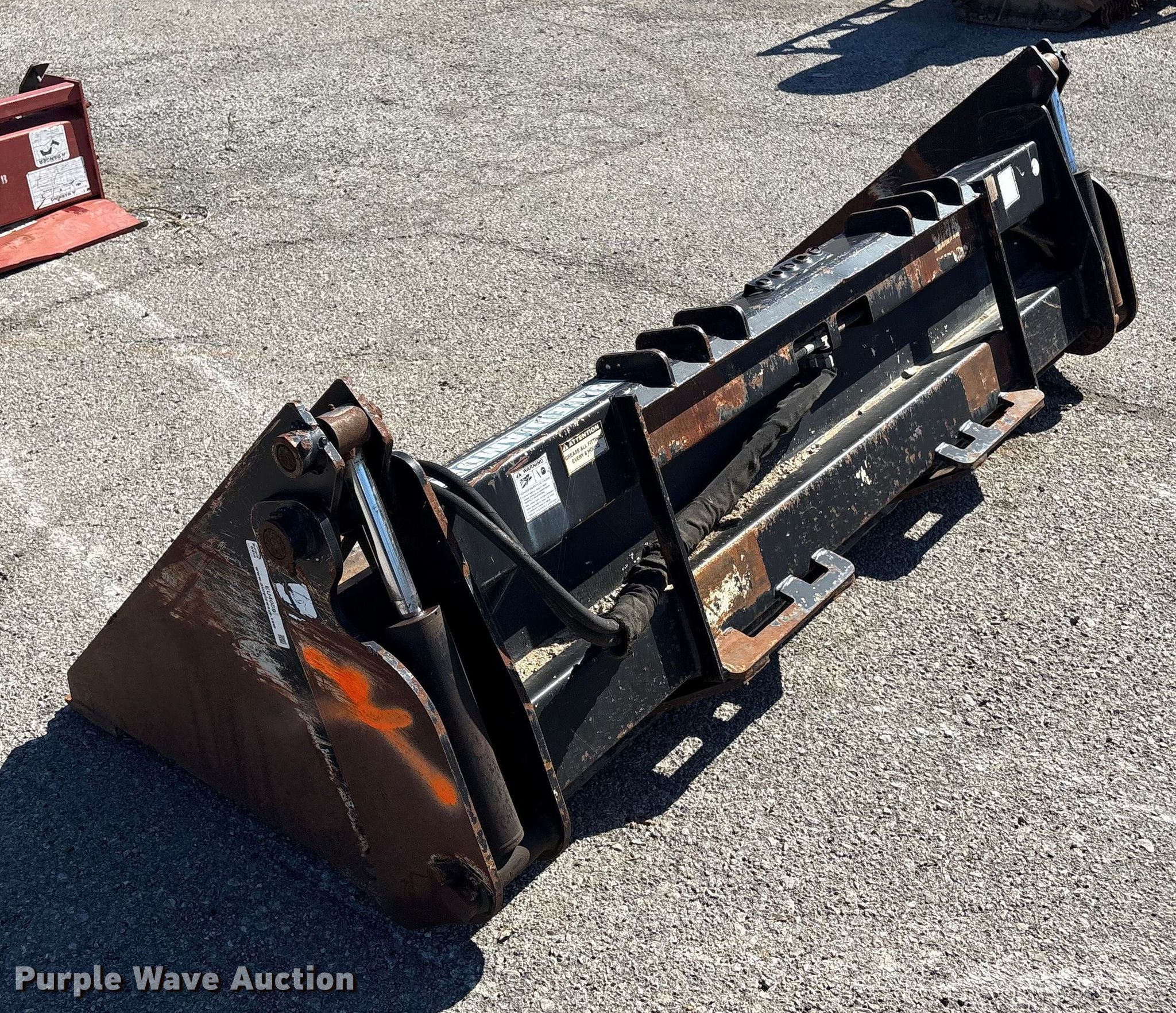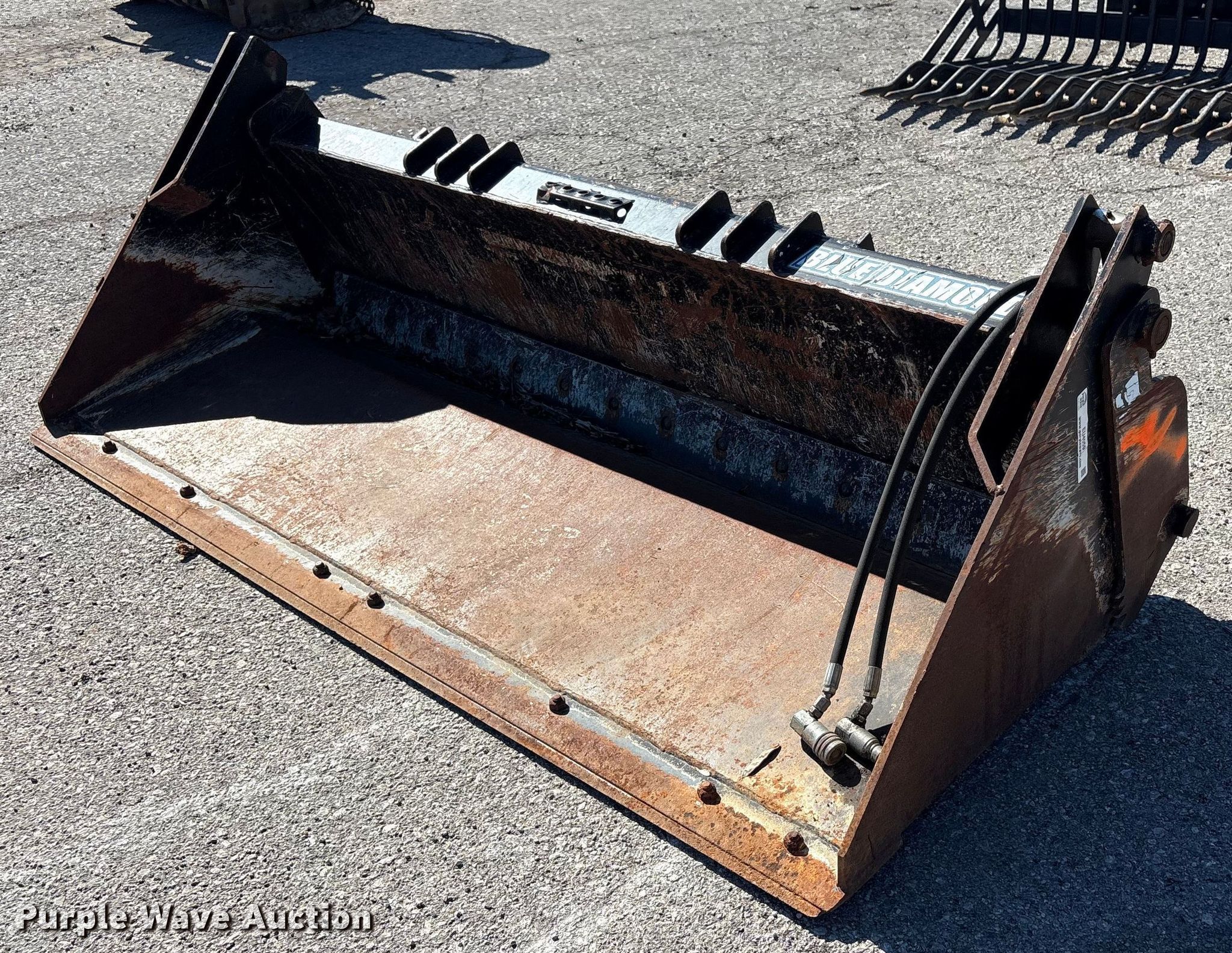 Purple Wave is selling a used Skid Steer Attach. in Oklahoma. This item is a Blue Diamond 108795 four-in-one skid steer bucket with the following: Serial: 35347, Width: 85", Four-in-one, Cutting edge: Bolt-on
